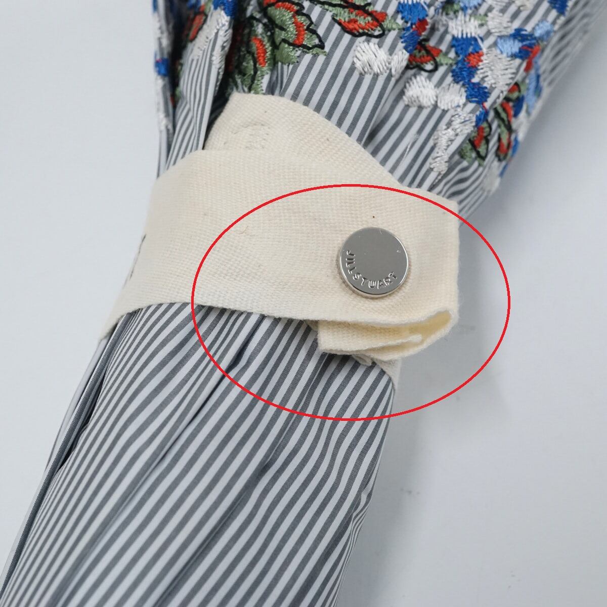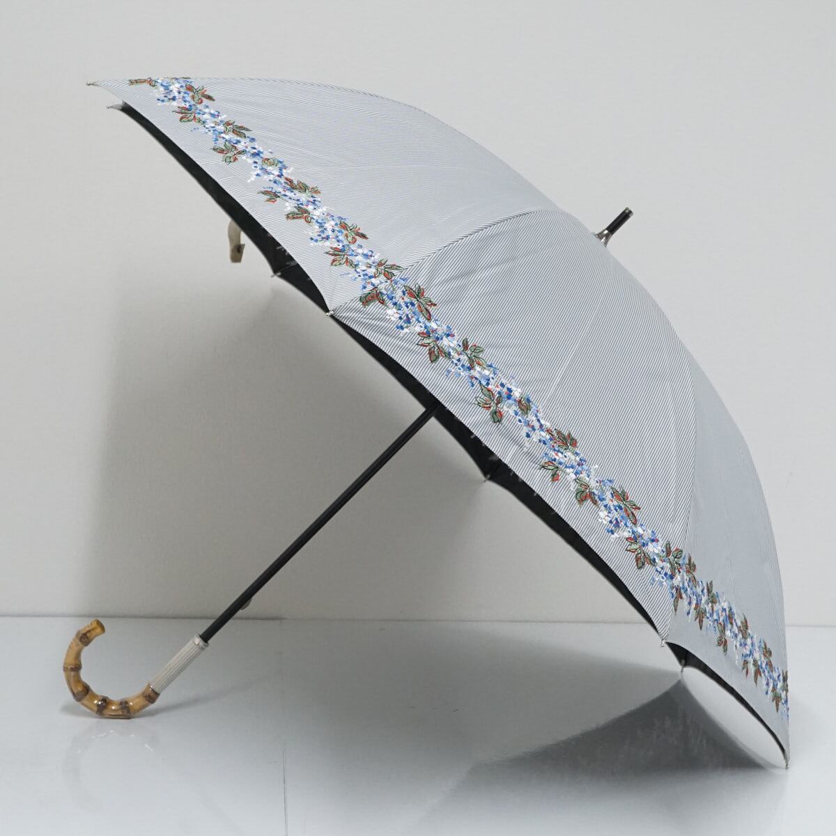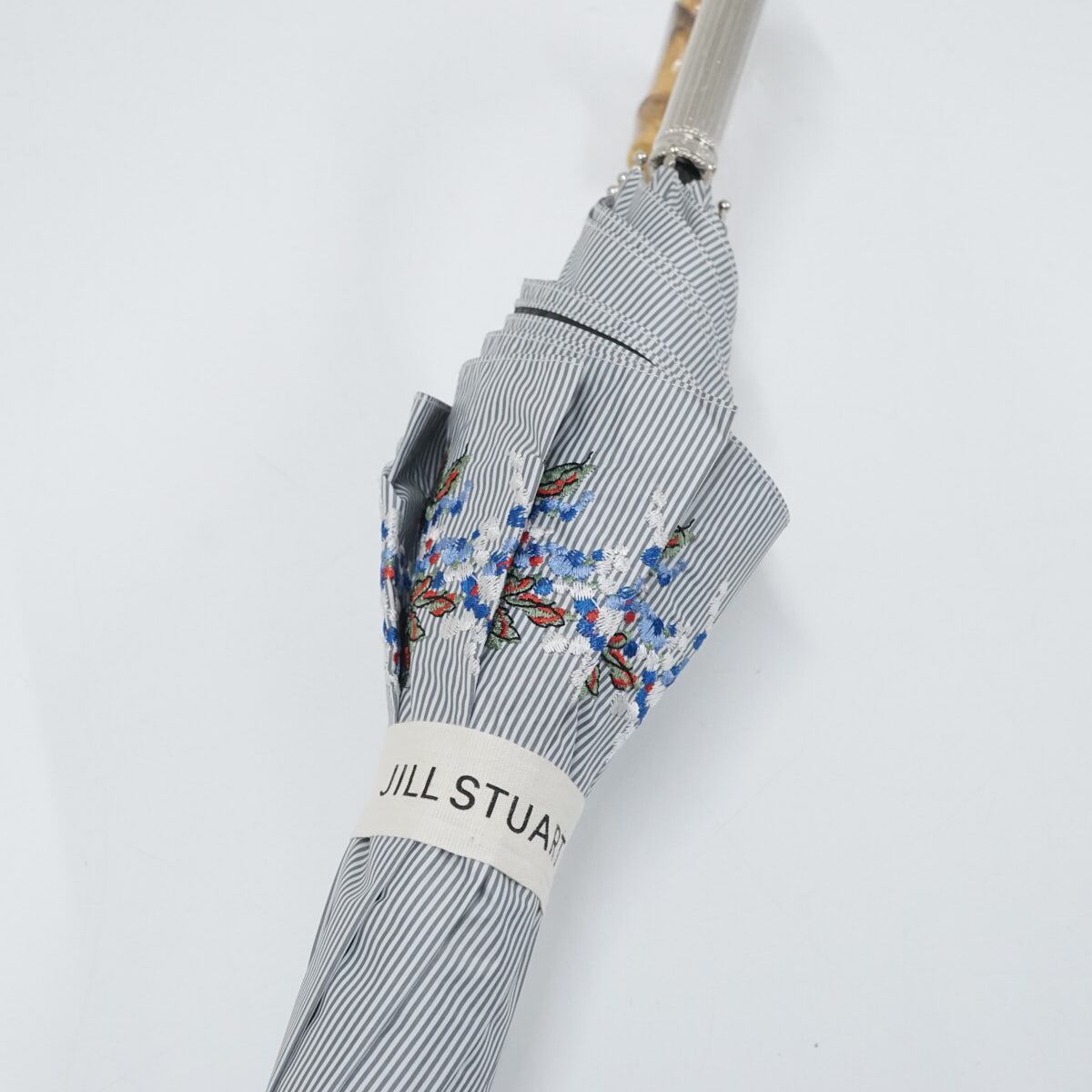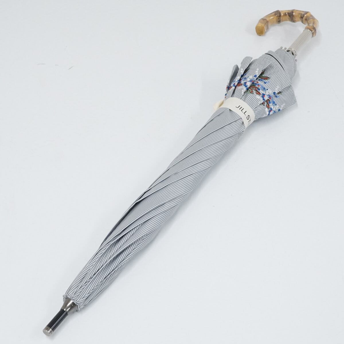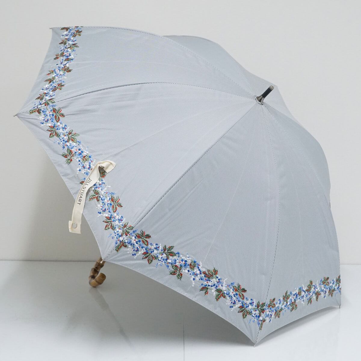 日傘 JILLSTUART ジルスチュアート 晴雨兼用日傘 USED美品 ストライプ リーフ ボタニカル ライトブルー 遮光 UV 寒竹 55cm S2074