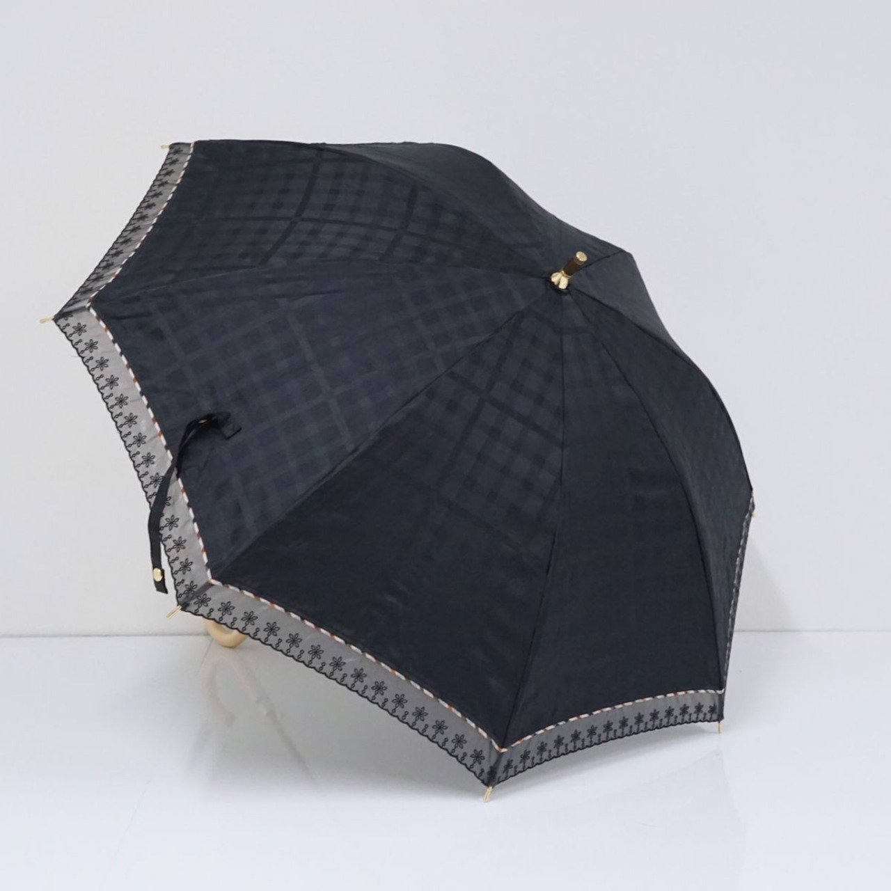 淡い輝きが魅力のブラックのジャガードチェックが上品な晴雨兼用日傘です。