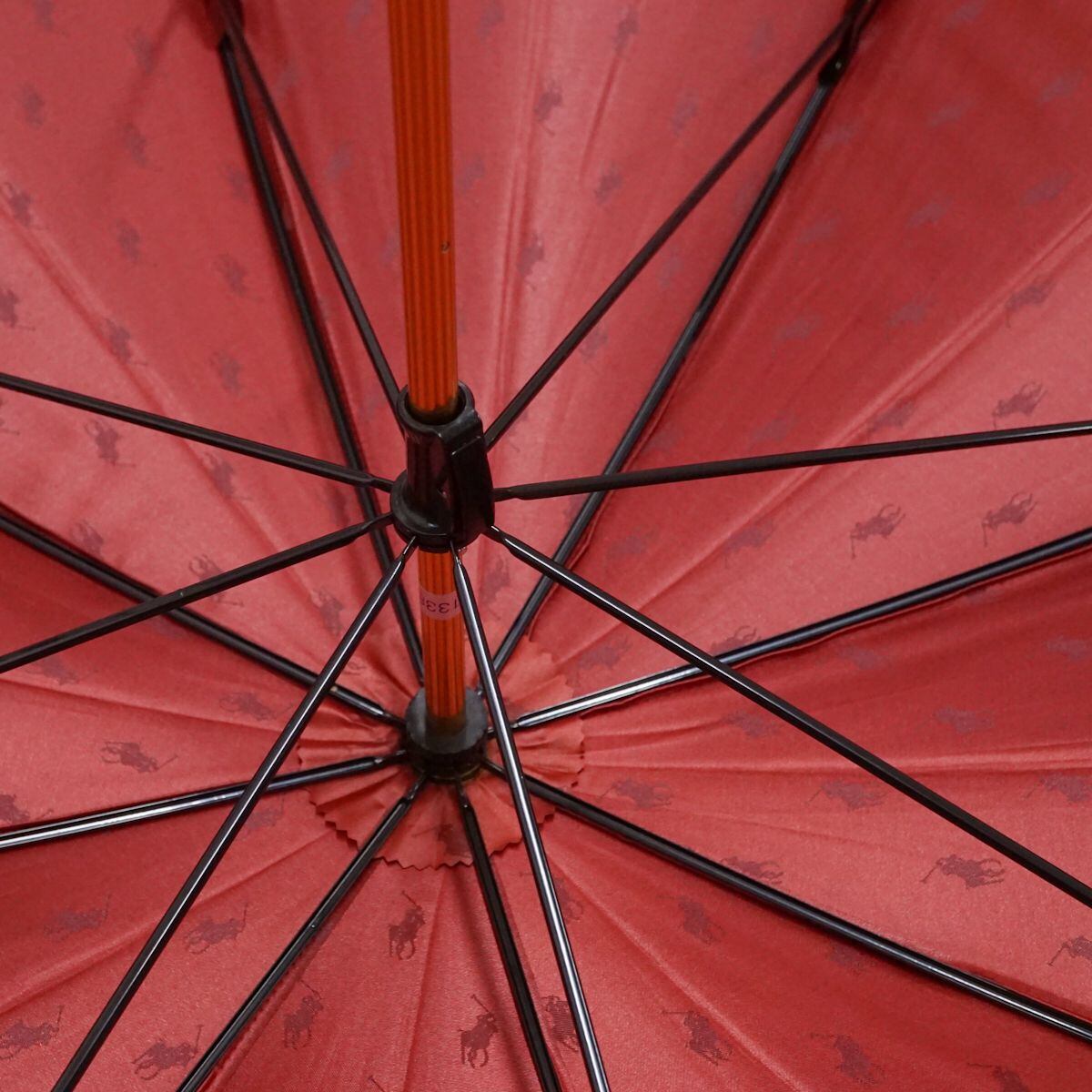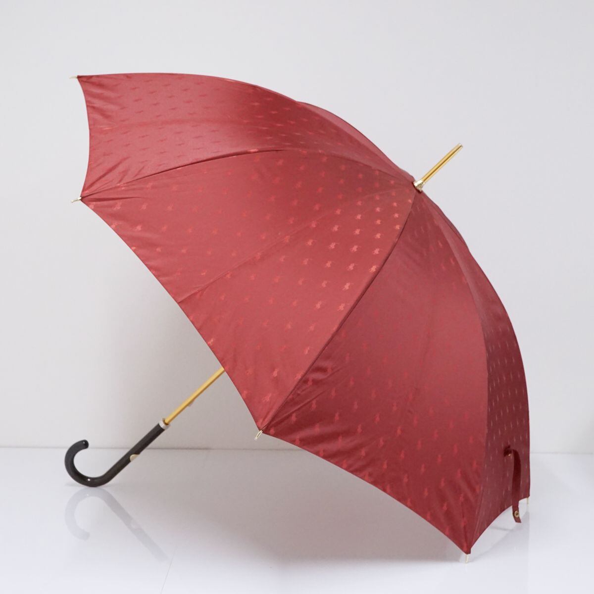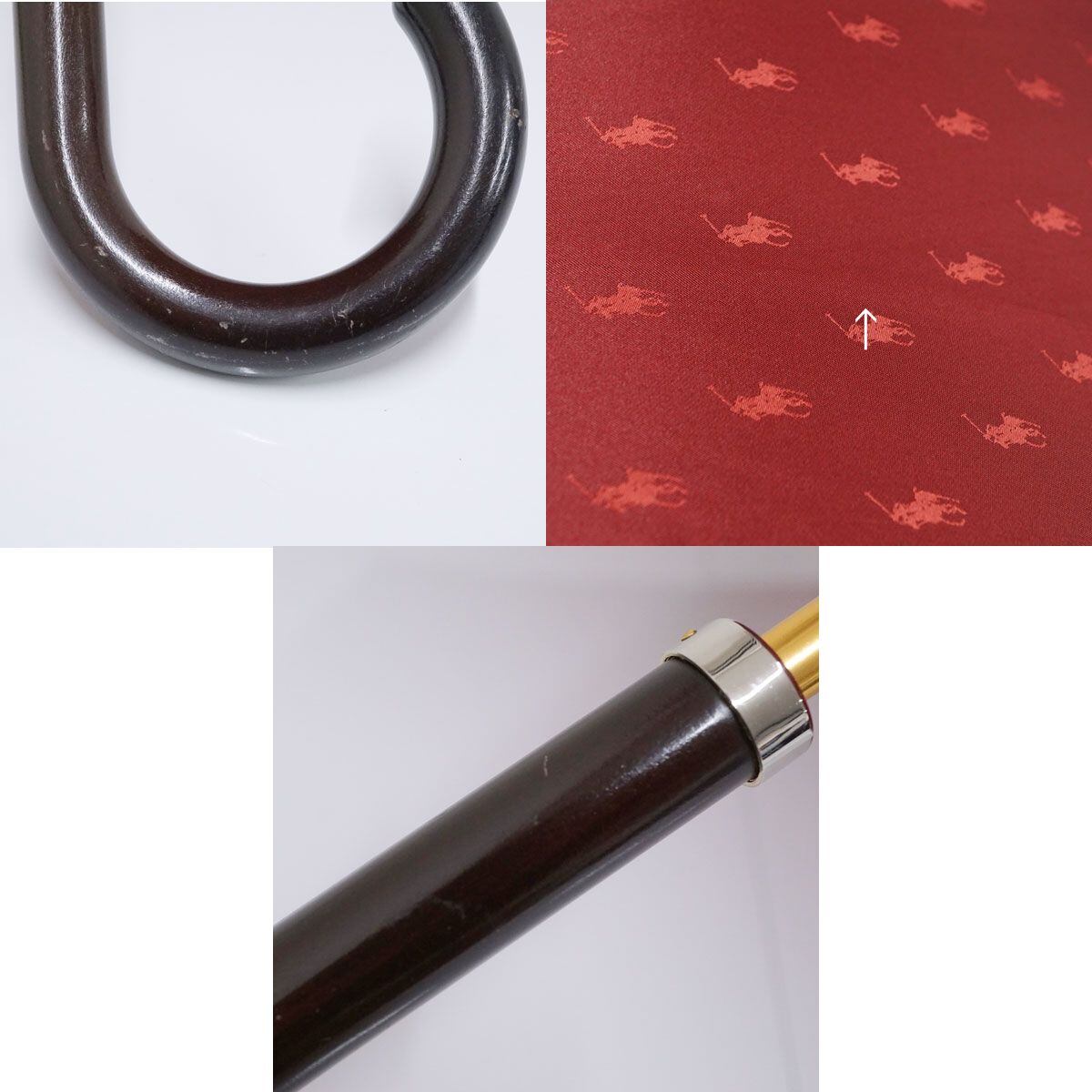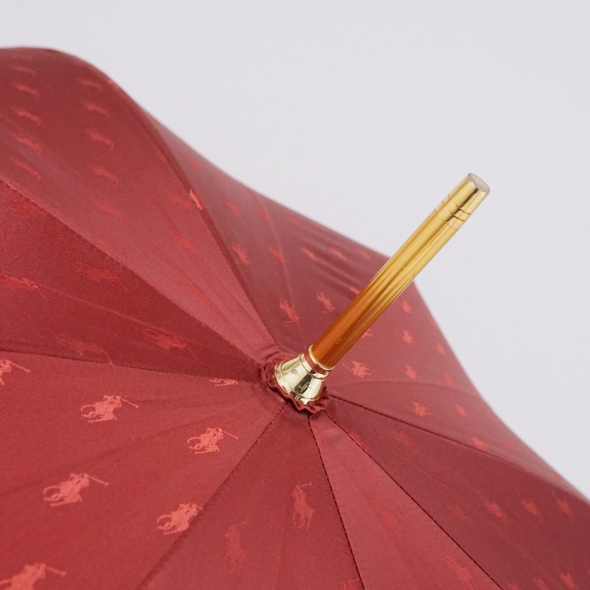 傘 Polo Ralph Lauren ポロラルフローレン USED美品 ポロドット ジャガード ワインレッド 赤 高級 60cm T A0485