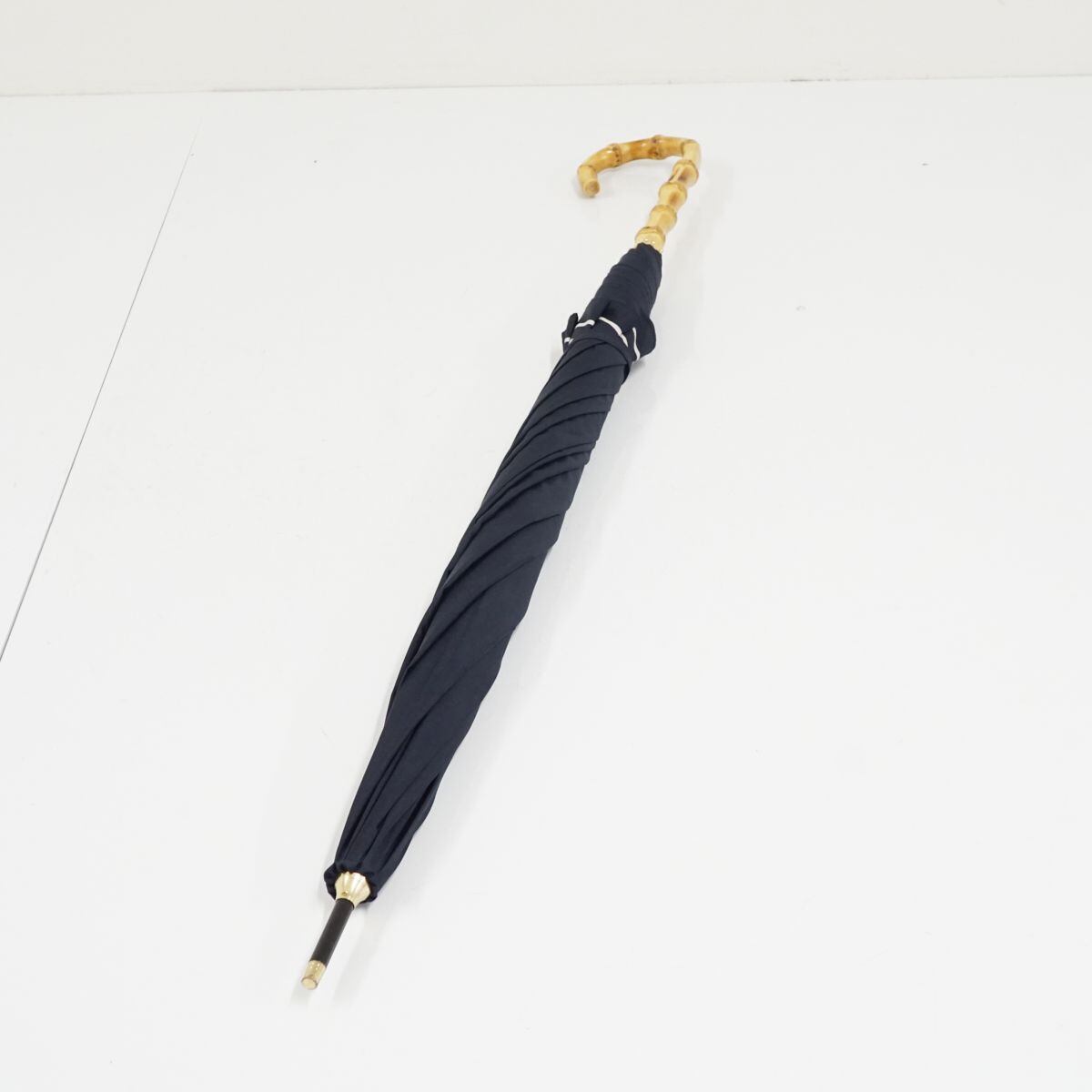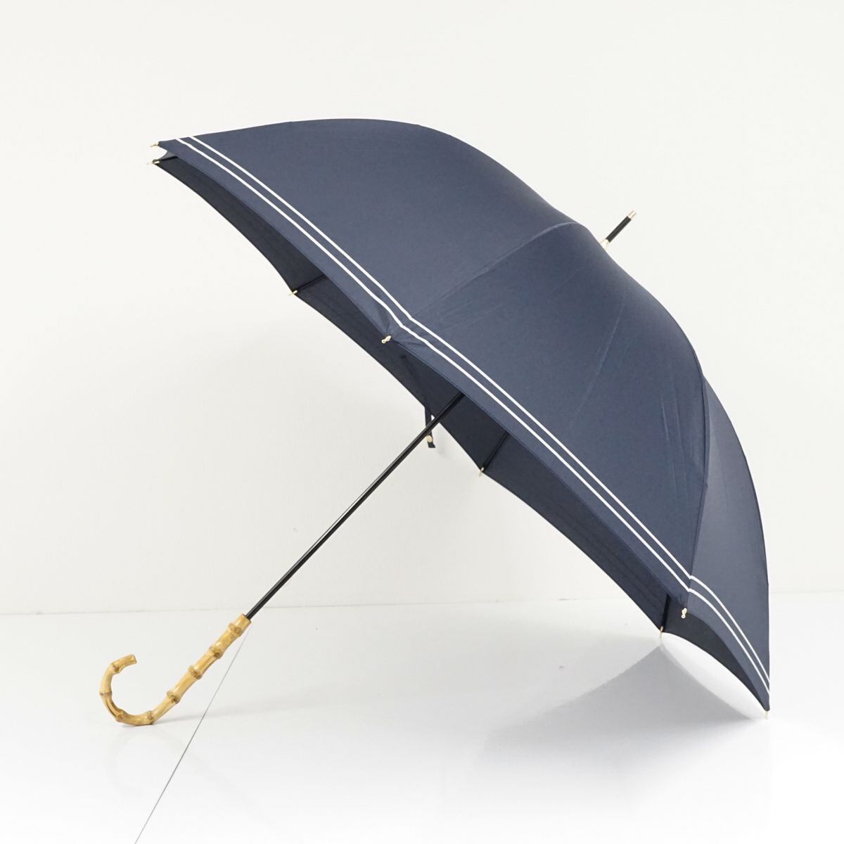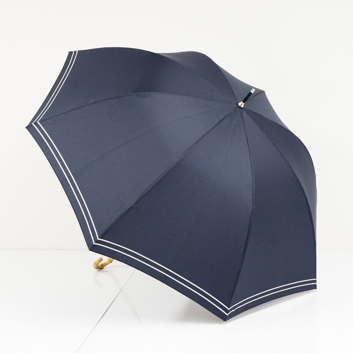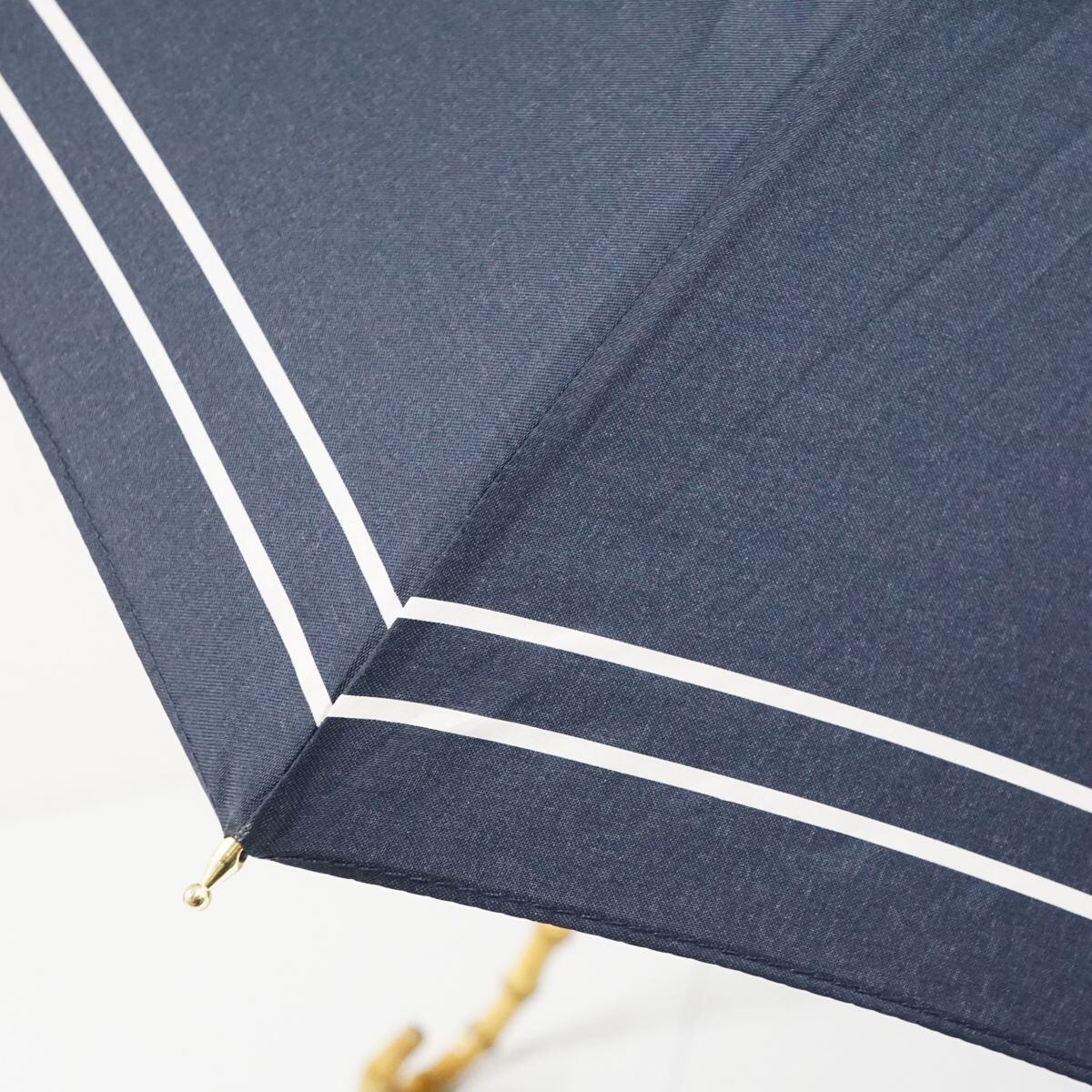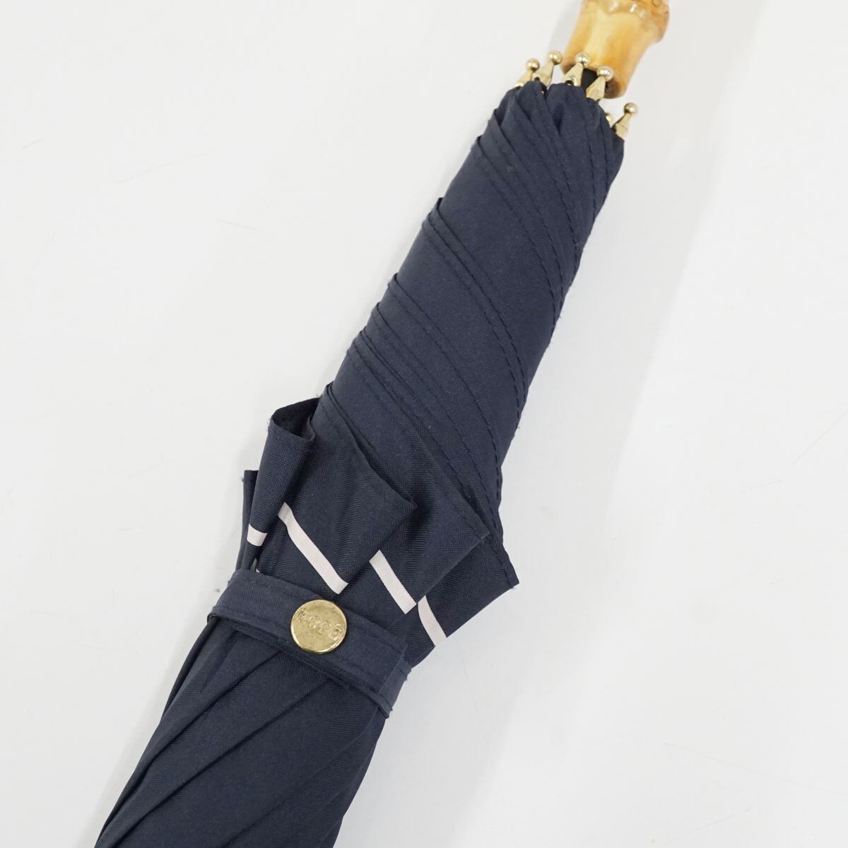 傘 ROPE ロペ USED美品 セーラーボーダー ネイビー ライン入り シンプル 寒竹手元 細巻き 58cm KR A0493