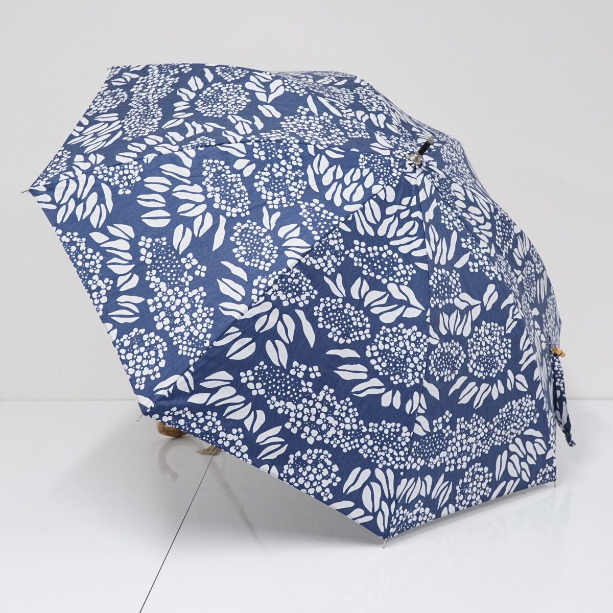 日傘 河馬印本舗 USED美品 あじさい 留紺 晴雨兼用 UV 遮光 50cm A2348