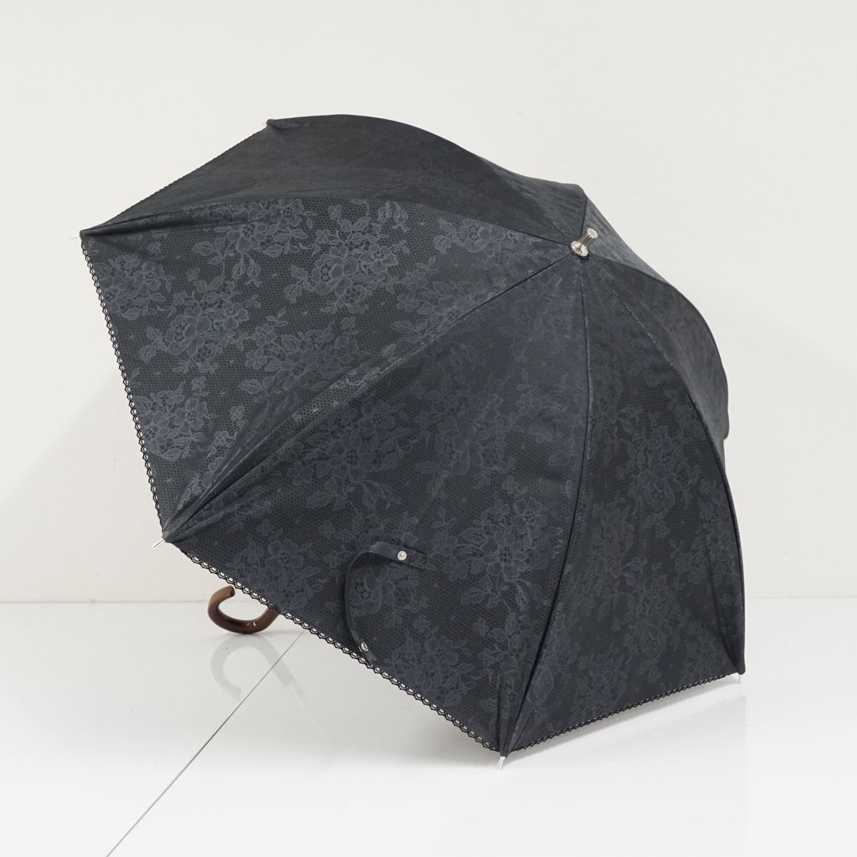 日傘 NINA RICCI ニナリッチ USED美品 晴雨兼用 フラワー ブラック 黒 UV 遮光 遮熱 グラス骨 50cm KR A0511