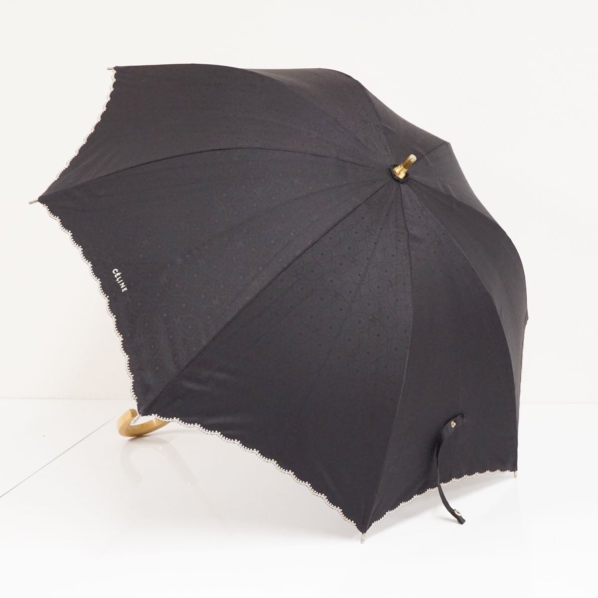 日傘 CELINE セリーヌ USED美品 マカダム 晴雨兼用 ブラック 47cm KR S0517