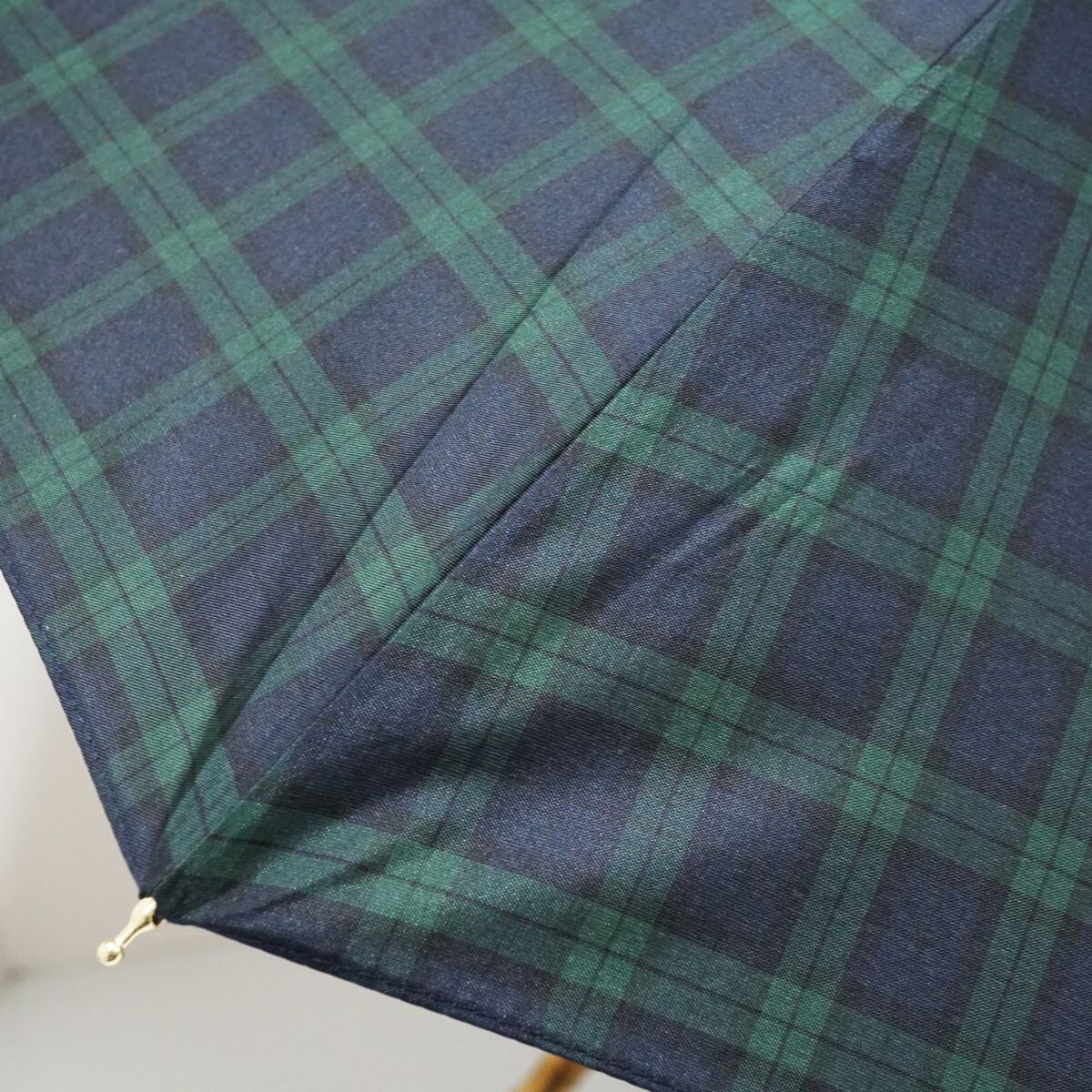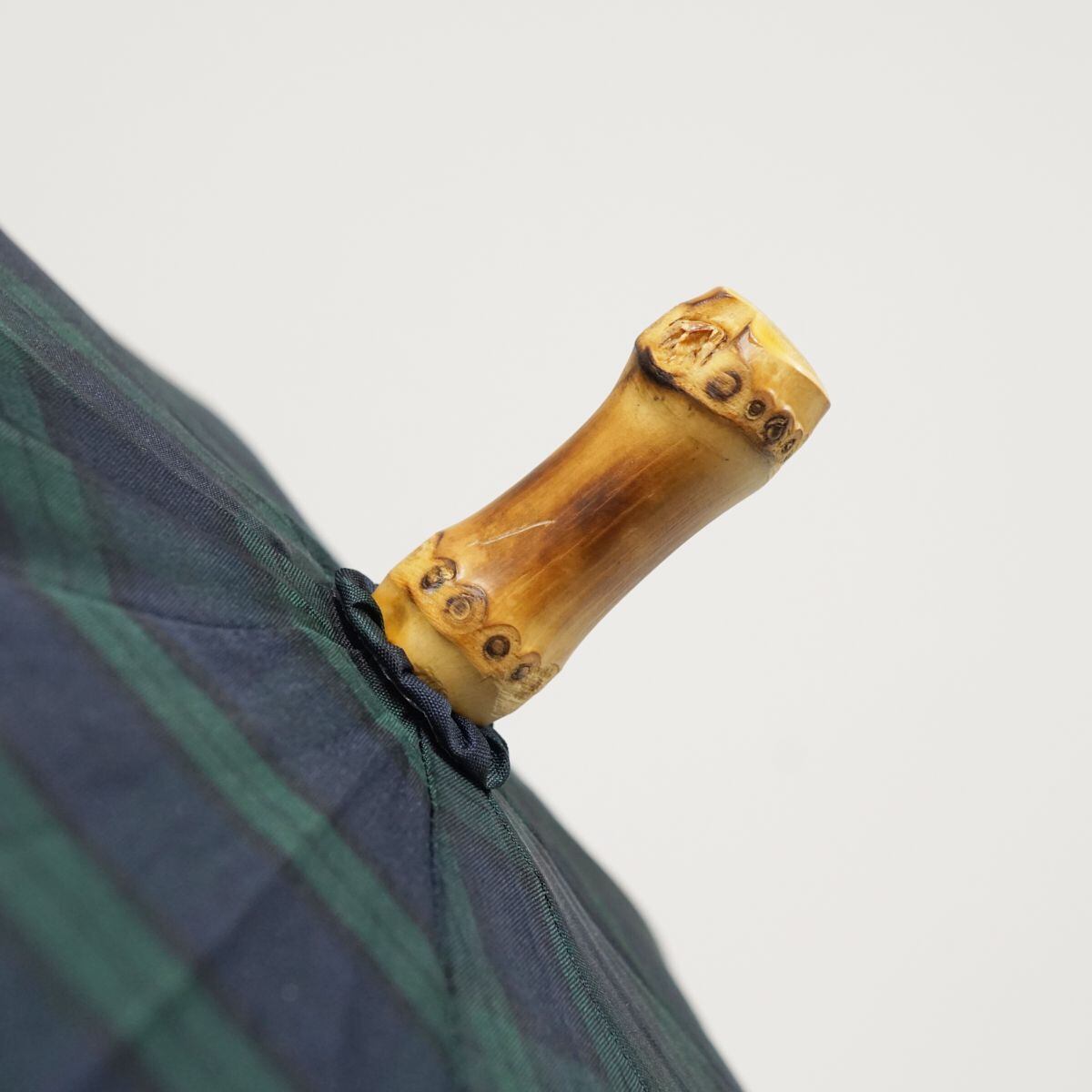 グリーン系のチェックパターンが上品なデザインで、手元と石突に寒竹を合わせて上品な雰囲気を醸し出しています。