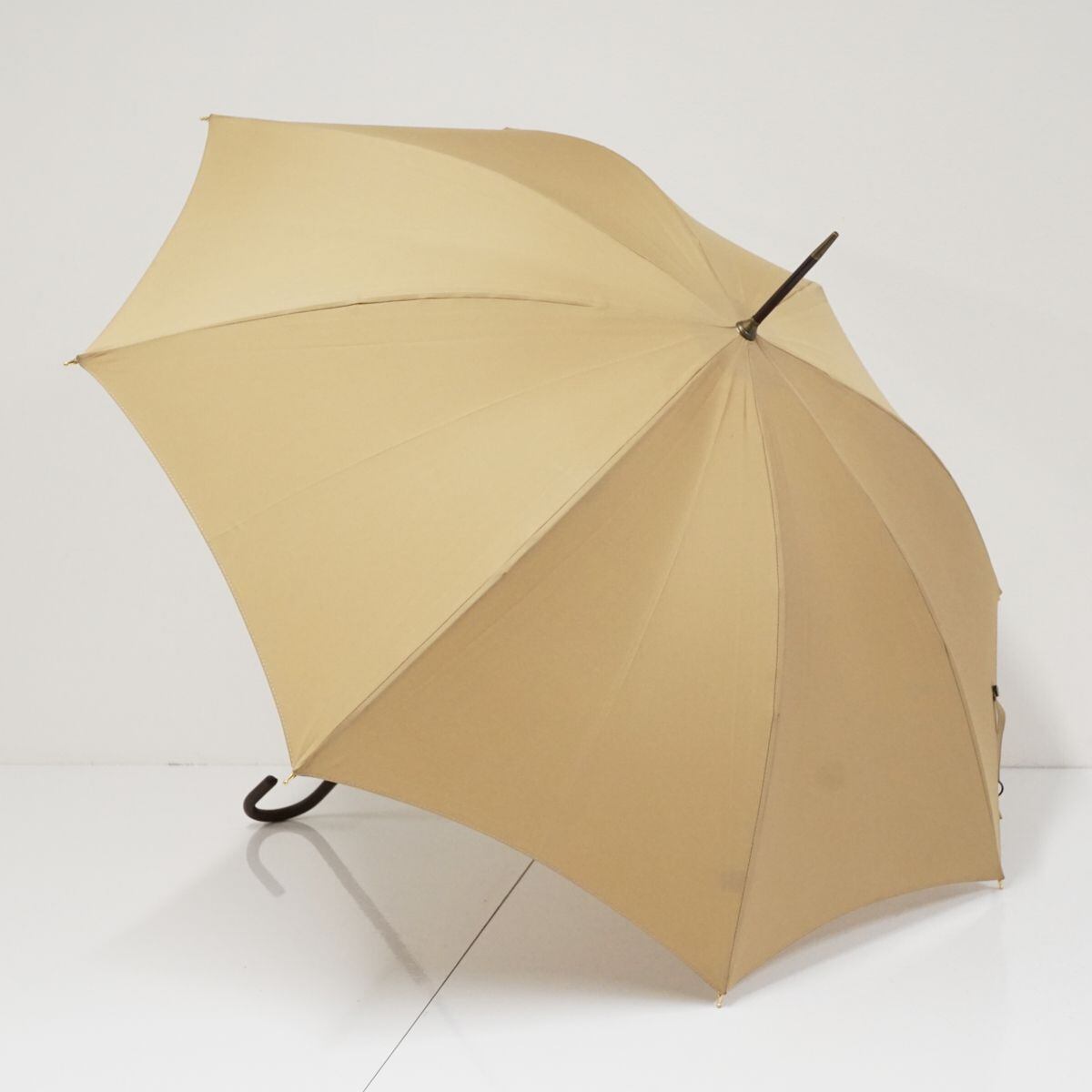 傘 FOX UMBRELLAS フォックス アンブレラズ USED美品 細巻 ベージュ 英国製 レザー手元 52cm KR S0536