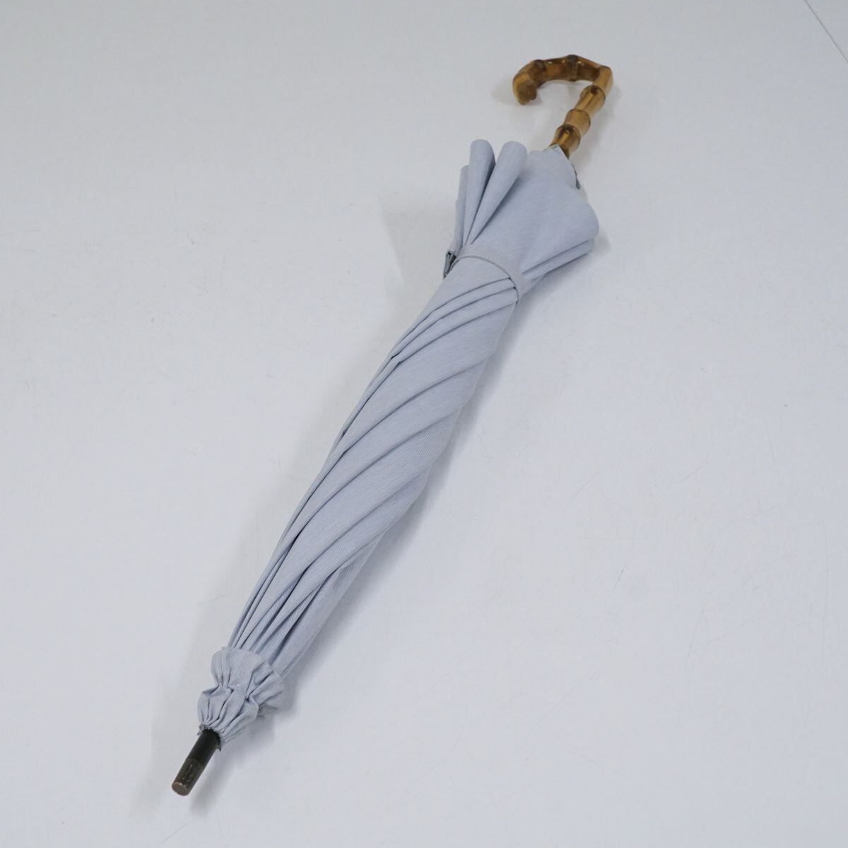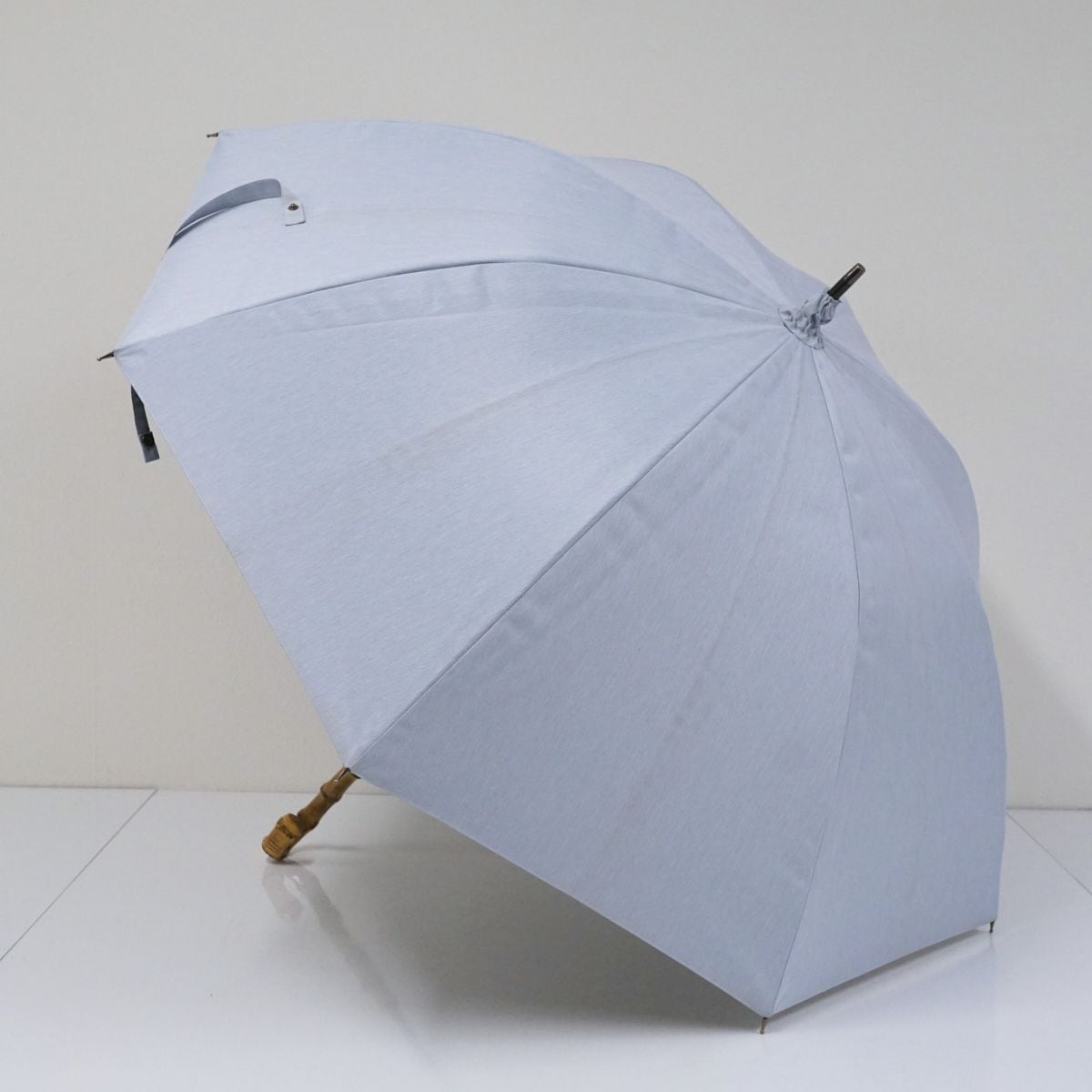 ベース色はブルー(ライトブルーに近いお色です。)で、日傘の中では大き目のサイズ設計と上品なカラーが特徴です。