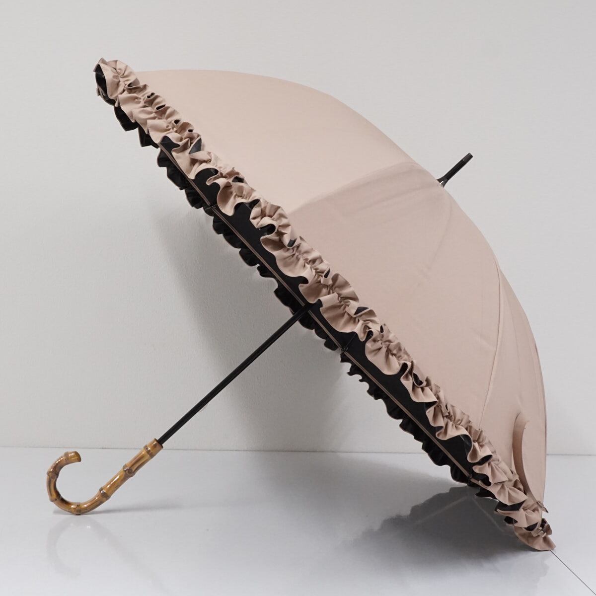 ベース色はピンク(くすみピンクに近いお色です。)で、日傘の中では大き目のサイズ設計と上品なカラーが特徴です。