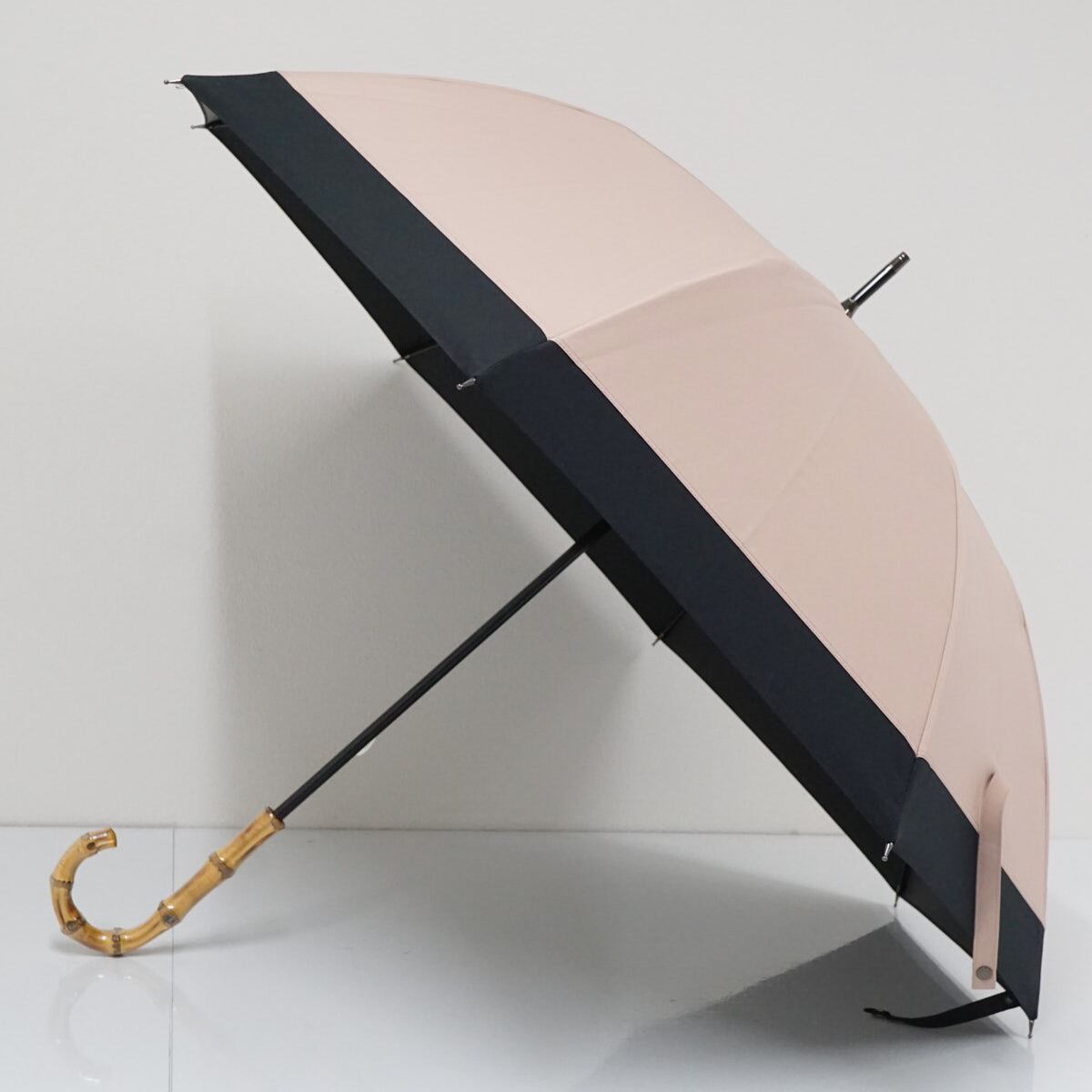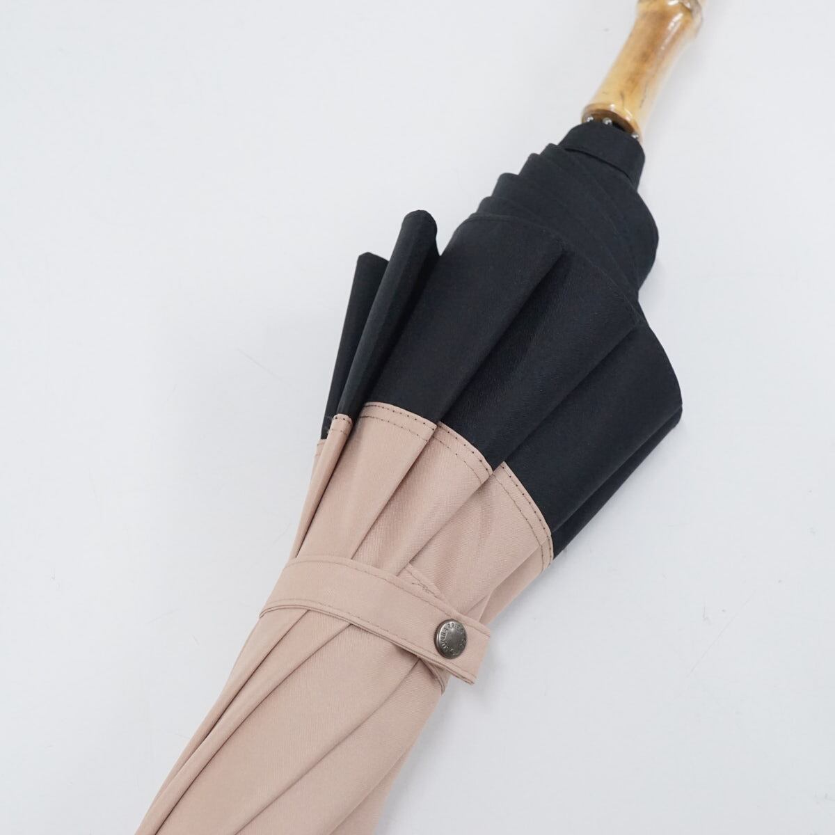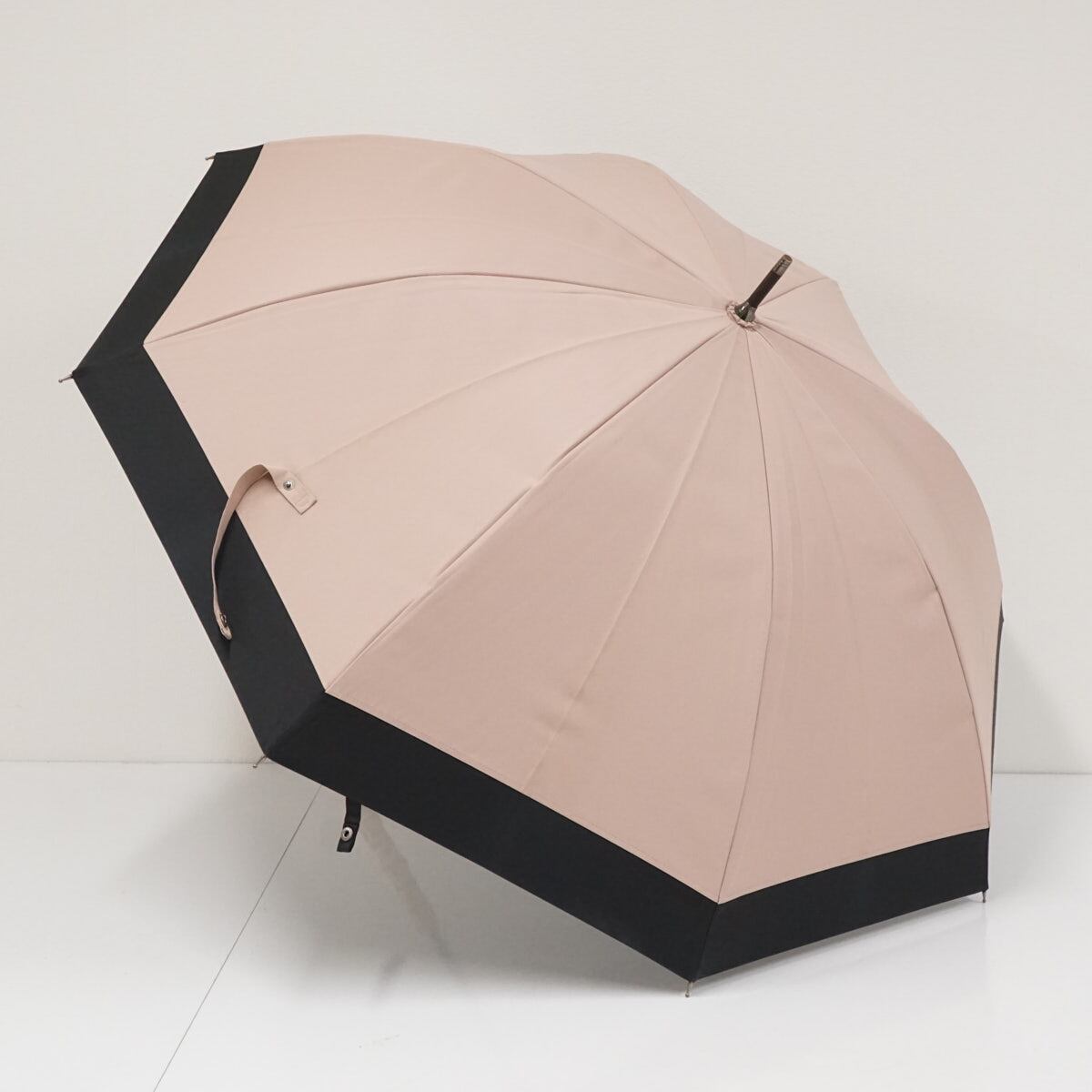 ピンク×ブラックのコンビパターンで、日傘の中では大き目のサイズ設計と上品なカラーが特徴です。