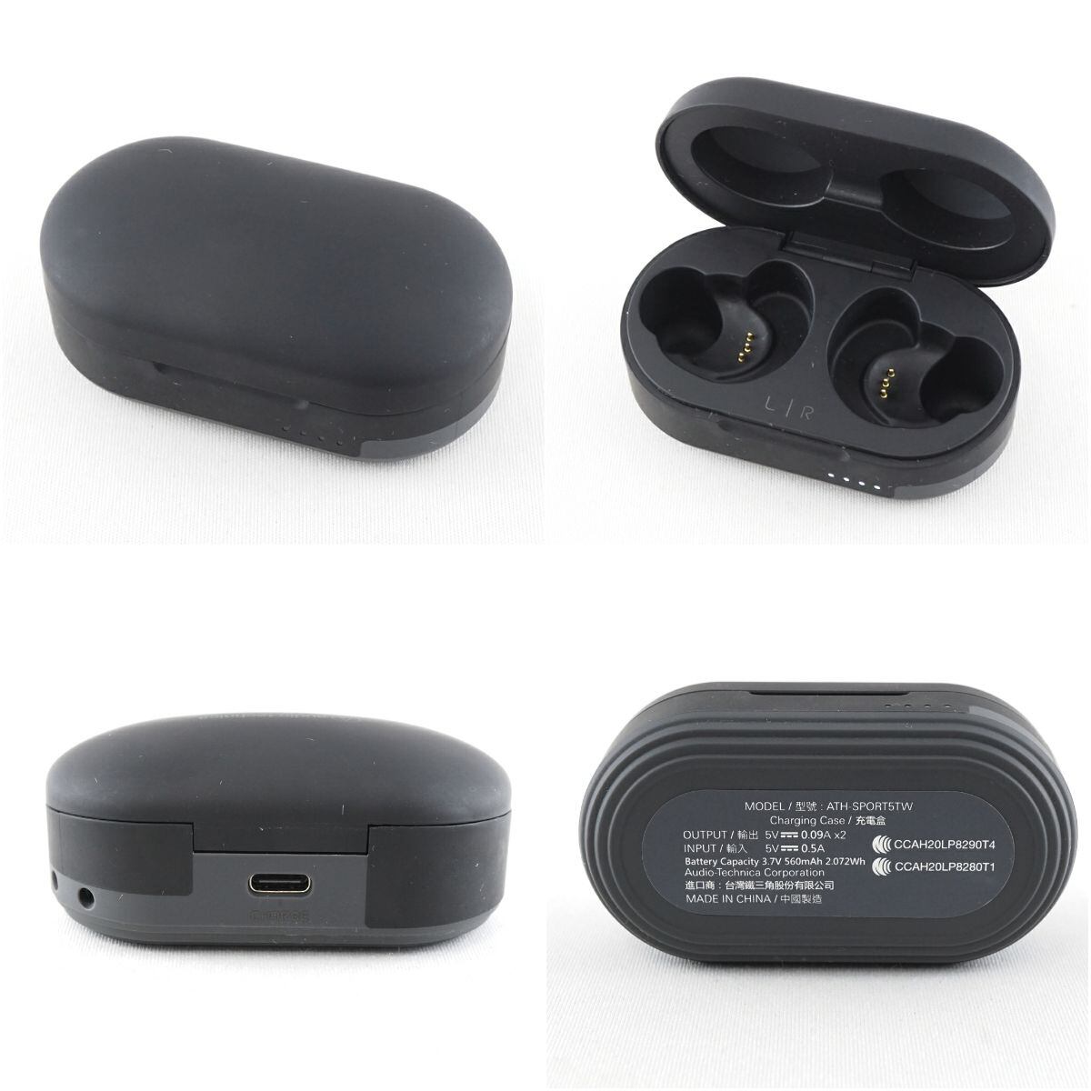 audio-technica ATH-SPORT5TW 完全ワイヤレスイヤホン USED美品 防水・防浸・防じん性能 IP55 IP57 外音取込 マイク ブラック 完動品 V0401