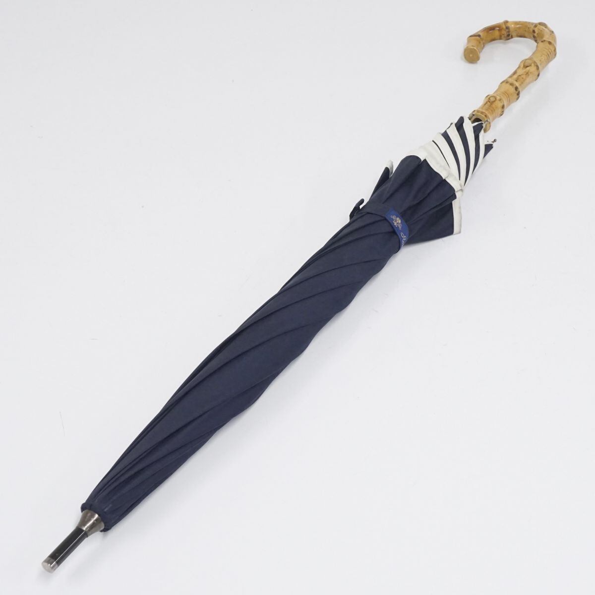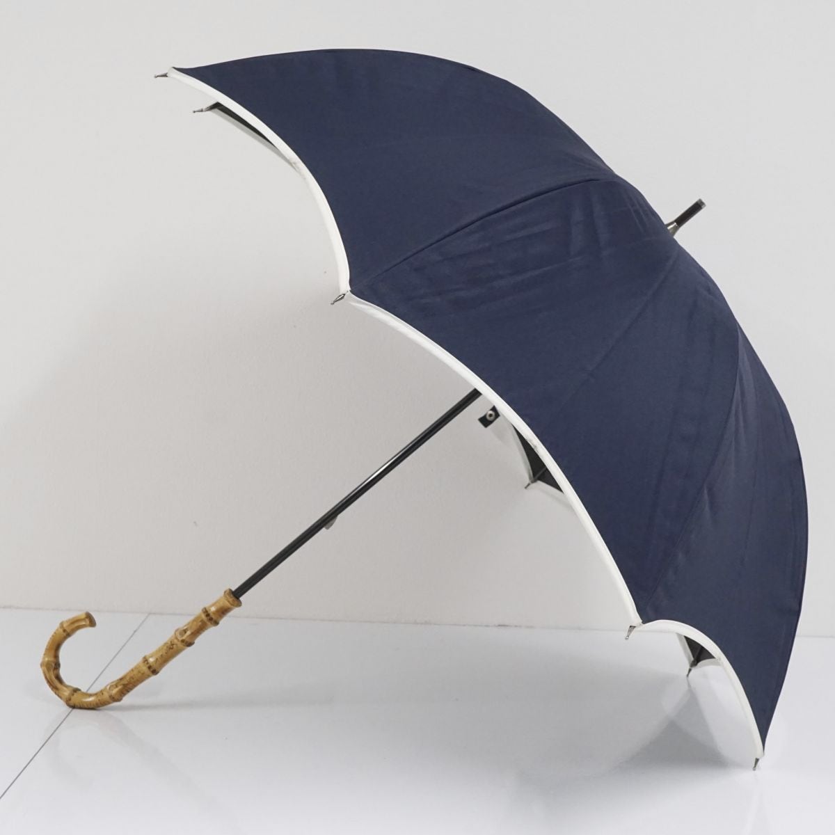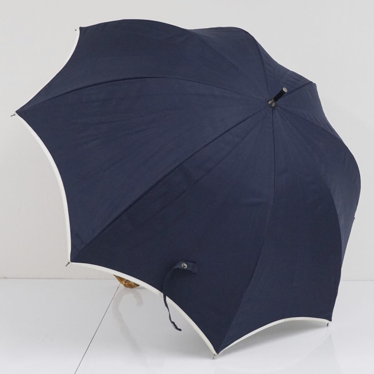 日傘 芦屋ロサブラン 完全遮光日傘 USED美品 Mサイズ ネイビー アイボリー パイピング 遮光 遮熱 UV 55cm S2141