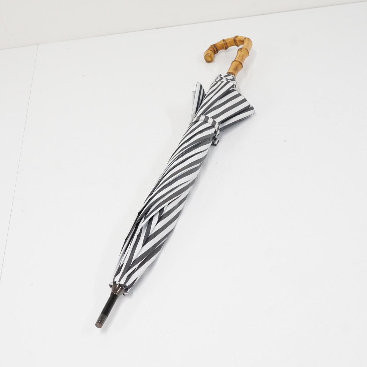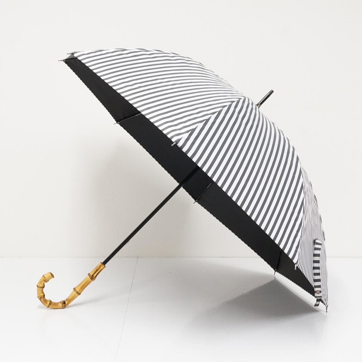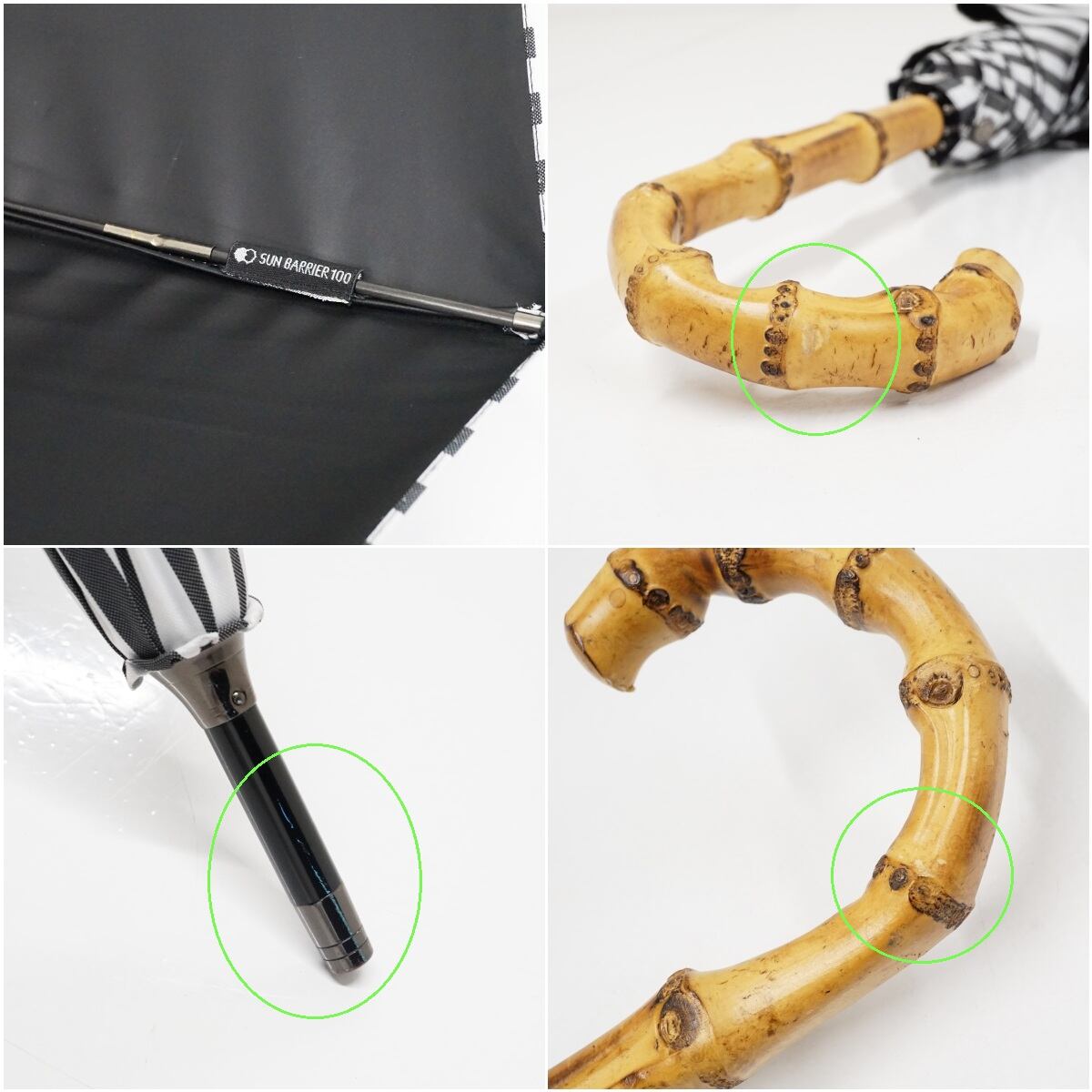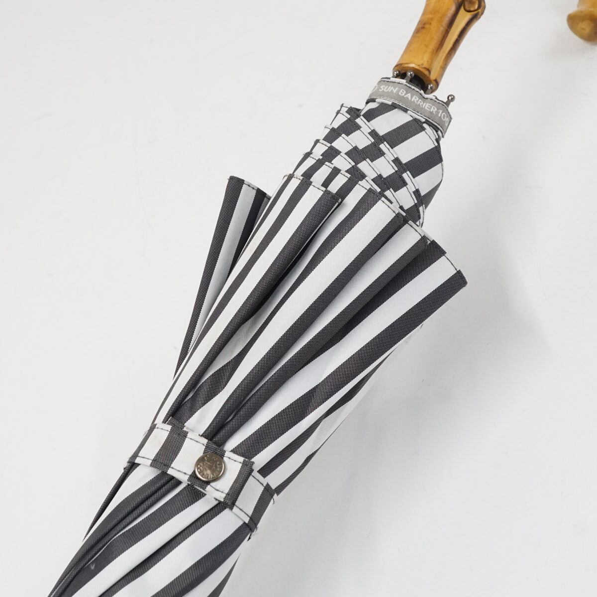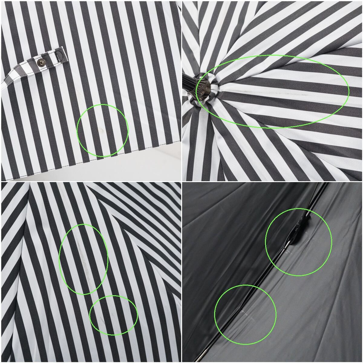 日傘 サンバリア100 完全遮光日傘 USED美品 ホワイト ブラック 白黒 ストライプ UVカット SUN BARRIER 100 Mサイズ 55cm S3466
