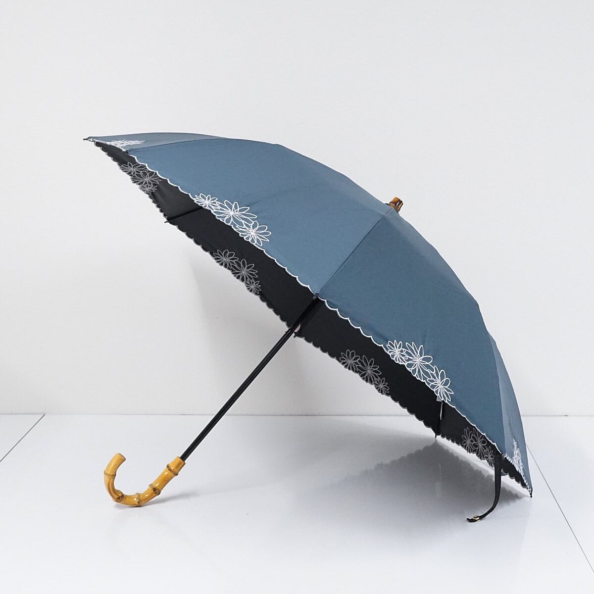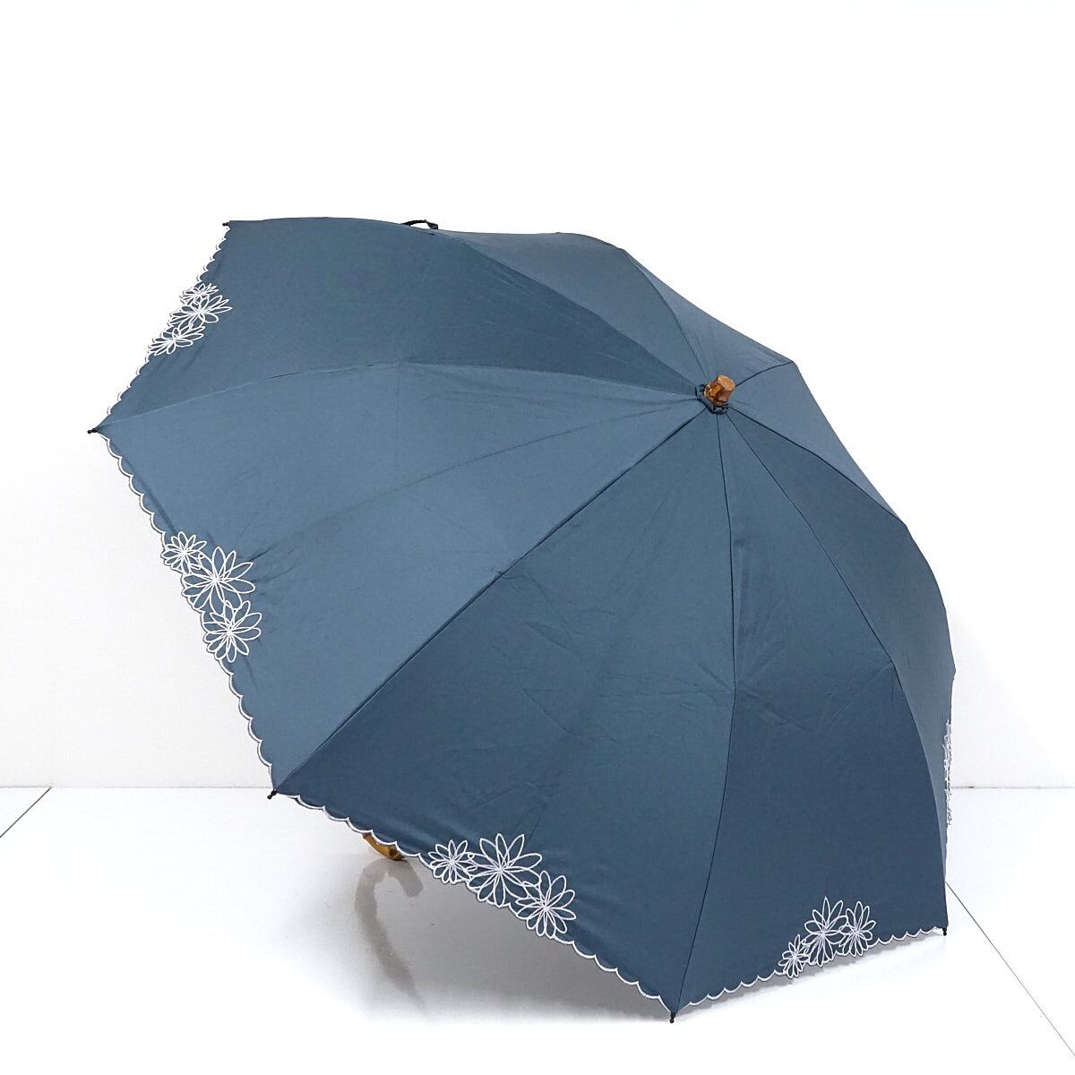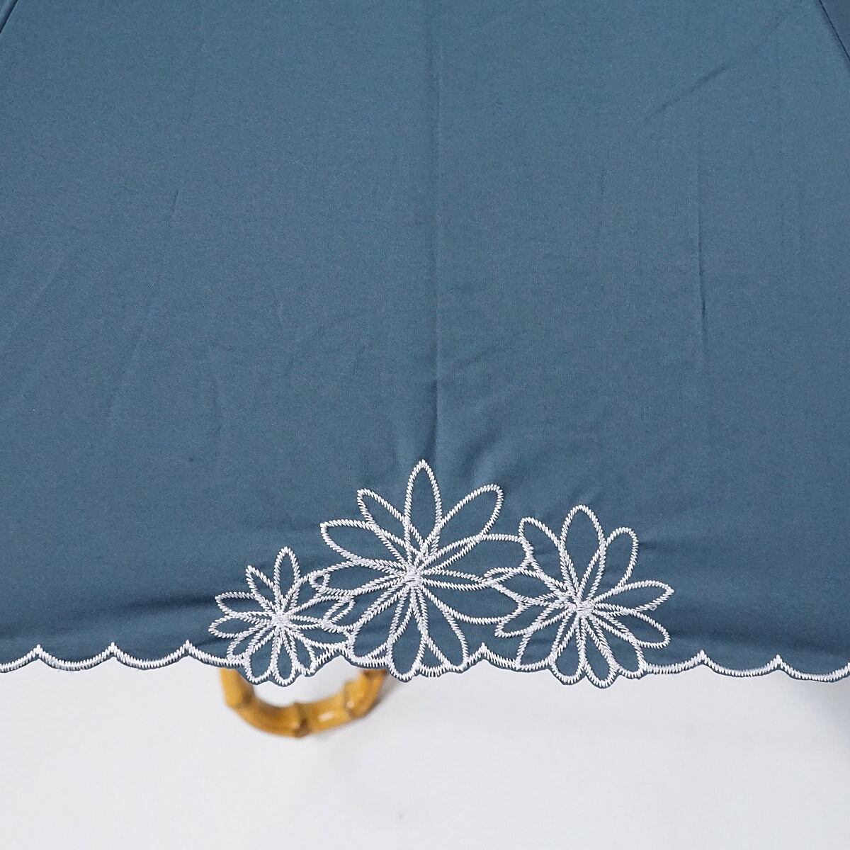 完全遮光折りたたみ日傘 Wpc. UVO ウーボ USED品 ブルーグレー 刺繍フラワー 2段 UV 遮光 遮熱 最強の日傘 軽量 50cm FA9026