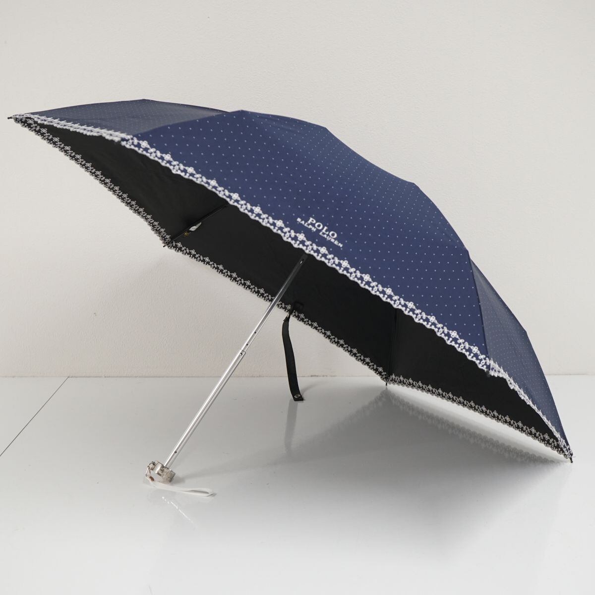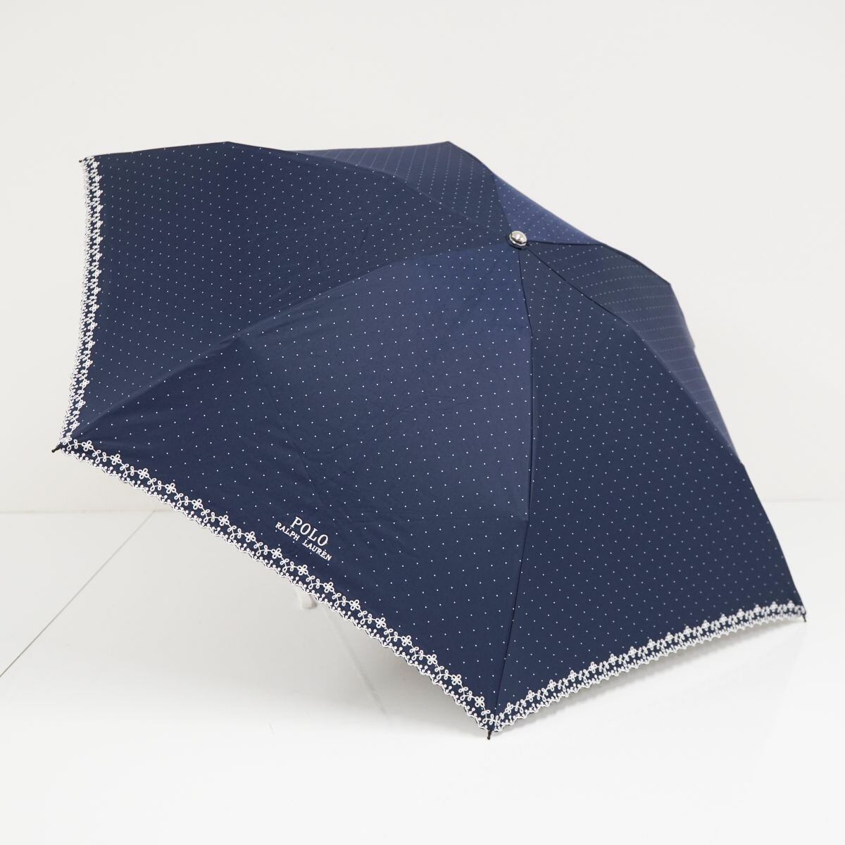 折りたたみ日傘 Polo Ralph Lauren ポロラルフローレン USED美品 晴雨兼用 ネイビー ドット 遮光 UV 折日傘 紺 50cm FA8551