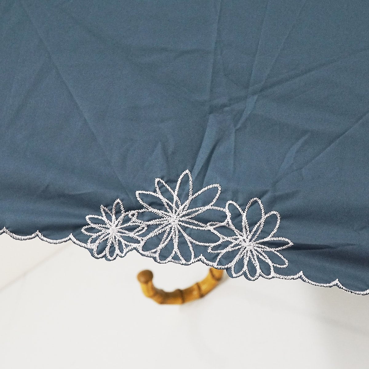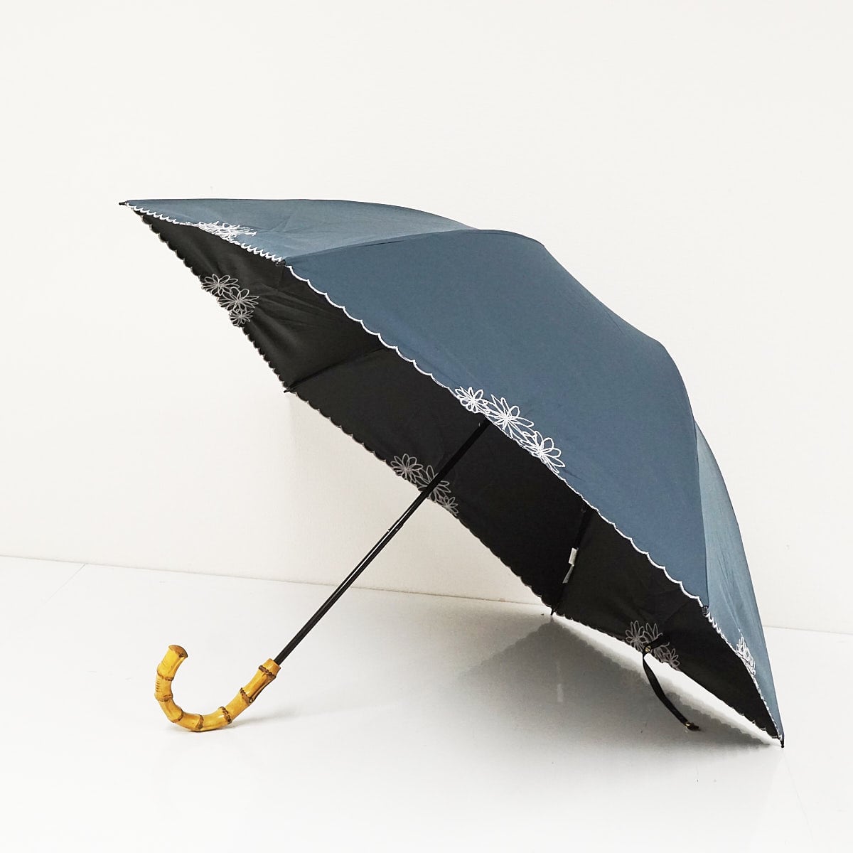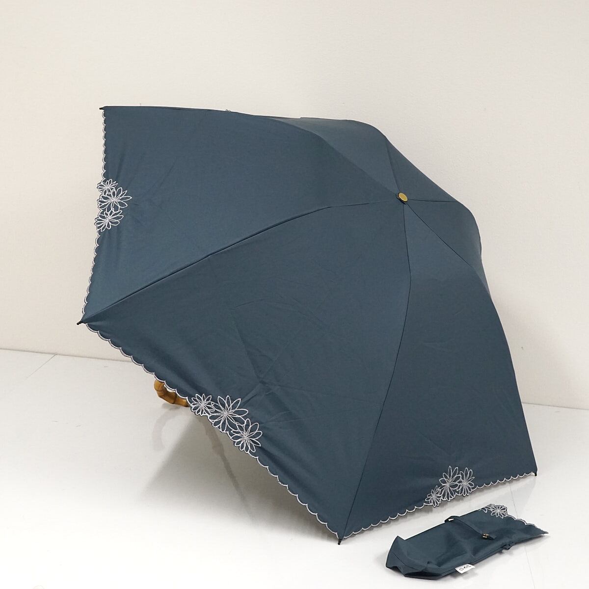 完全遮光折りたたみ日傘 Wpc. UVO ウーボ USED品 ブルーグレー 刺繍フラワー 3段 UV 遮光 遮熱 最強の日傘 軽量 55cm FA9061