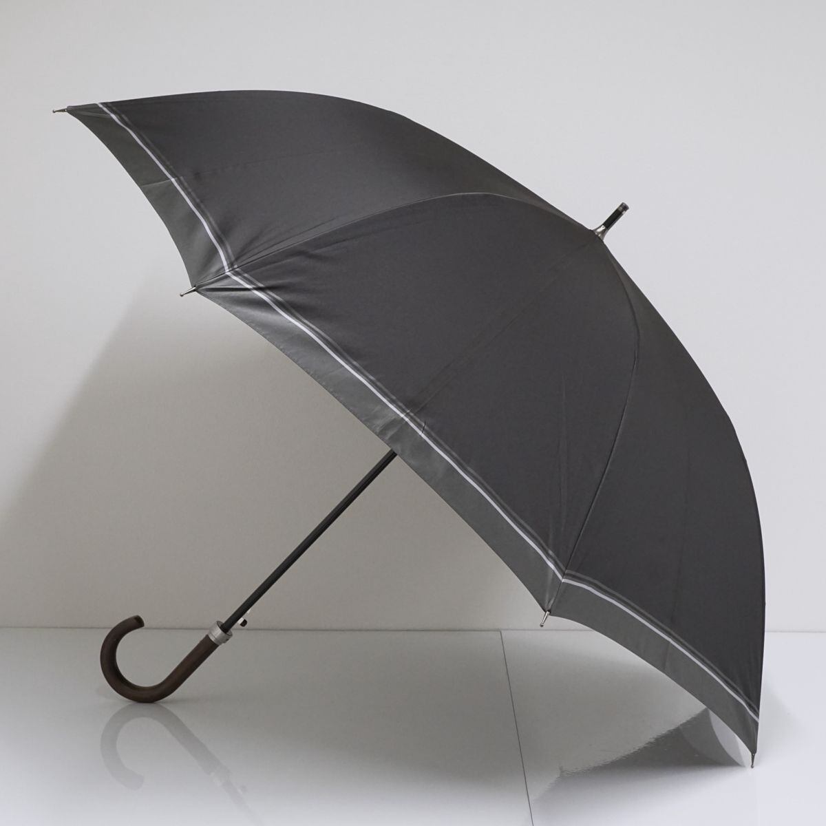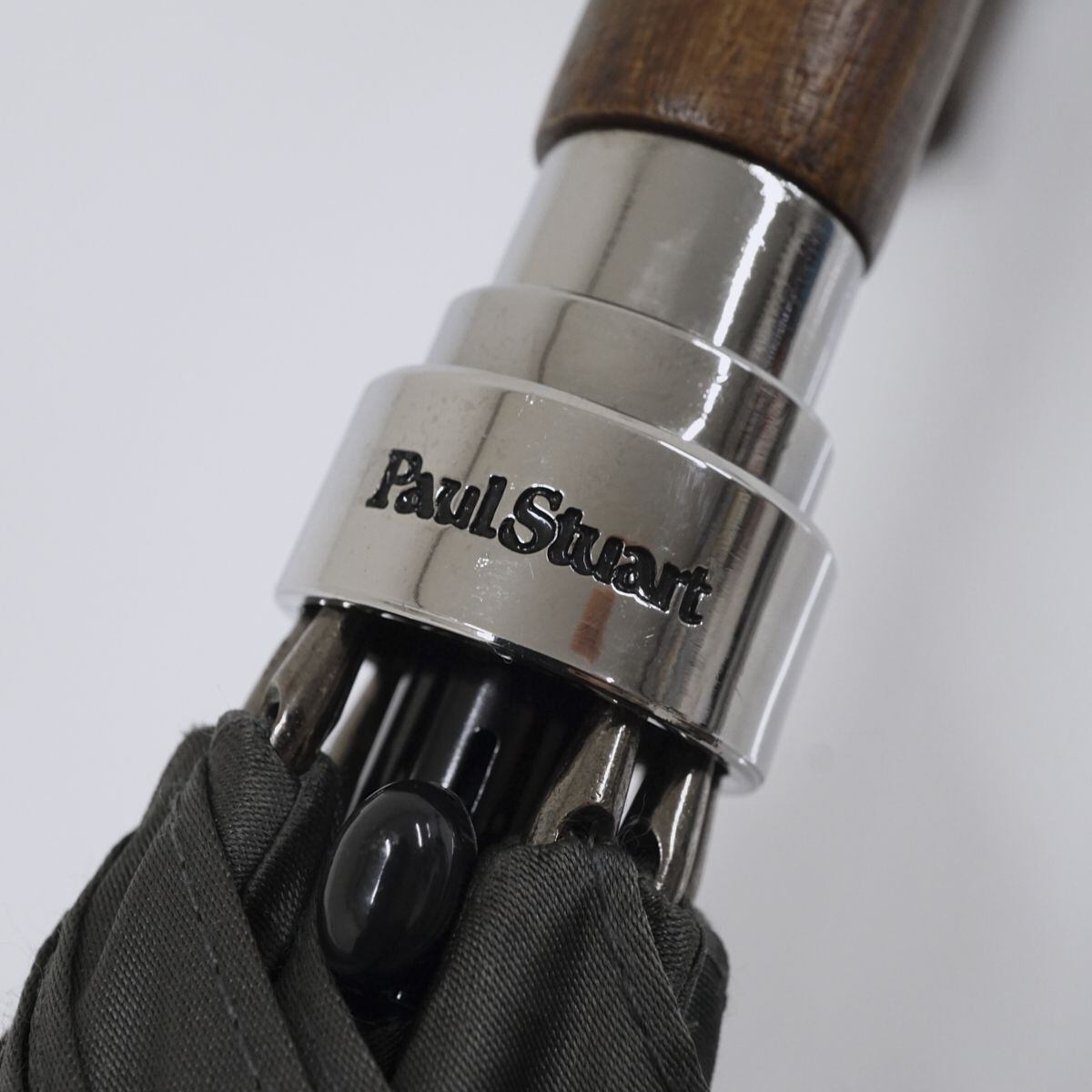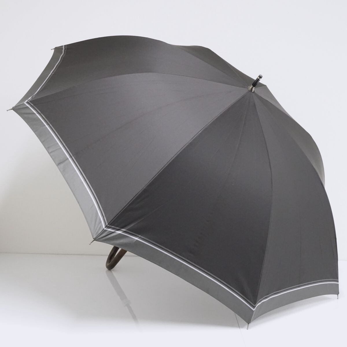 傘 Paul Stuart ポールスチュアート USED美品 紳士傘 外周ボーダー ブラック グラスファイバーフレーム 高級 大判 65cm A0593