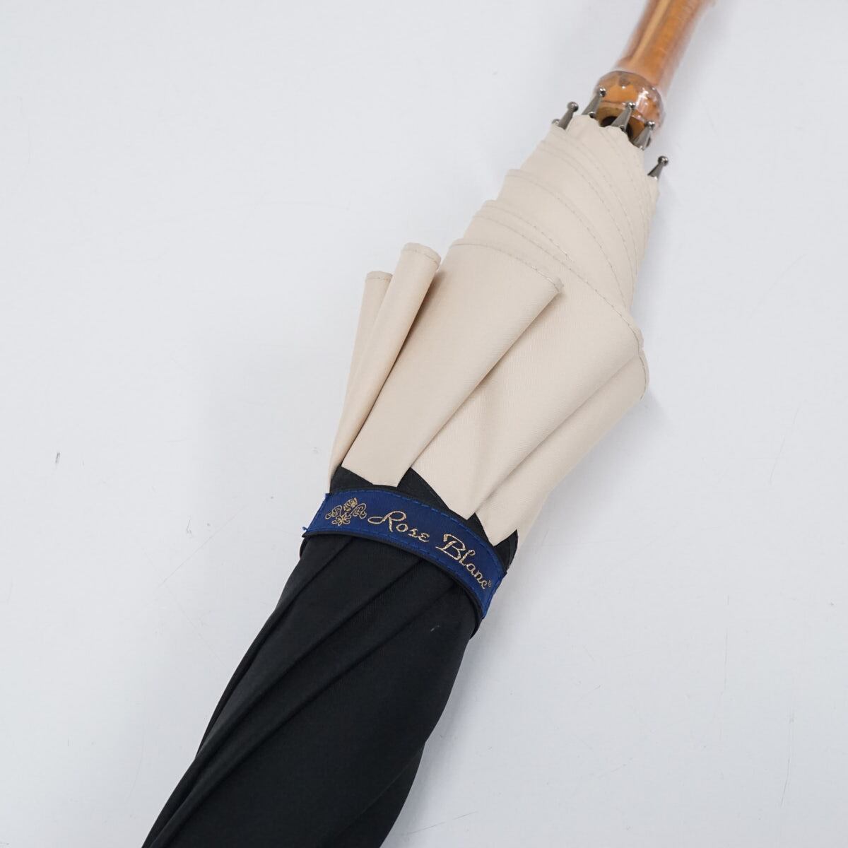 完全遮光日傘 芦屋ロサブラン 完全遮光日傘 USED美品 ミドルサイズ 55cm コンビ ブラック ベージュ S2586