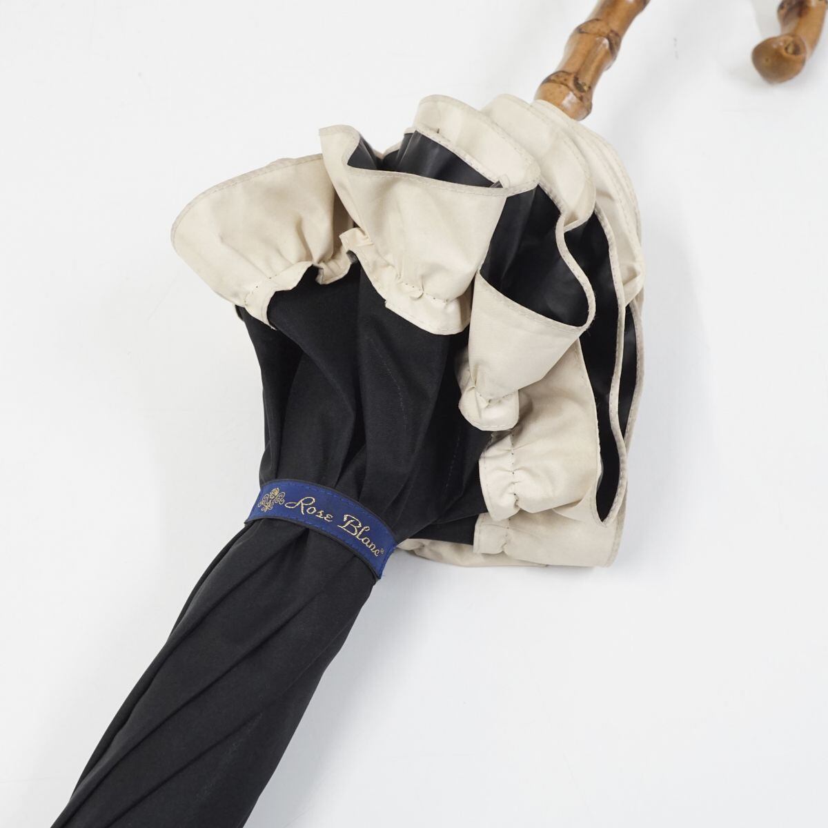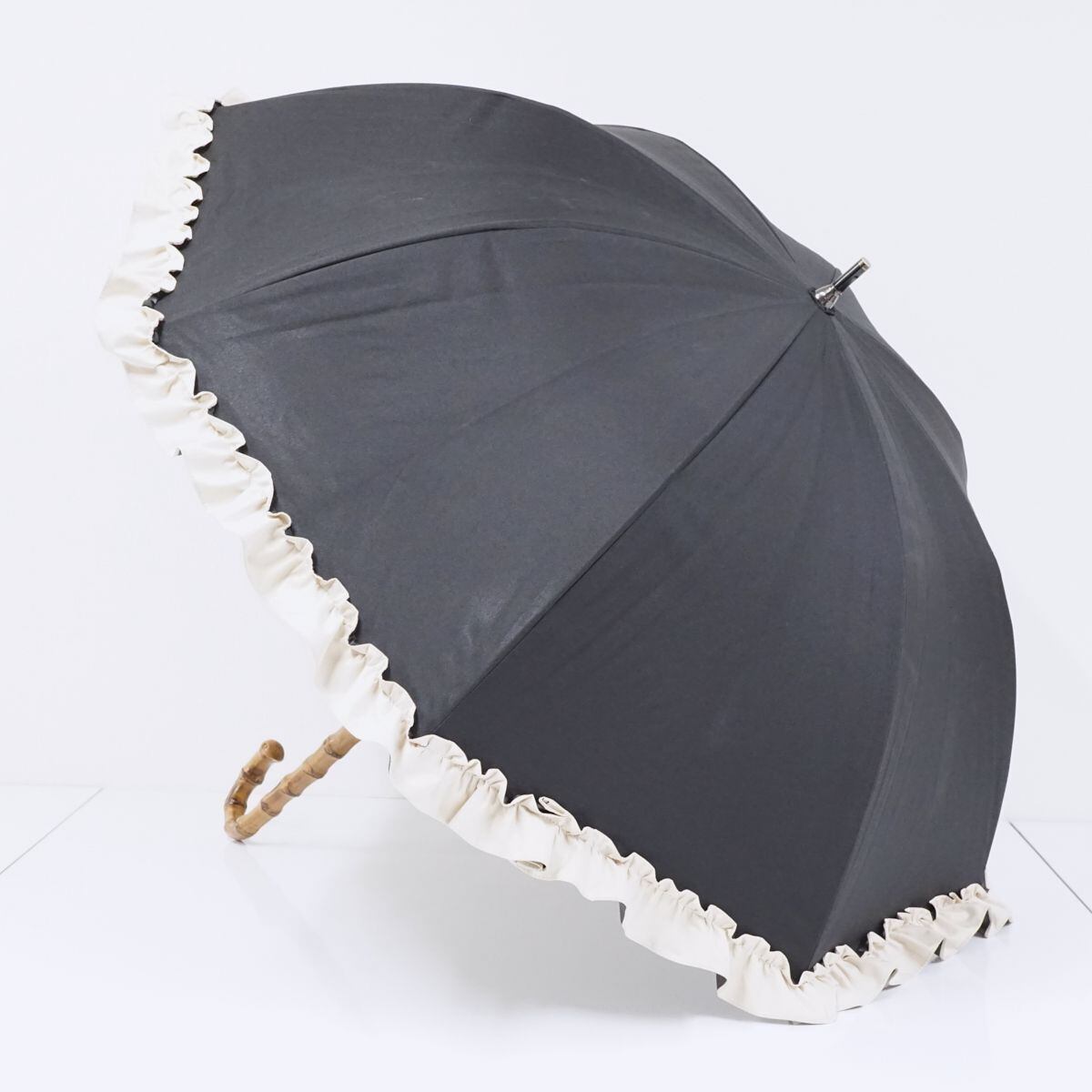日傘 芦屋ロサブラン 完全遮光日傘 USED品 ブラック ベージュ ミドルサイズ 55cm シングルフリル S0632