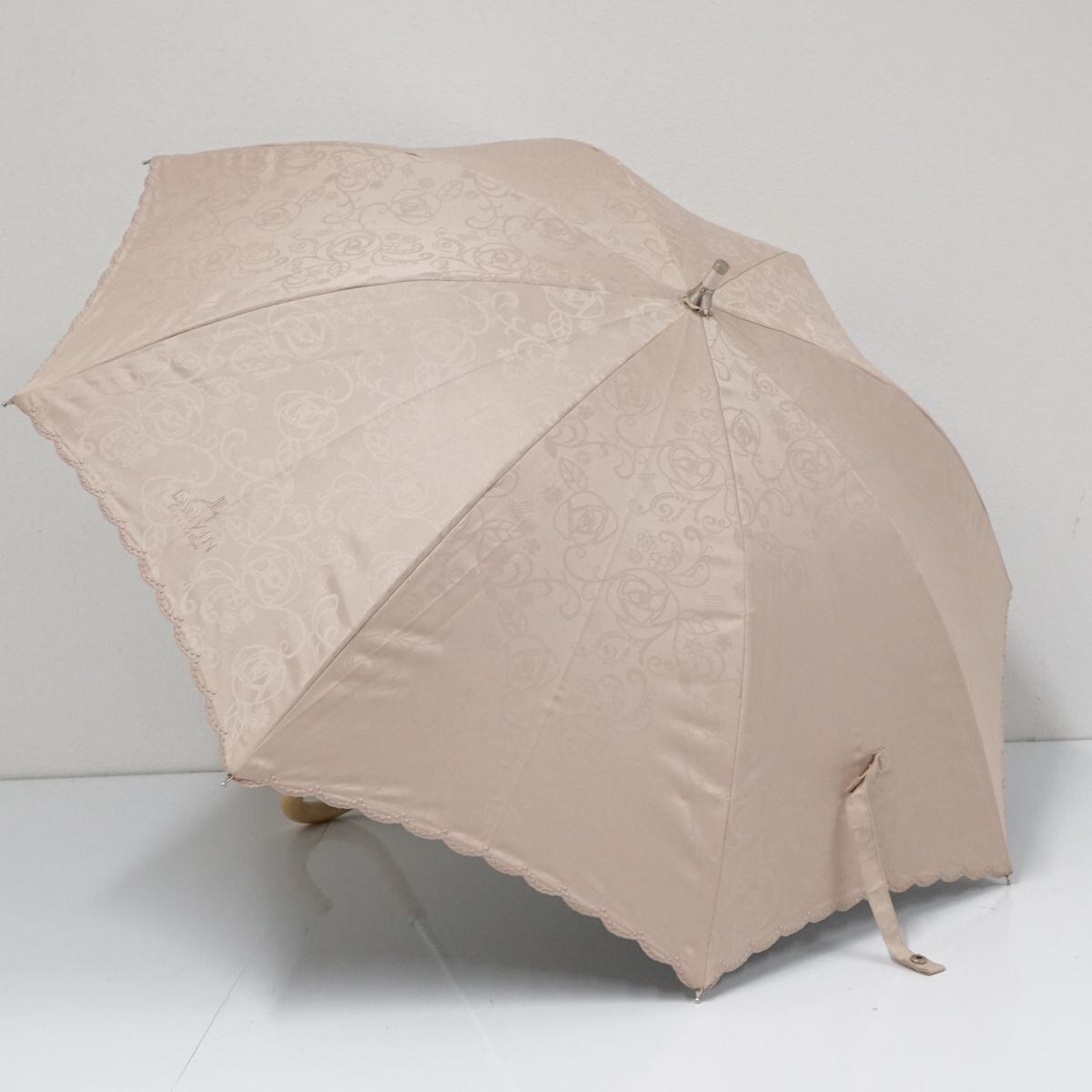 晴雨兼用日傘 LANVIN COLLECTION ランバンコレクション USED美品 レースフラワー フラワー スカラップ刺繍 ベージュ UV 47cm A0622