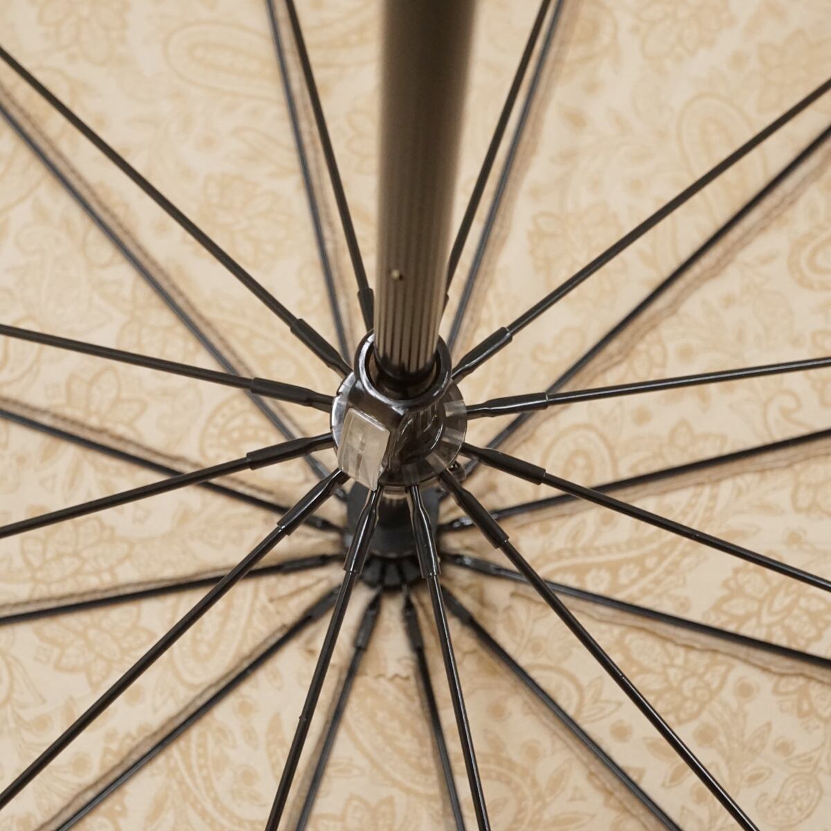 そして12本骨が織りなす円を描くフォルムも美しく、傘の強度とデザイン性を高めています。