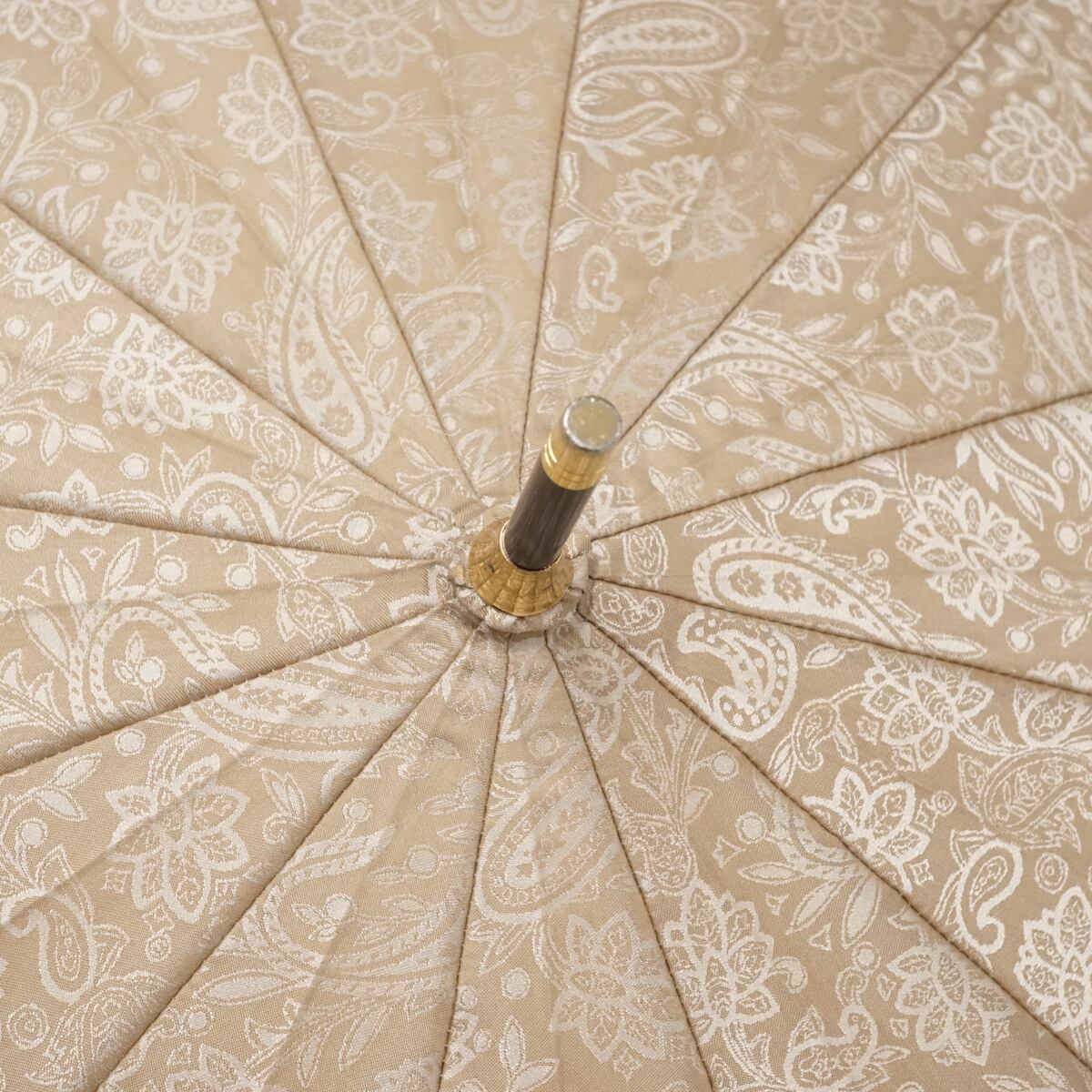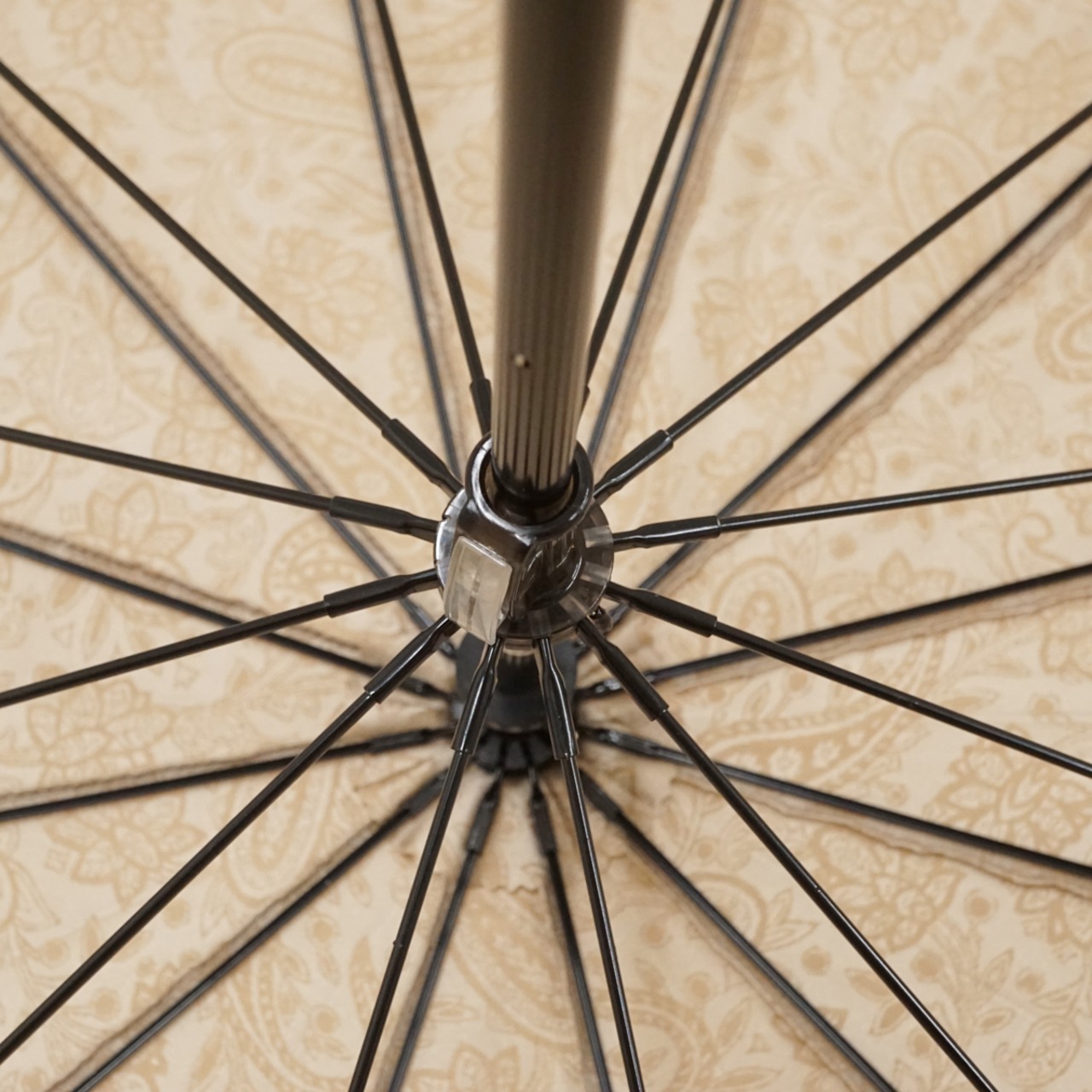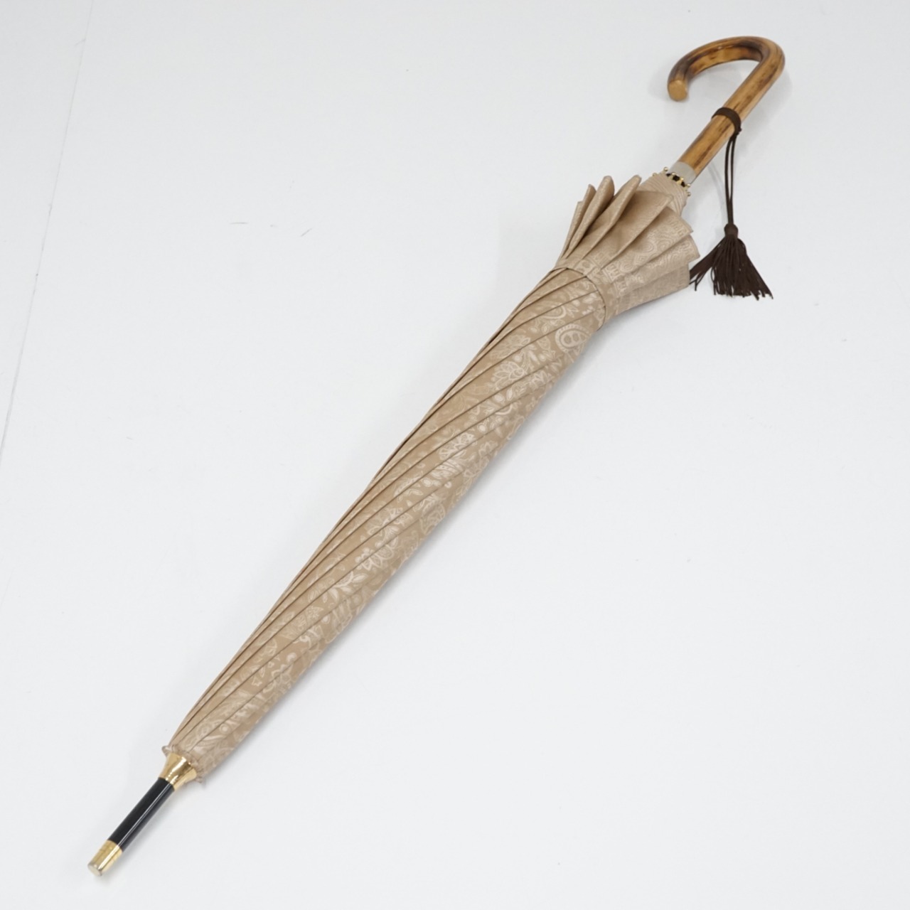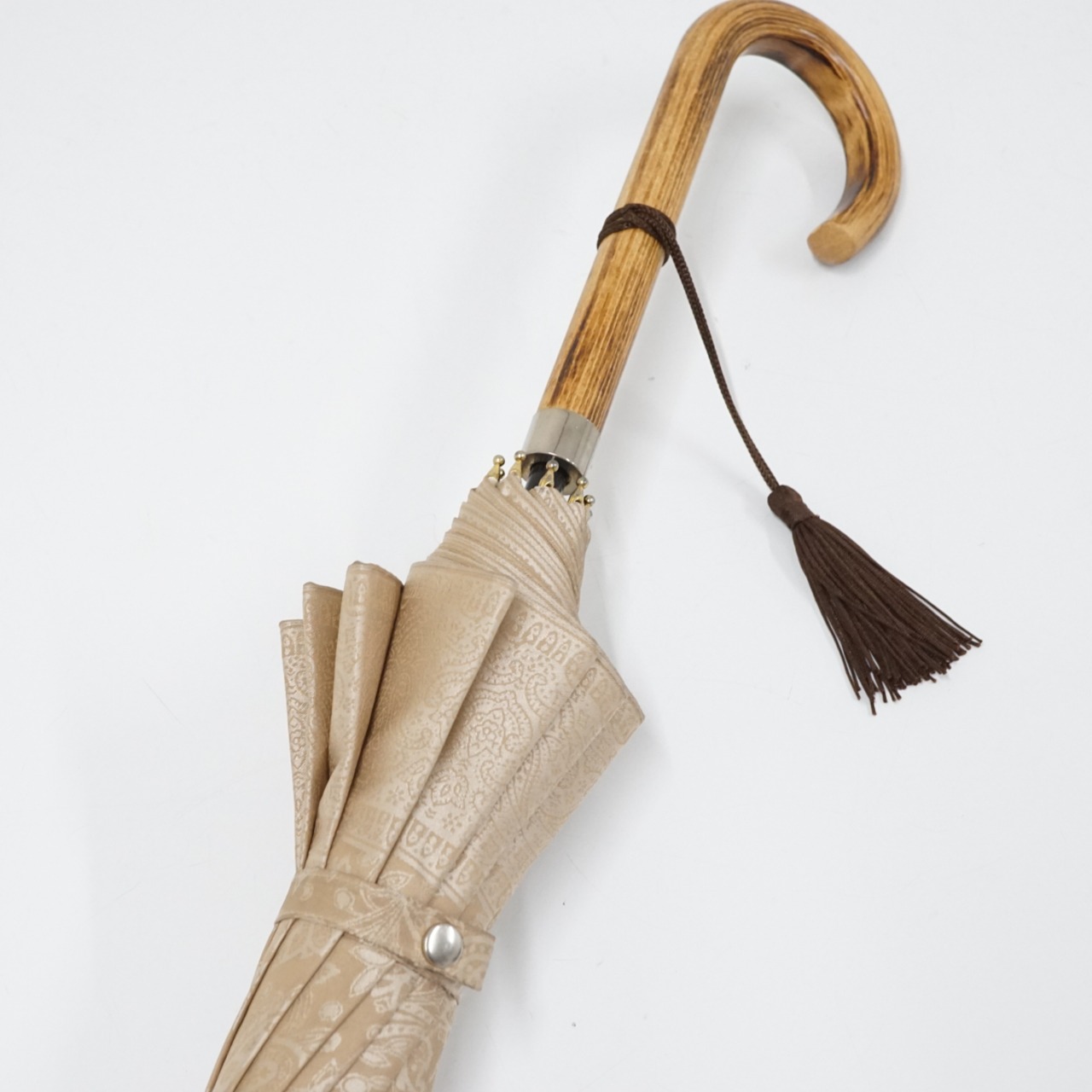 ベージュに光沢のあるペイズリー柄がおしゃれな傘です。