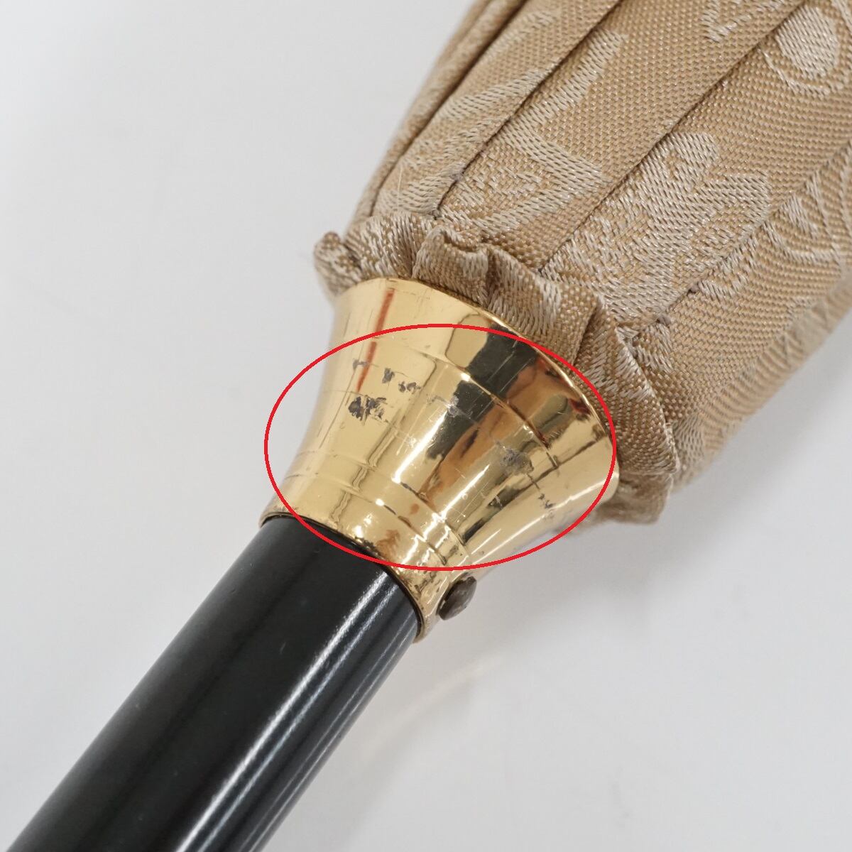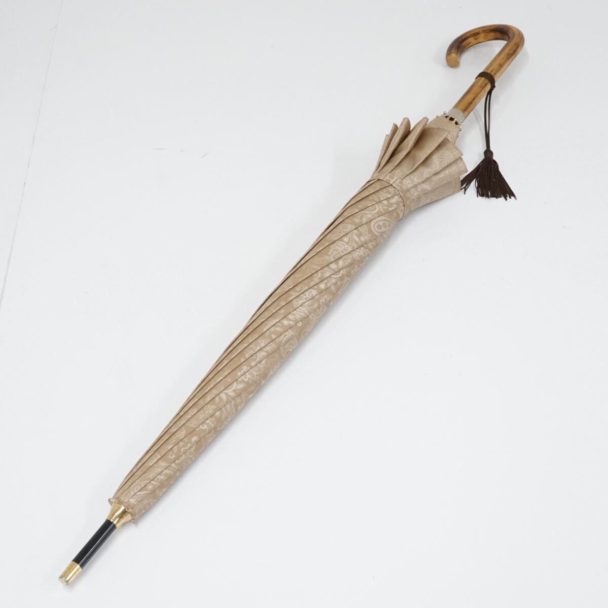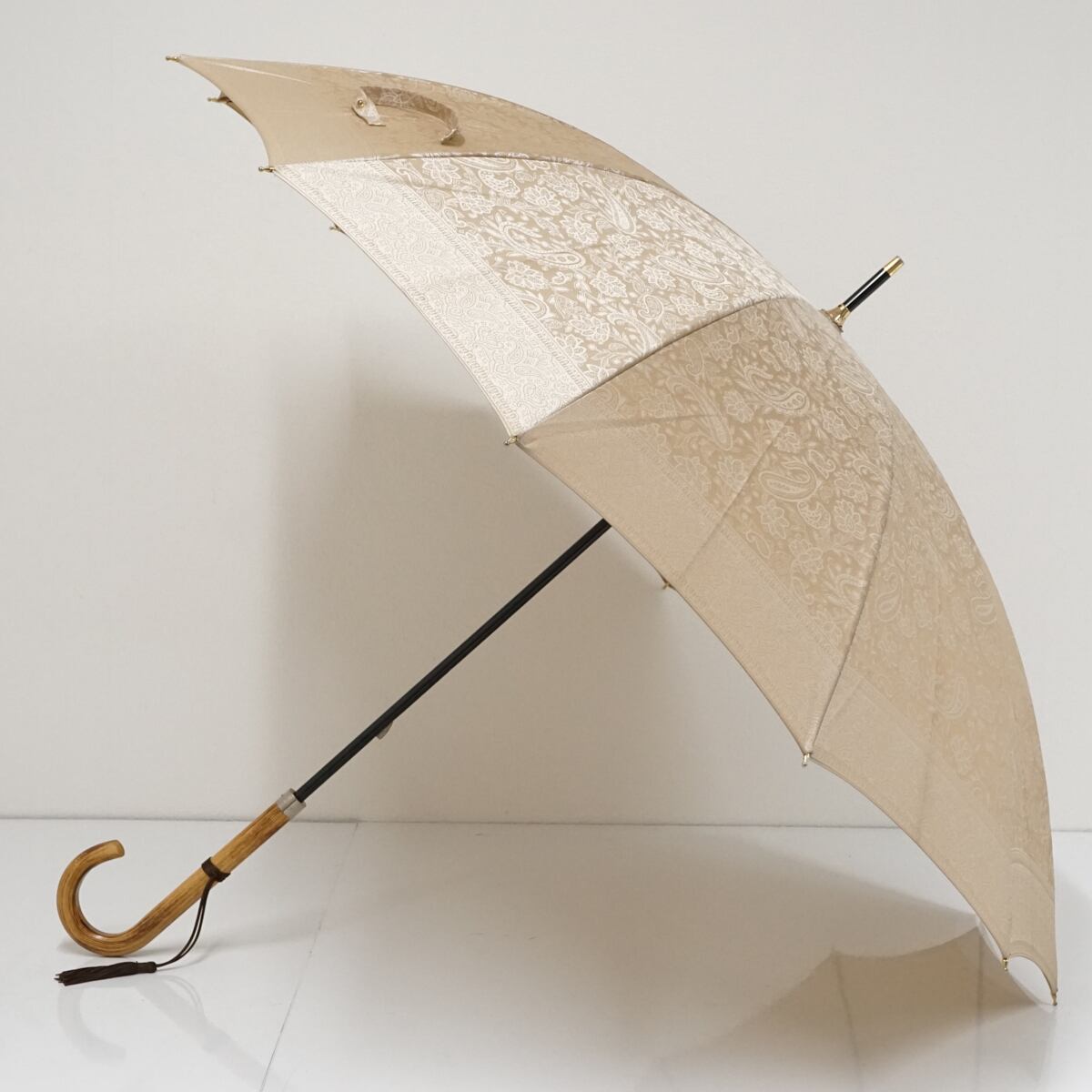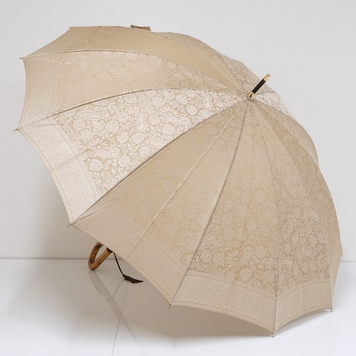 傘 AUROLA オーロラ 高級12本骨傘 USED美品 ジャガード ペイズリー ベージュ系 天然木手元 55cm S1850
