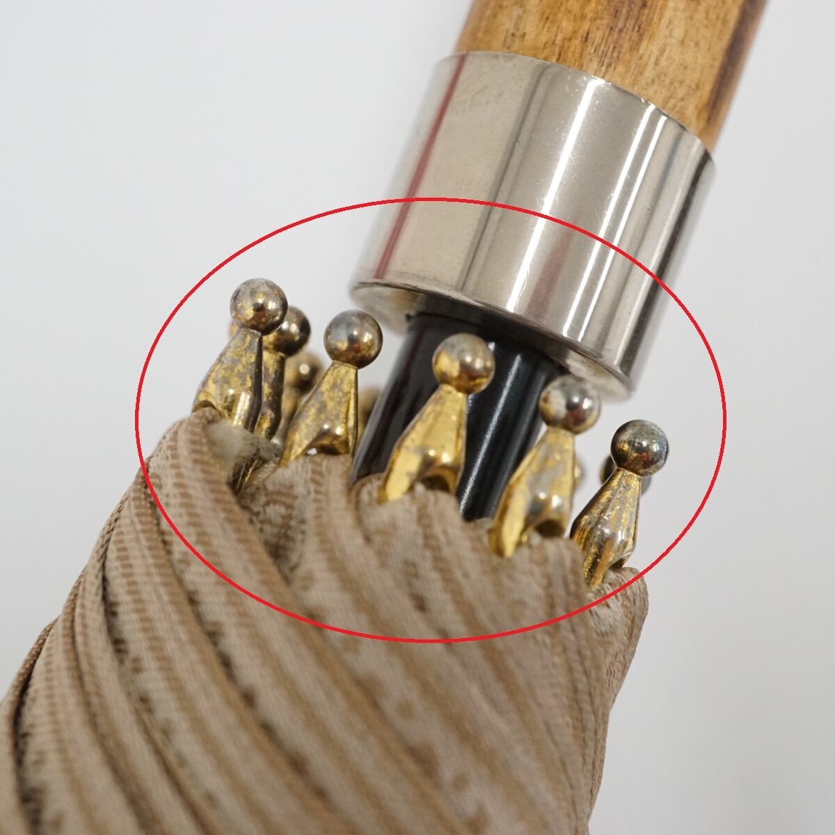 さらに手元、シャフト(中棒)、石突きに至るまで天然木で統一した重厚感ある作りで、さすがは数々のブランドライセンシーを持つオーロラ社製と頷ける納得の仕上げです。