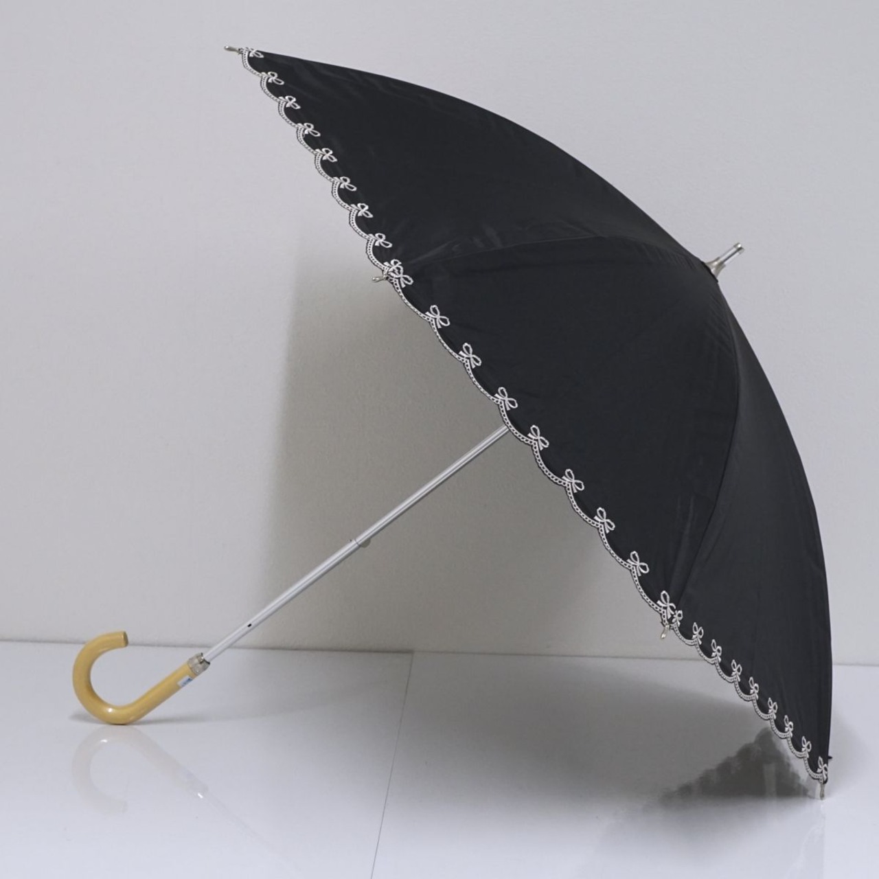日傘 NINA RICCI ニナリッチ USED美品 晴雨兼用 リボン ブラック 黒 UV 遮光 遮熱 47cm S0667