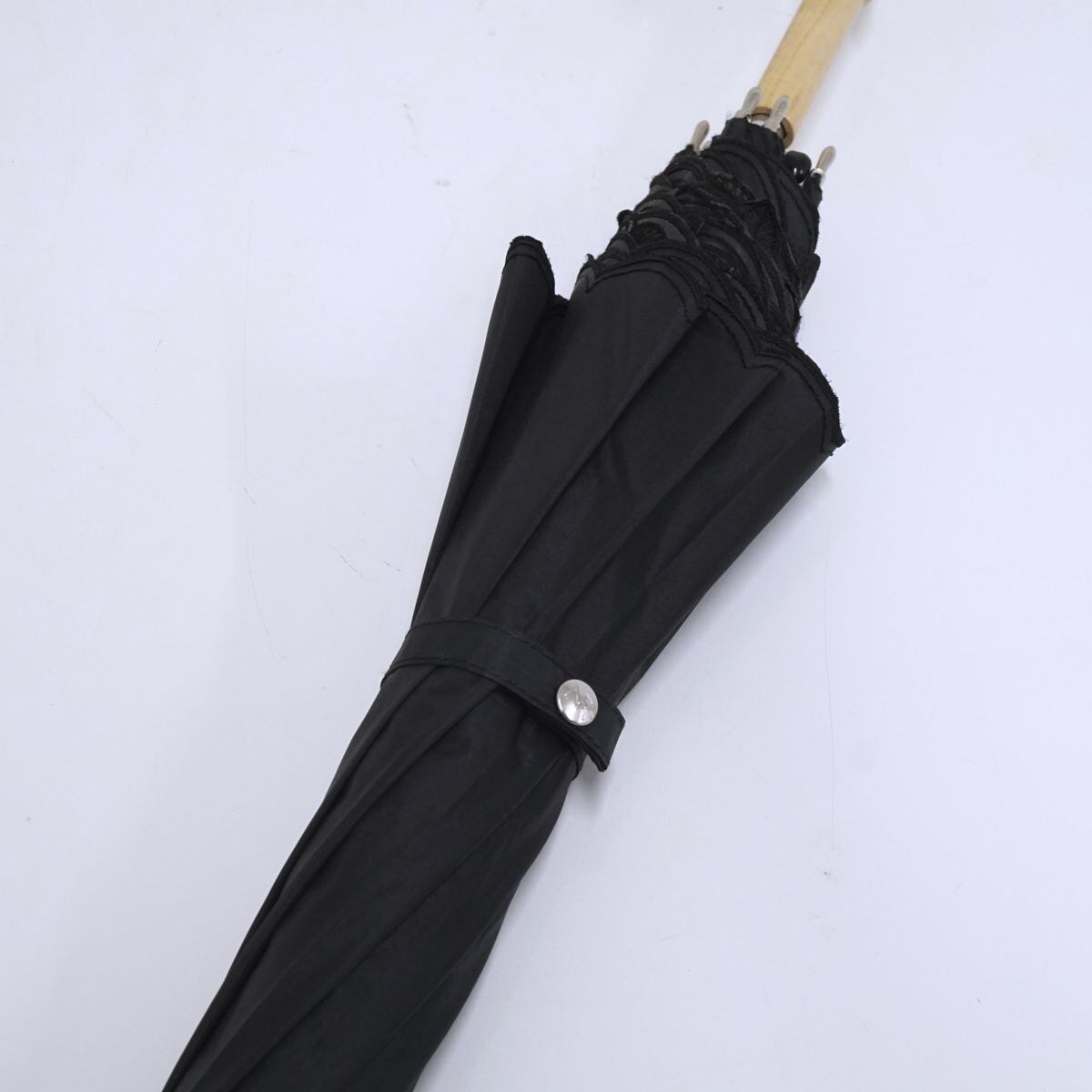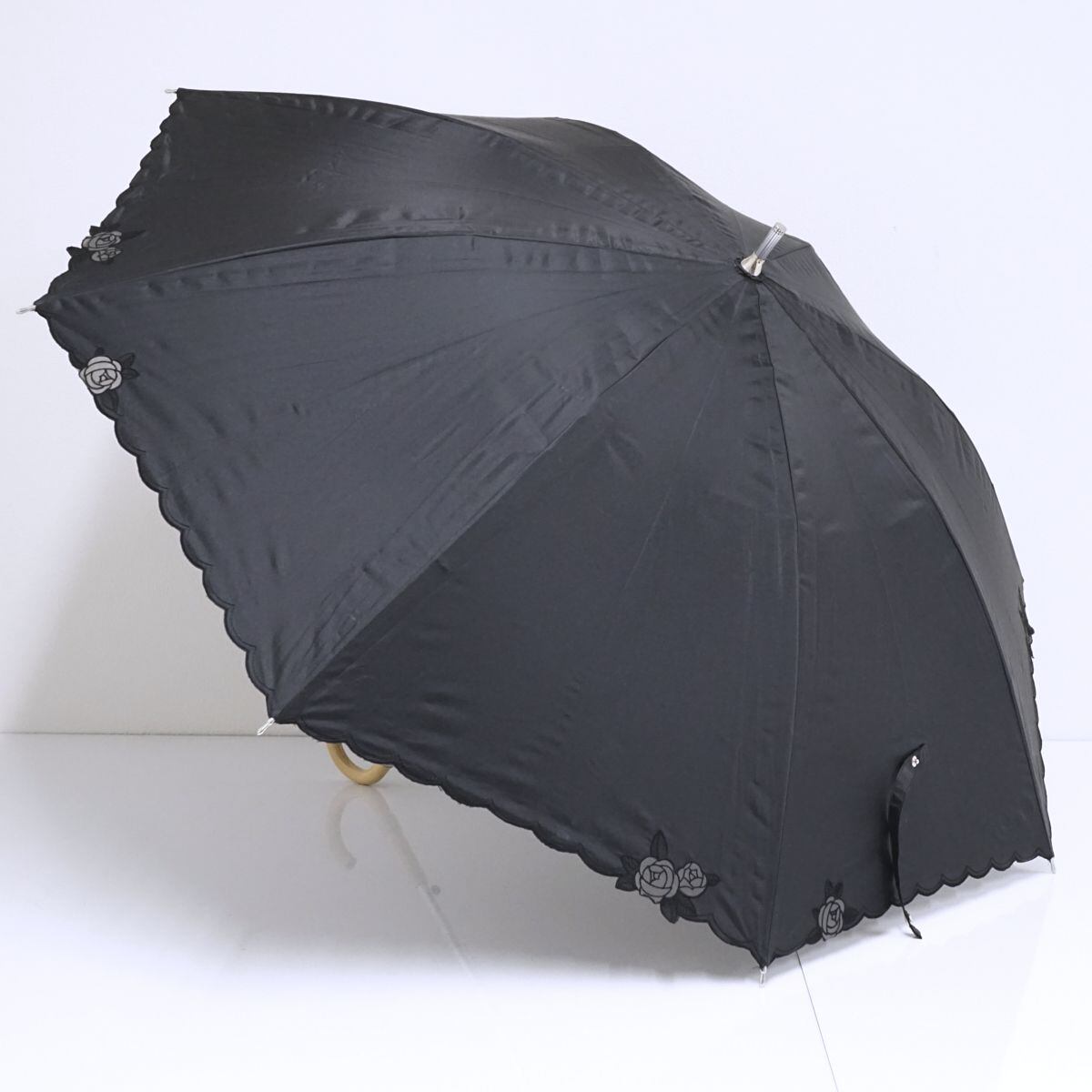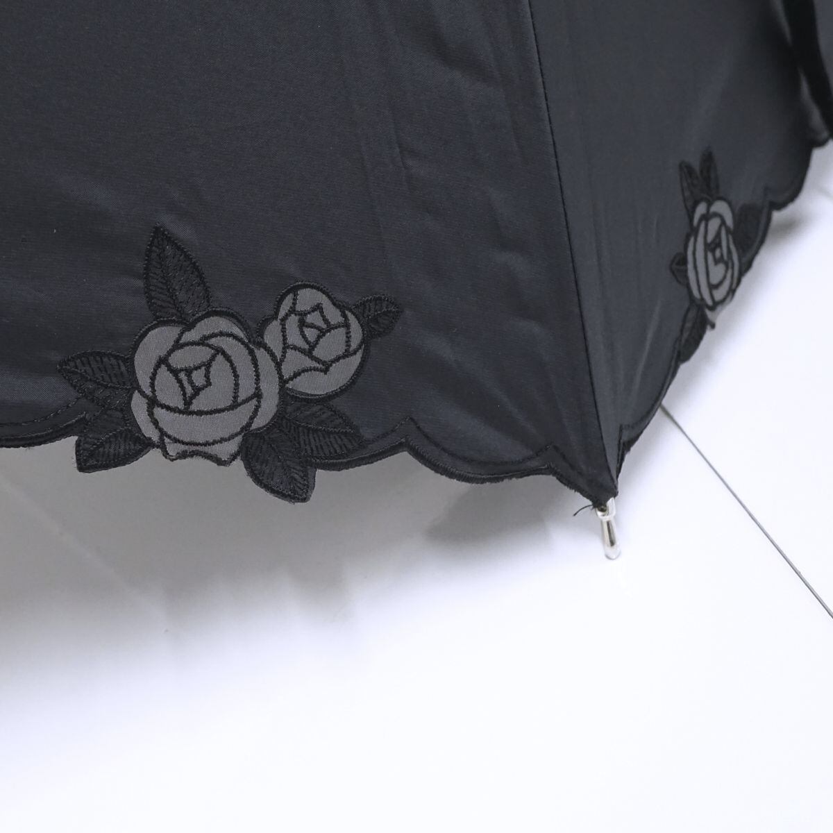 日傘 NINA RICCI ニナリッチ USED美品 晴雨兼用 ローズ ブラック オーガンジー ジャンプ UV 遮光 遮熱 55cm S0668