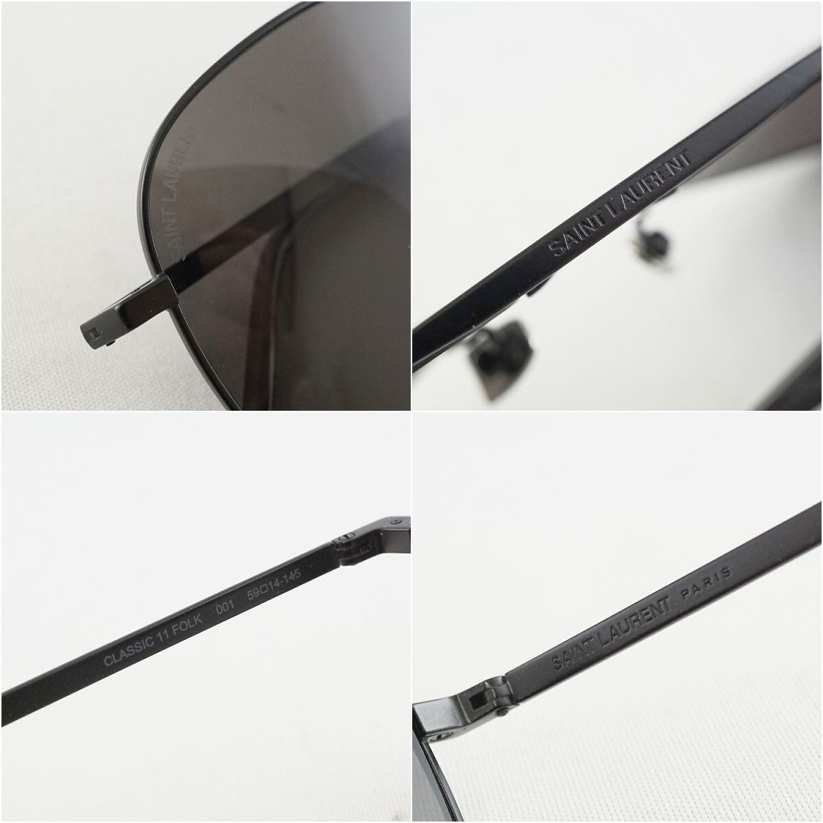 Saint Laurent CLASSIC 11 FOLK 001 サングラス USED美品 サンローラン アイウェア ブラック メタルノーズパッド ロゴ刻印 中古 X5336