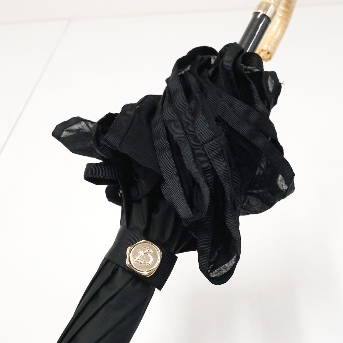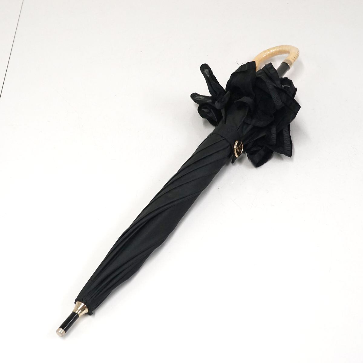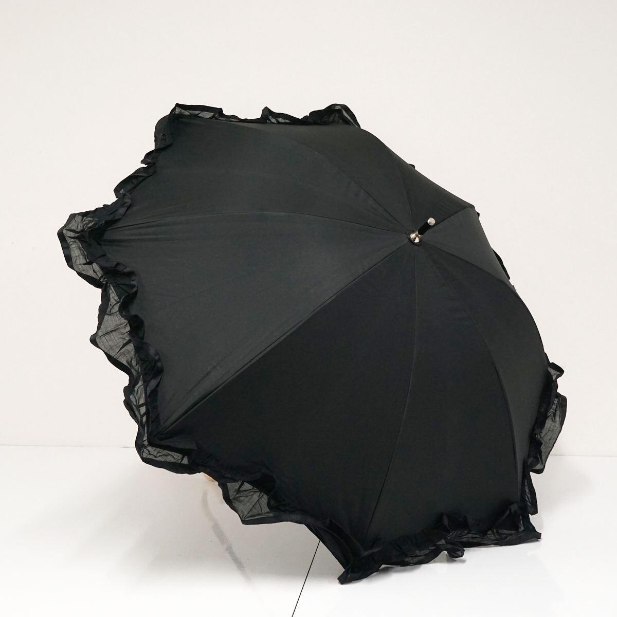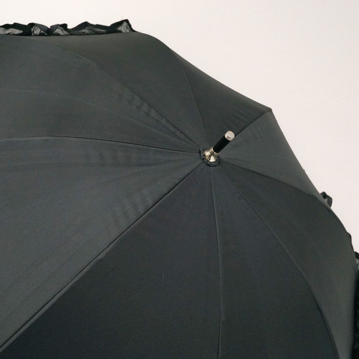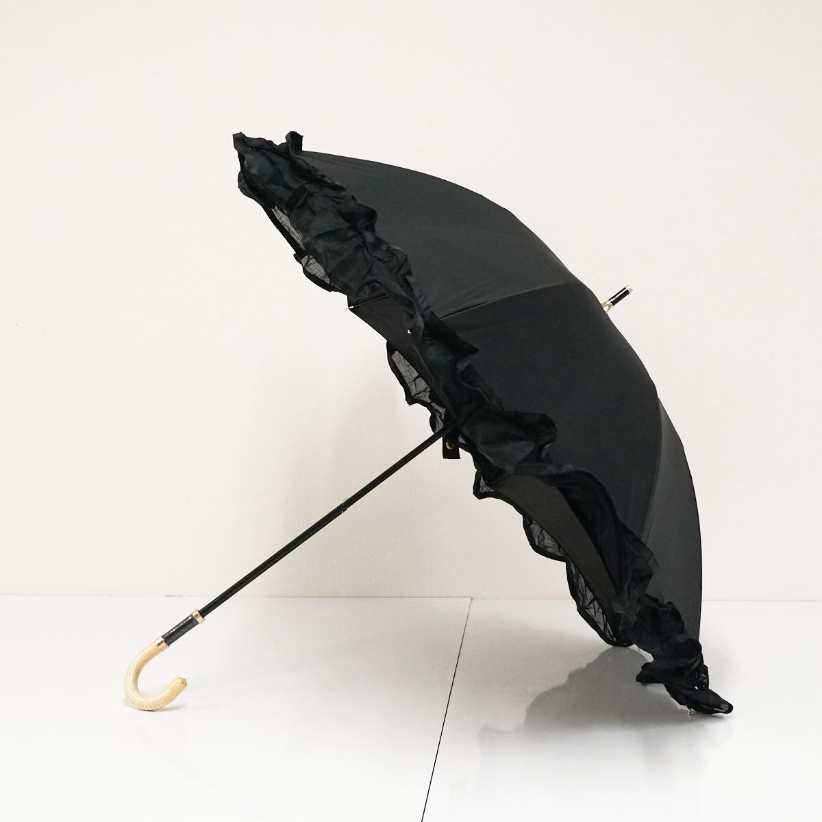 晴雨兼用日傘 Beaurance ビューランス USED品 東レ サマーシールドLi フリル ブラック グラス骨 遮光 遮熱 UV 日本製 軽量 50cm S0678