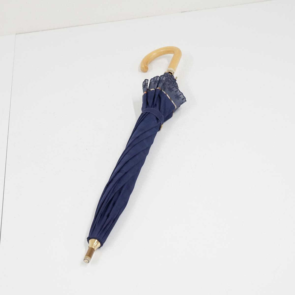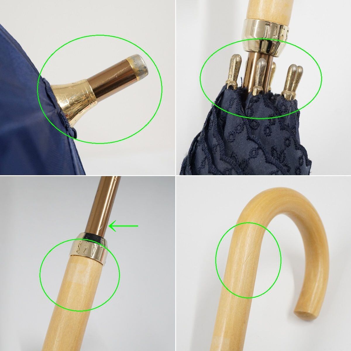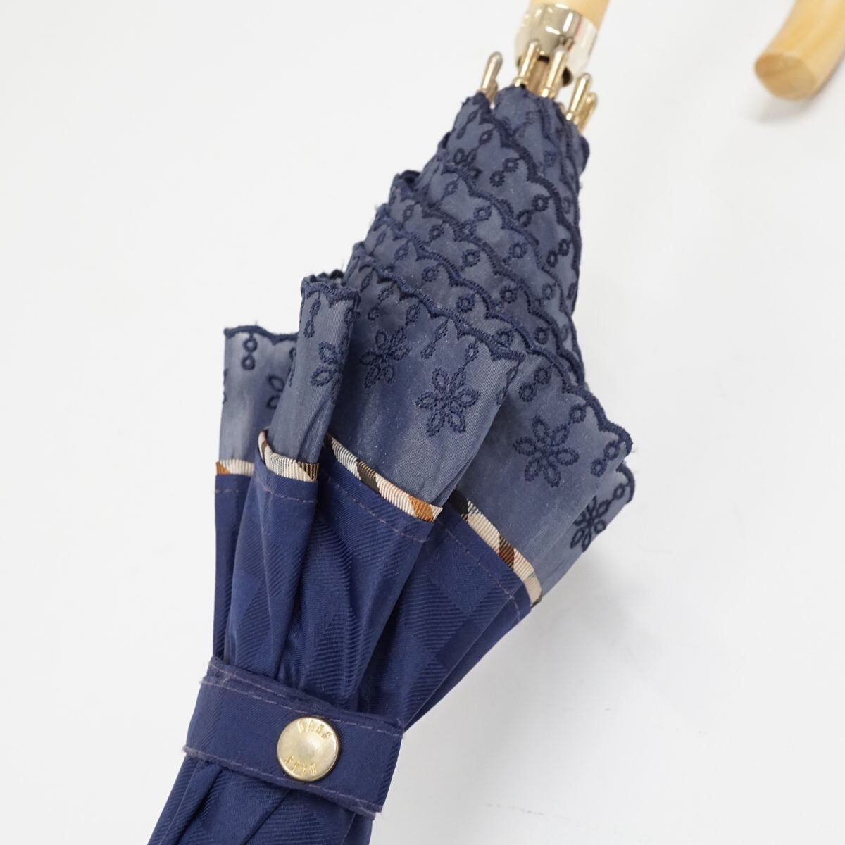 日傘 DAKS ダックス USED品 ジャガードチェック オーガンジー ネイビー 晴雨兼用 UV 遮光 47cm A0674