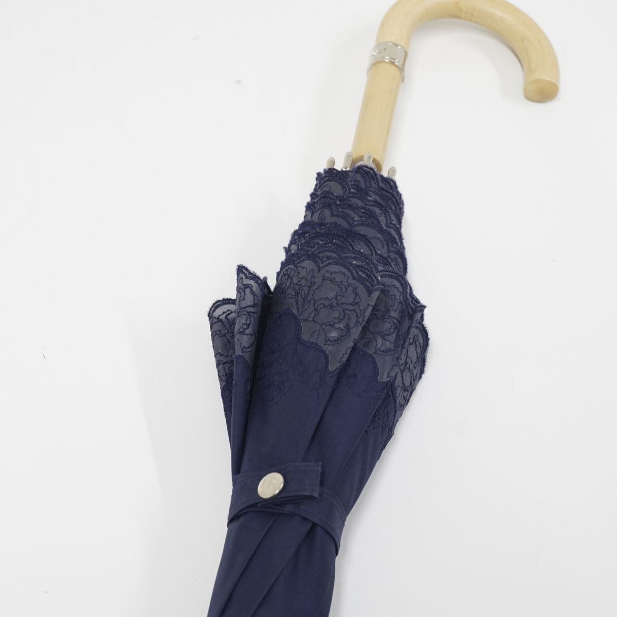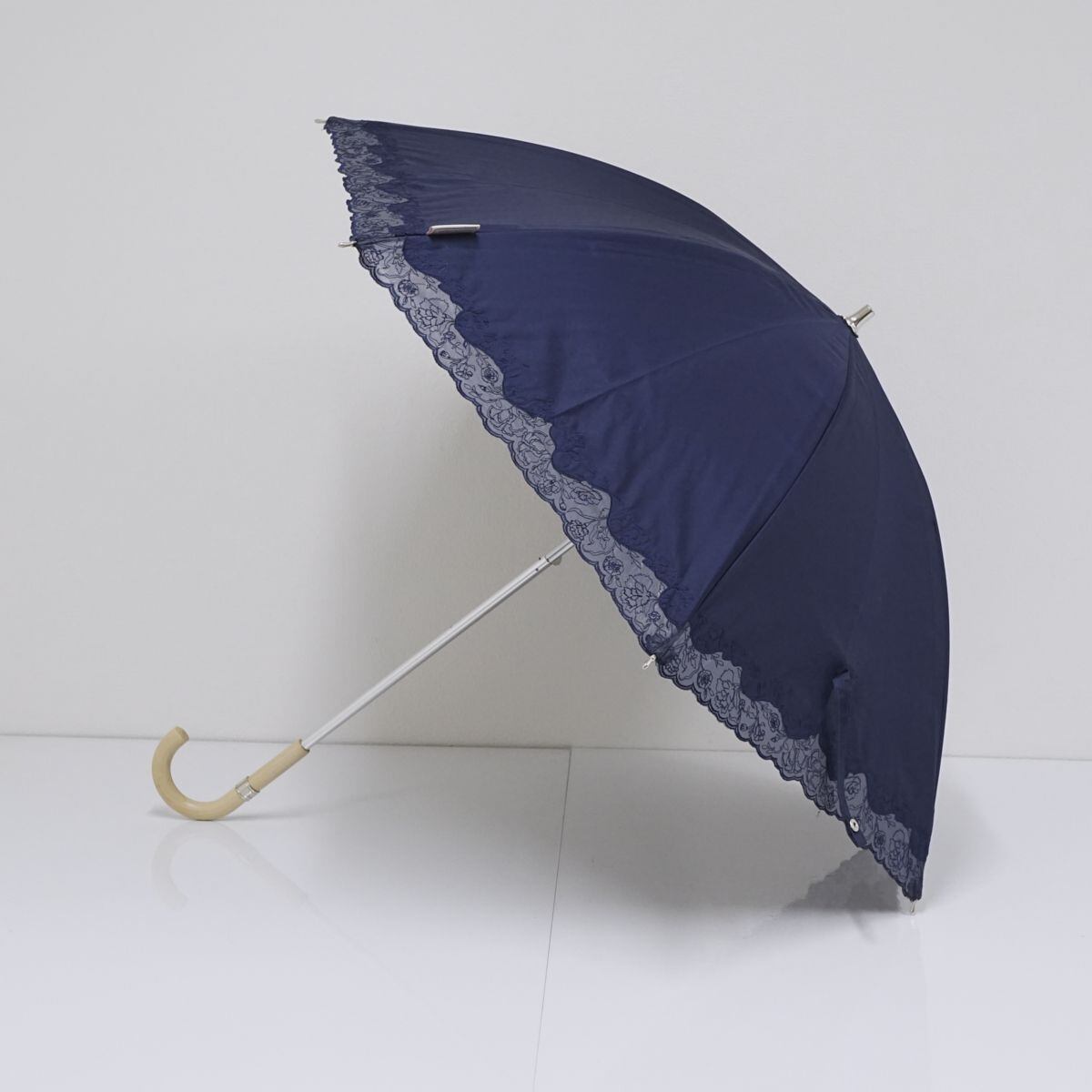 日傘 NINA RICCI ニナリッチ USED美品 サマーシールドLi 晴雨兼用 刺繍 ネイビー フラワー UV 遮光 遮熱 カーボン骨 50cm S0672