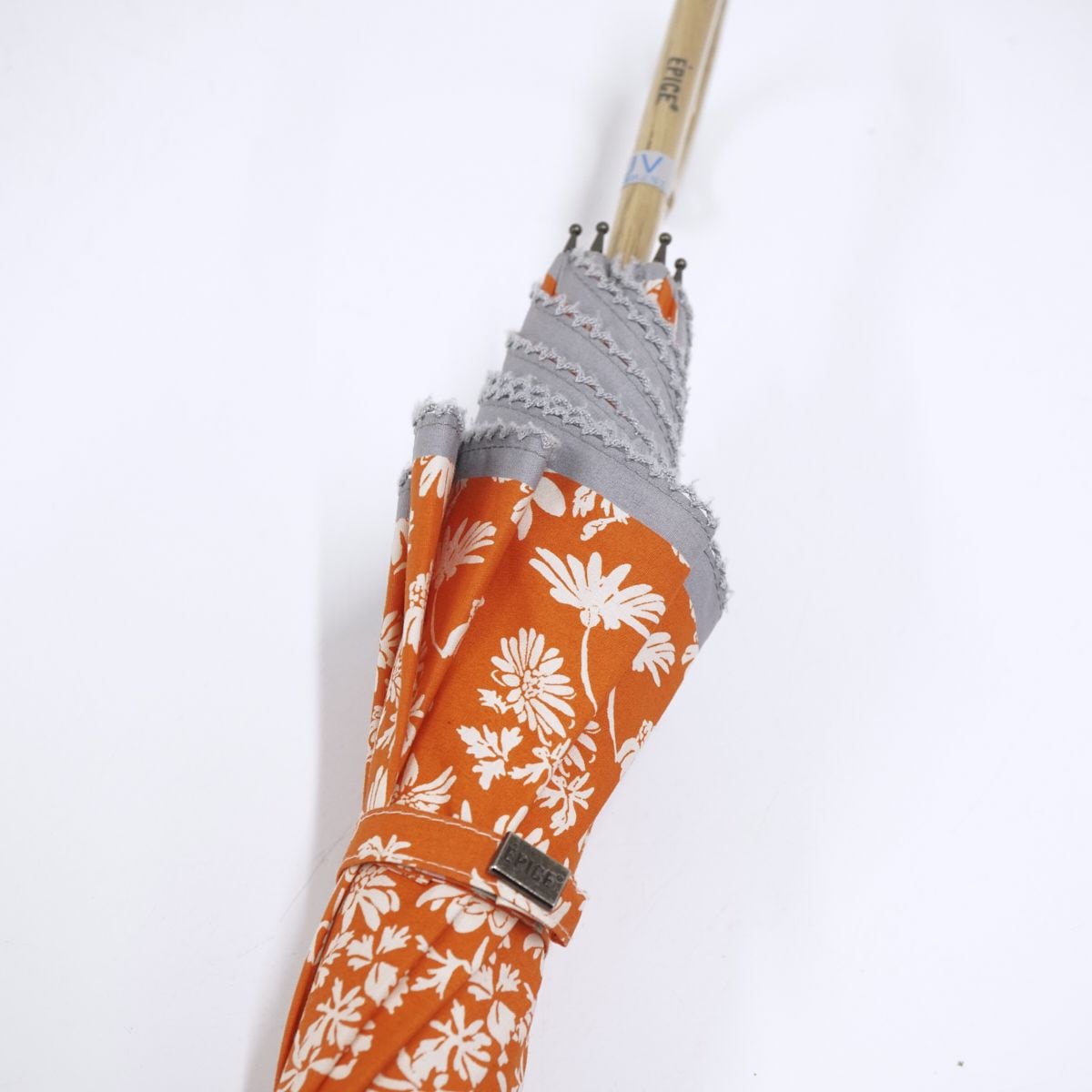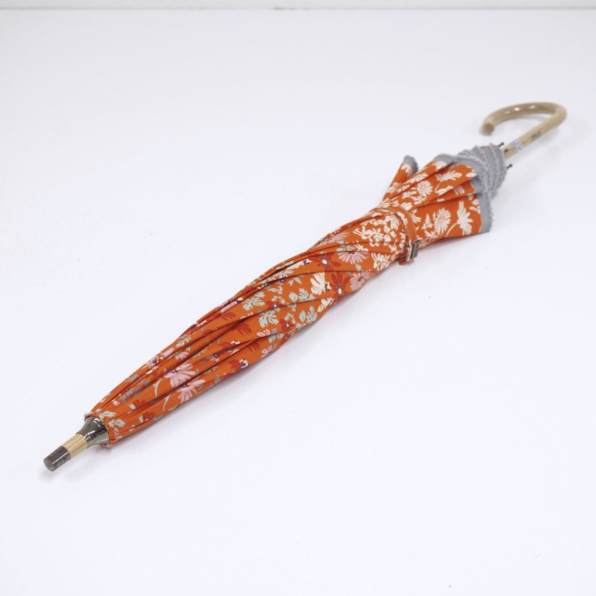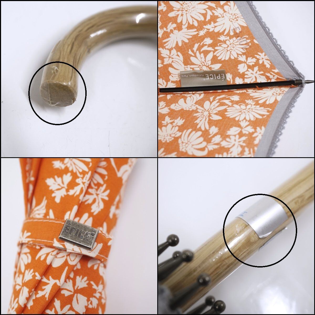 日傘 EPICE エピス 晴雨兼用日傘 USED美品 アートフラワー オレンジ 北欧 フラワー UV 遮光 50cm A0698
