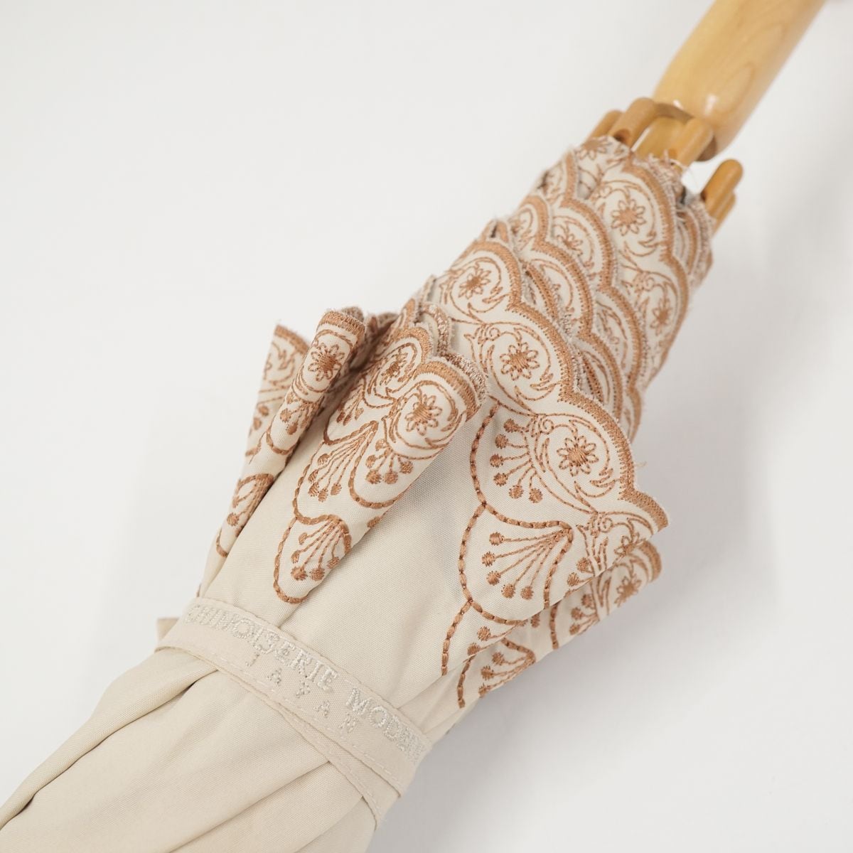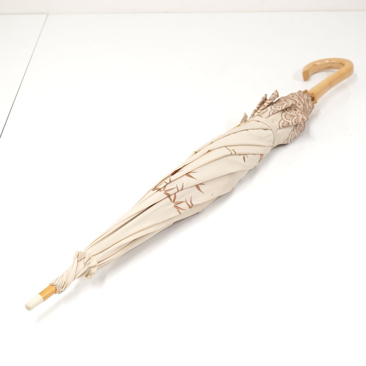 晴雨兼用日傘 chinoiserie modern シノワズリーモダン USED品 四君子 モカ 刺繍デザイン かわず張 女優日傘 遮光 遮熱 55cm S0691