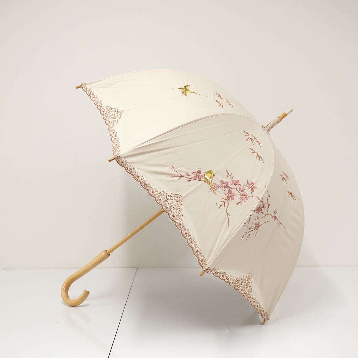 吉祥モチーフを描いた「四君子刺繍」エレガントな雰囲気なパラソルです。