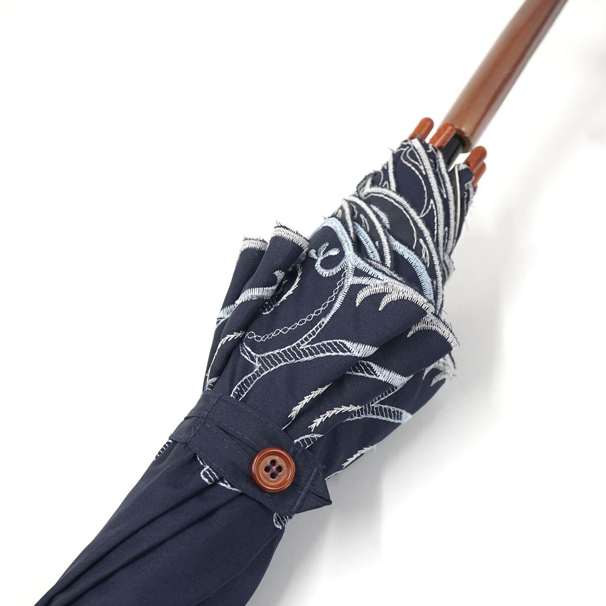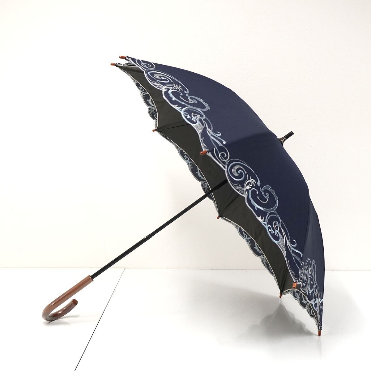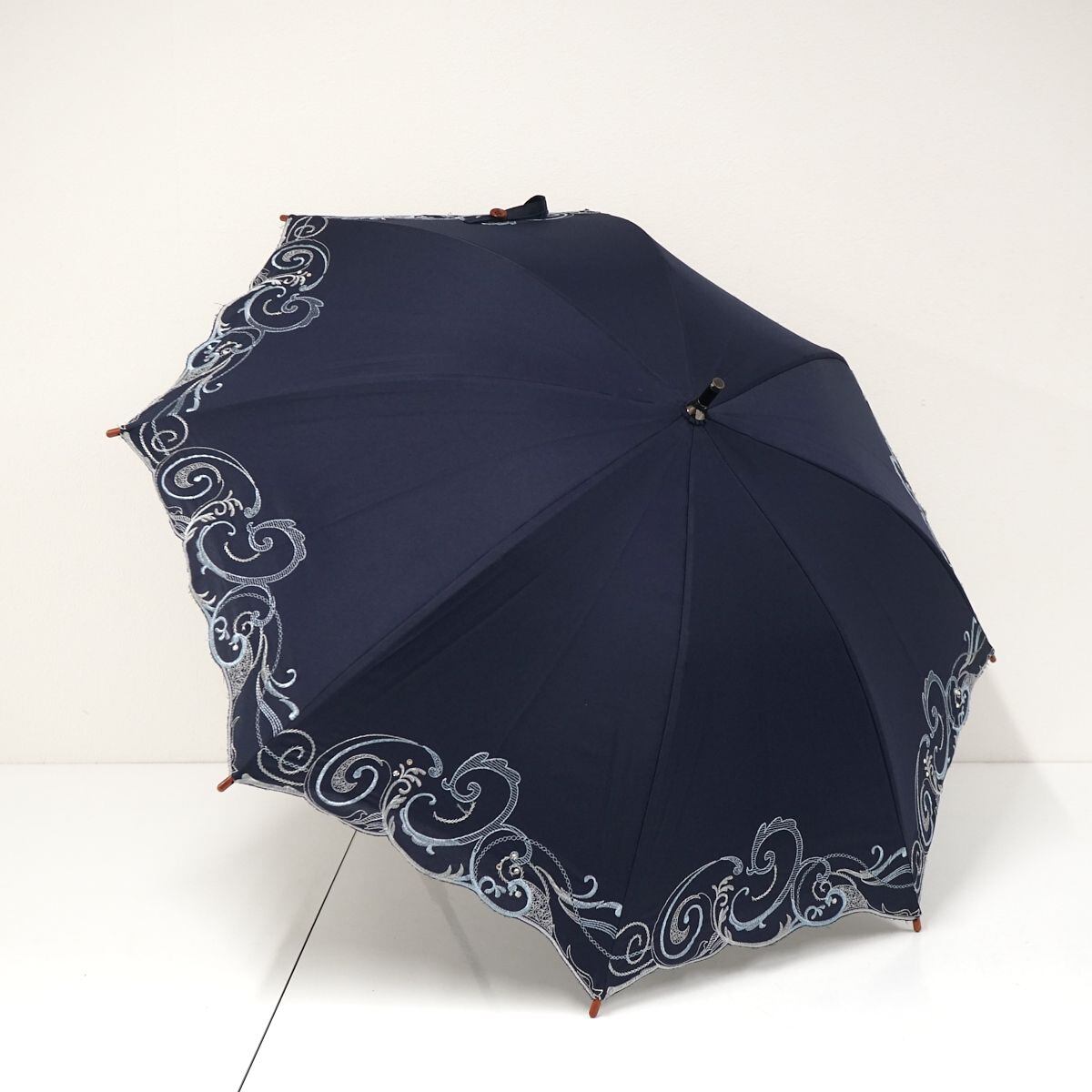 晴雨兼用日傘 chinoiserie modern シノワズリーモダン USED美品 プレシオサ&ペイズリー刺繍 かわず張 女優日傘 遮光 遮熱 48cm S0690