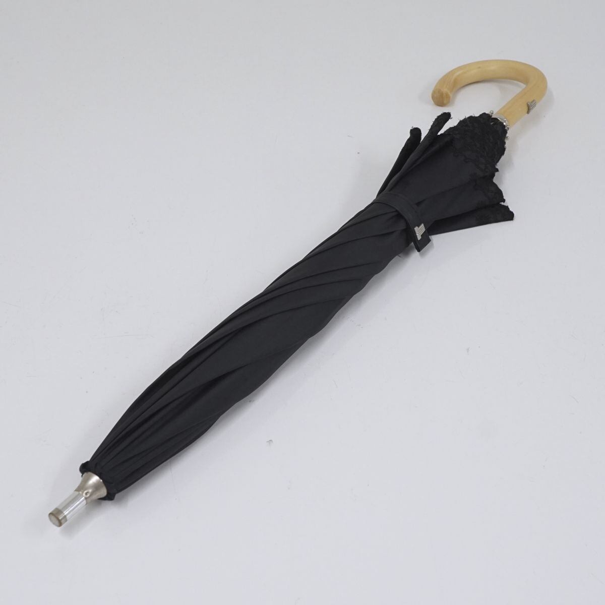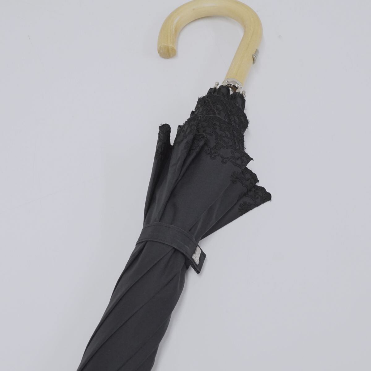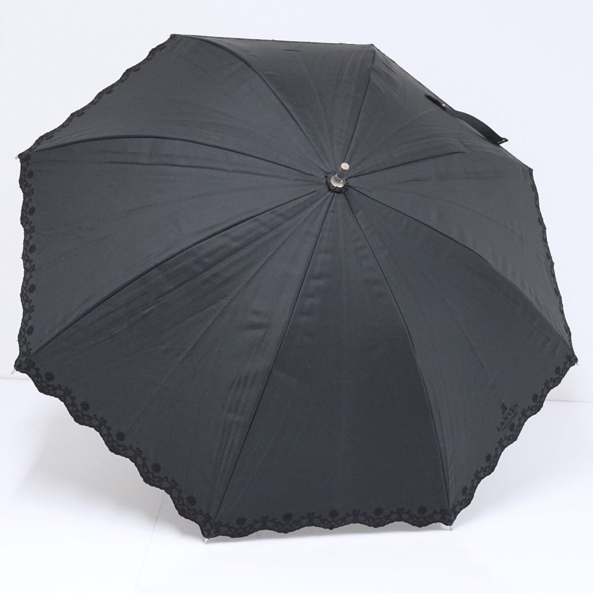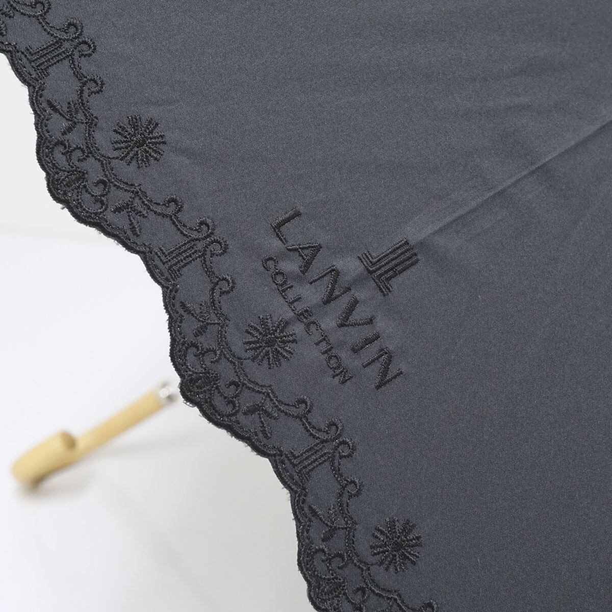 晴雨兼用日傘 LANVIN COLLECTION ランバンコレクション USED美品 フラワー ロゴ スカラップ刺繍 ブラック 木製手元 UV 47cm A0710