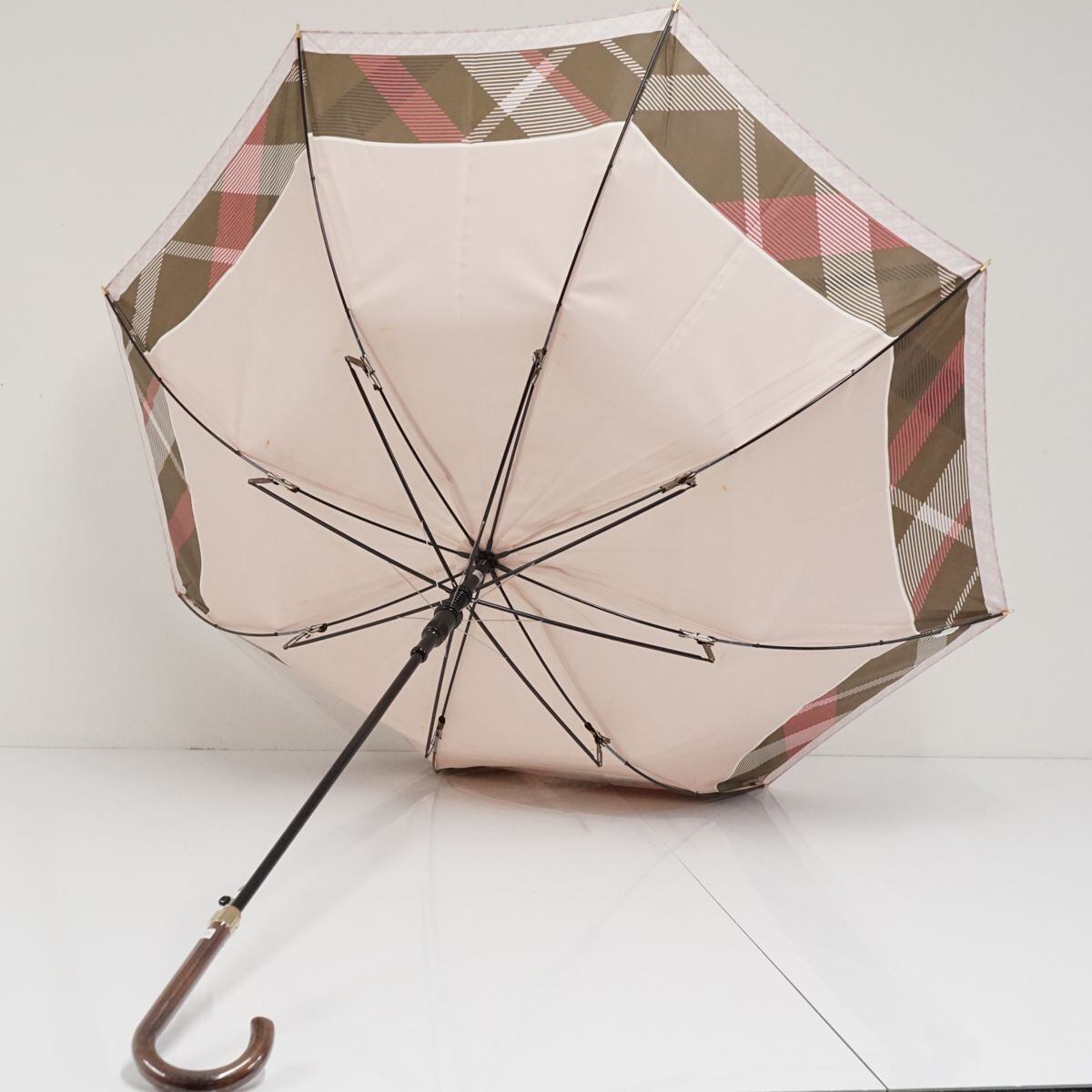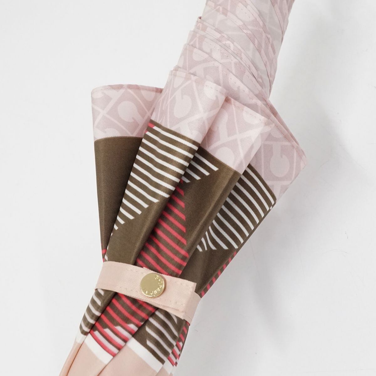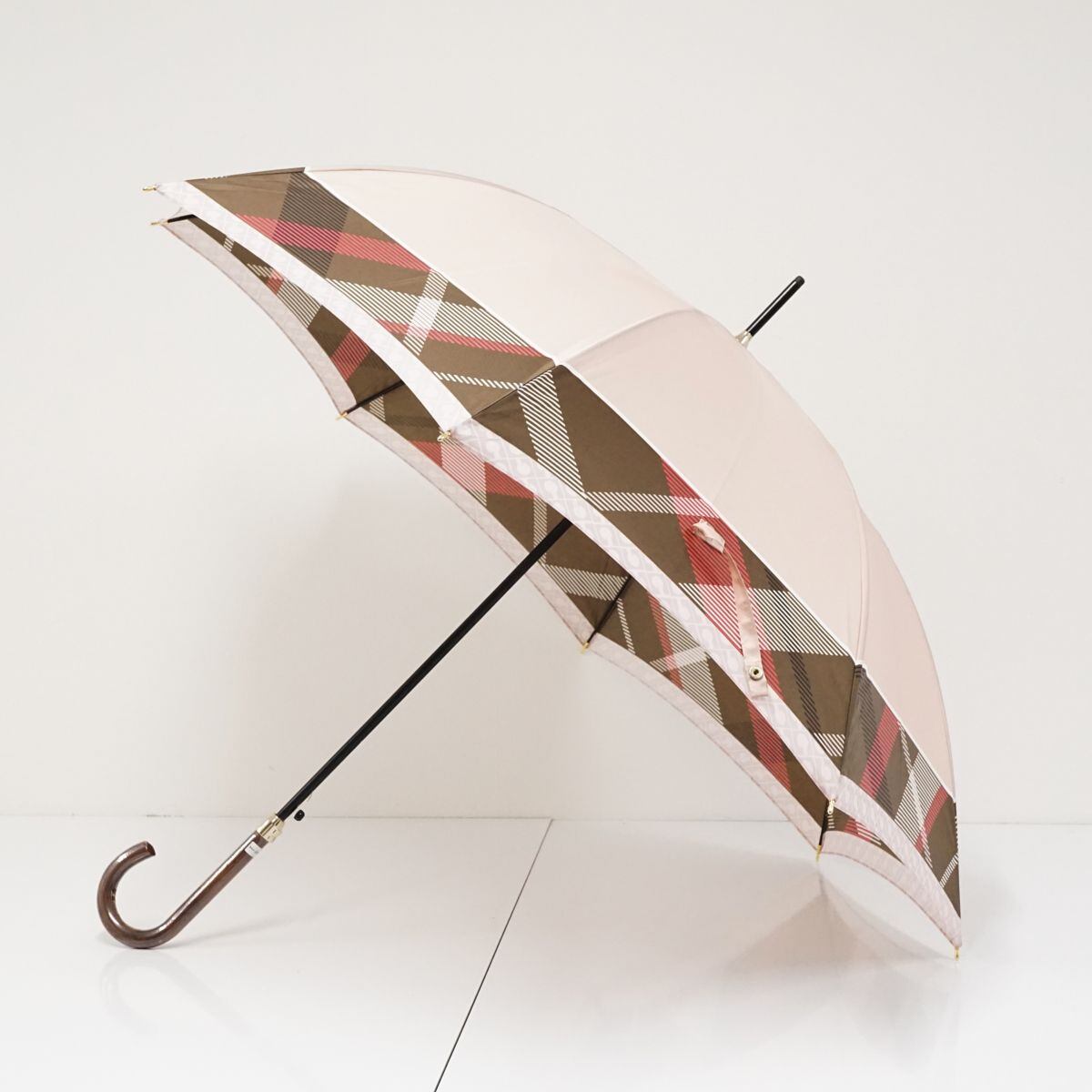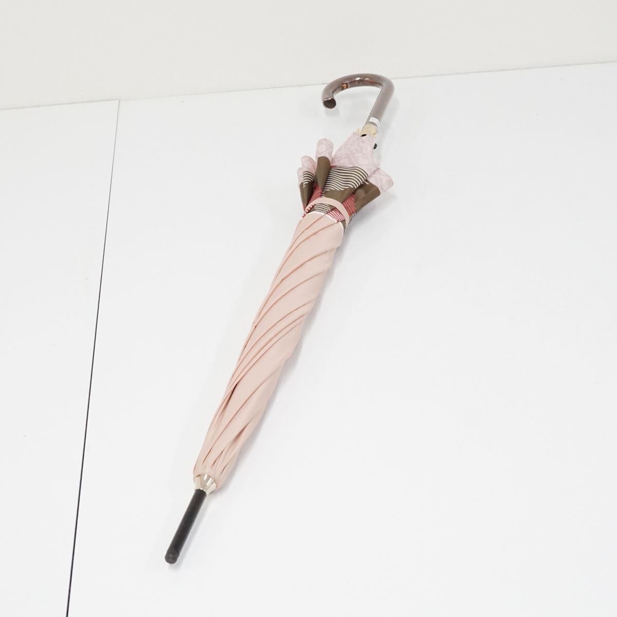 傘 GHERARDINI ゲラルディーニ USED品 日本製 耐風 チェック×モノグラム ピンク ジャンプ 日本製 60cm KR A0707