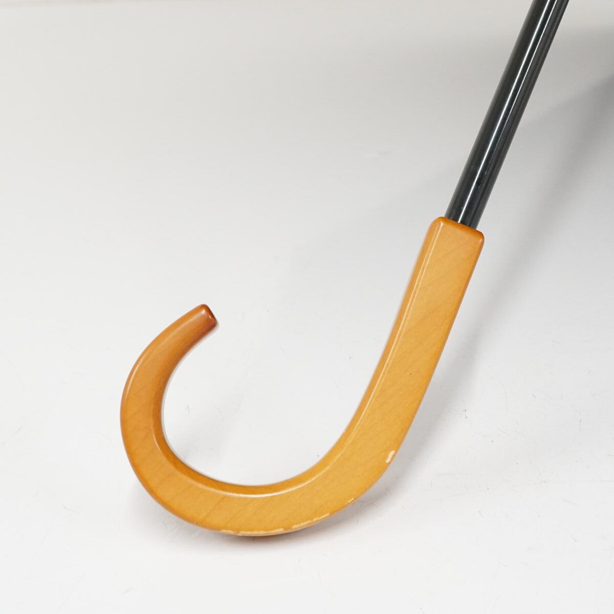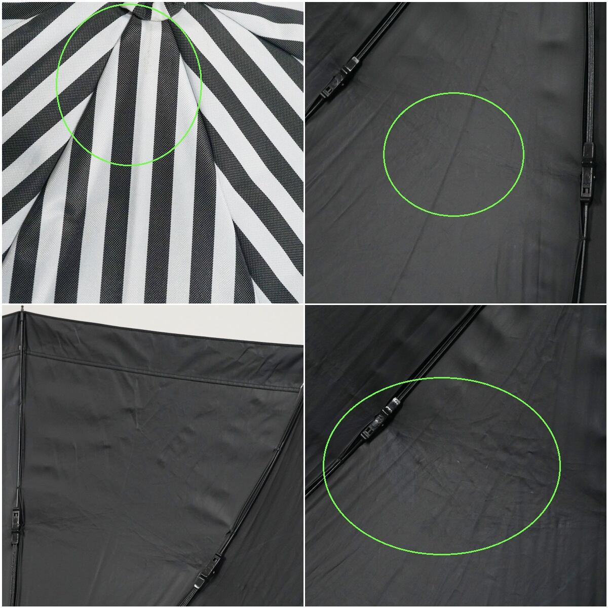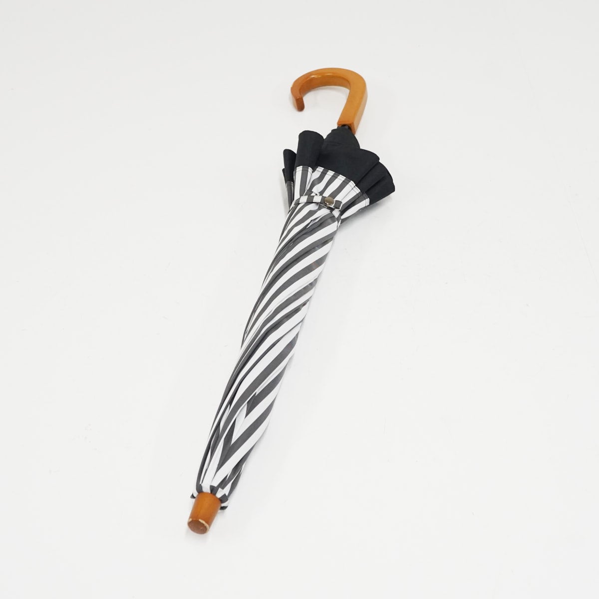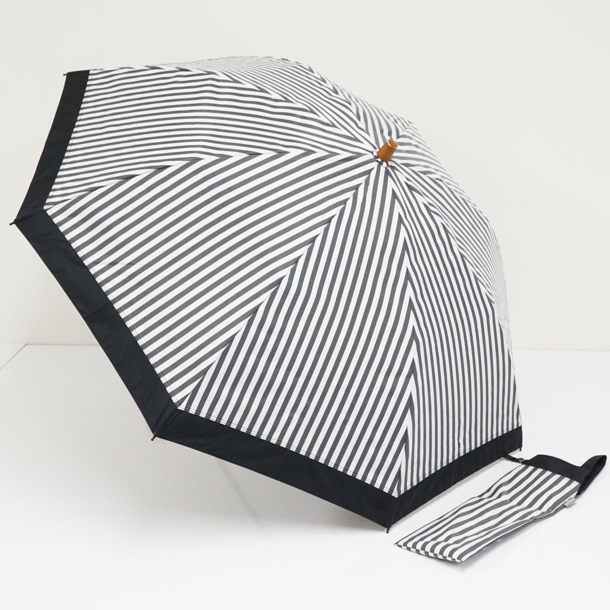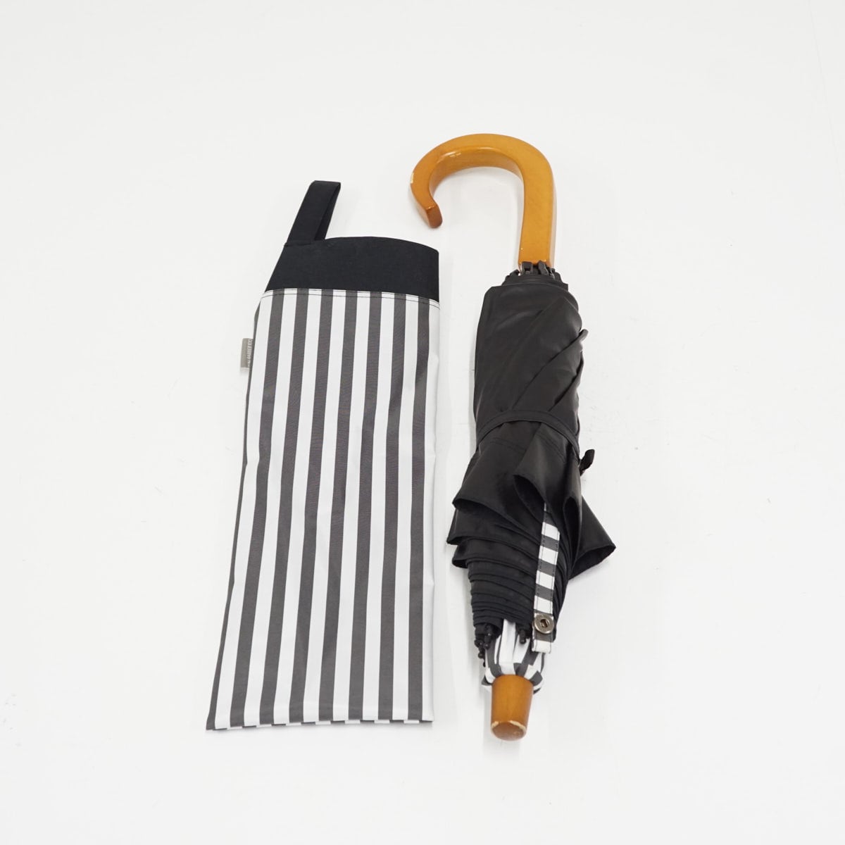 サンバリア100 完全遮光折りたたみ日傘 USED美品 2段折 コンビ 白黒ストライプ 天然木手元 UVカット 遮熱 折日傘 50cm FS9488