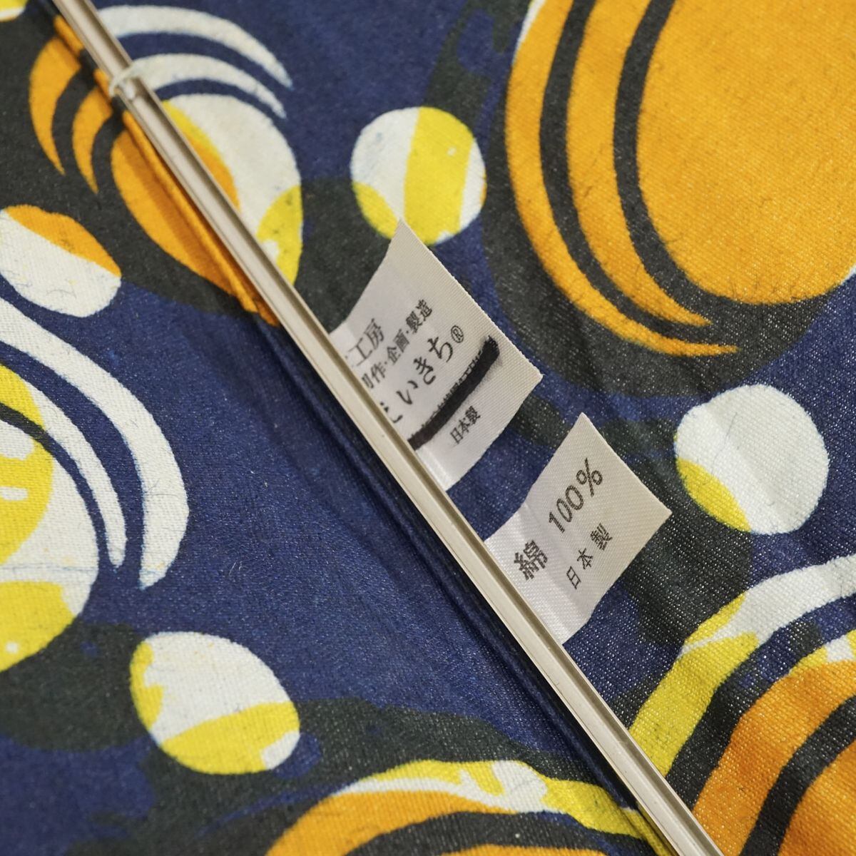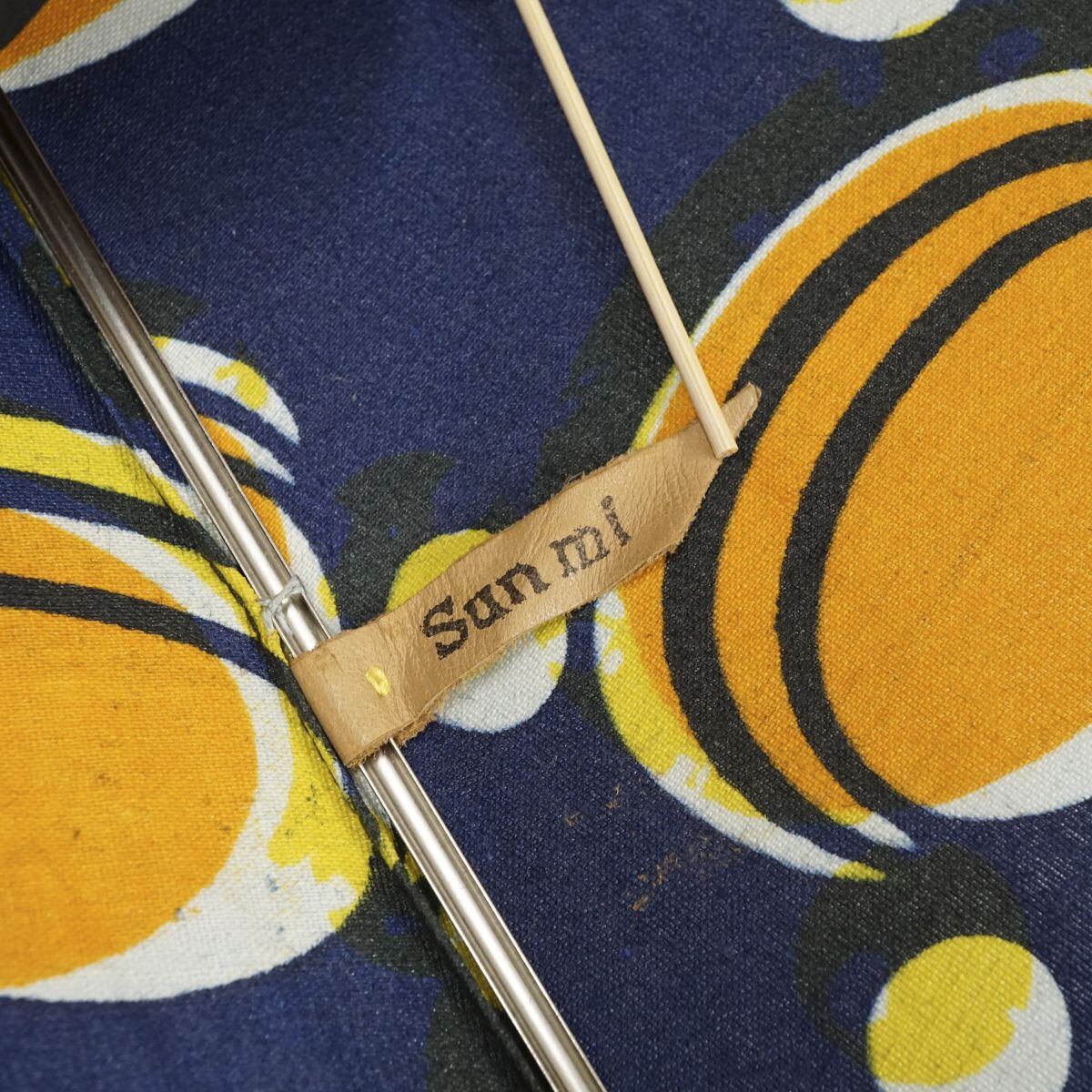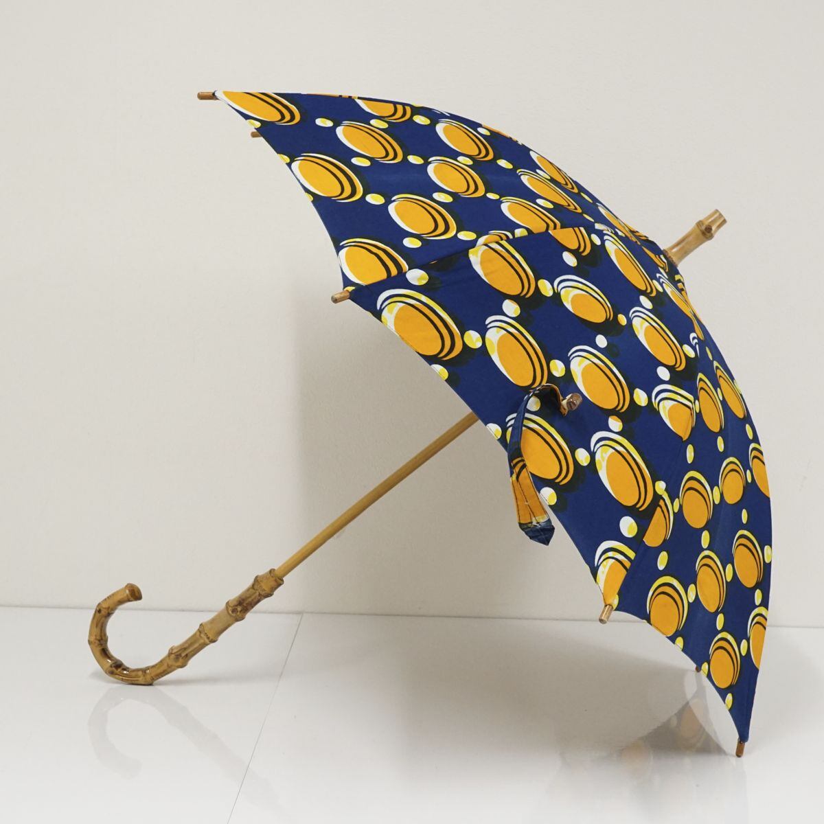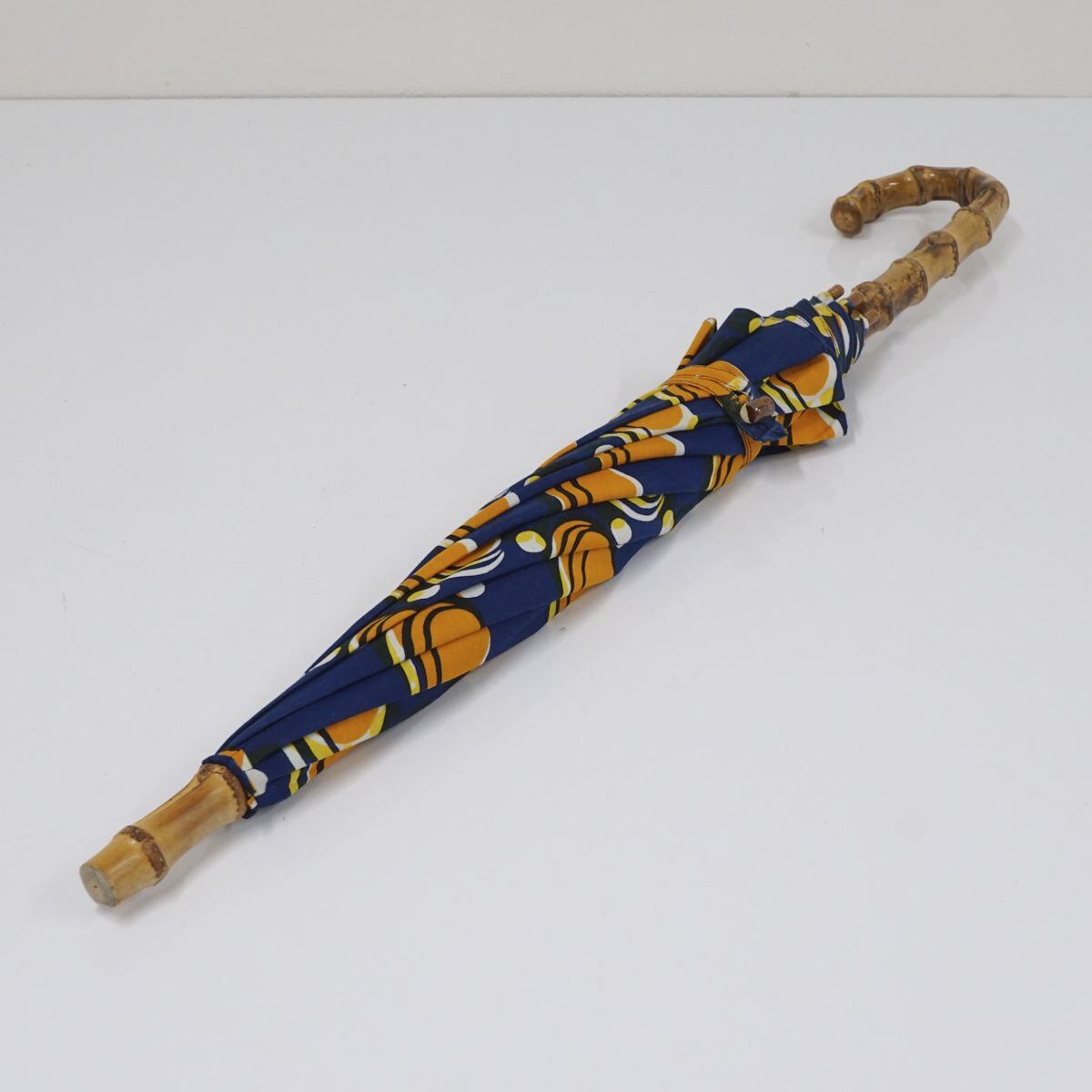 日傘 sun mi サンミ 晴雨兼用日傘 えいきち USED美品 アフリカンバティック 個性的 竹手元 ネイビー オレンジ 日本製 50cm S0727