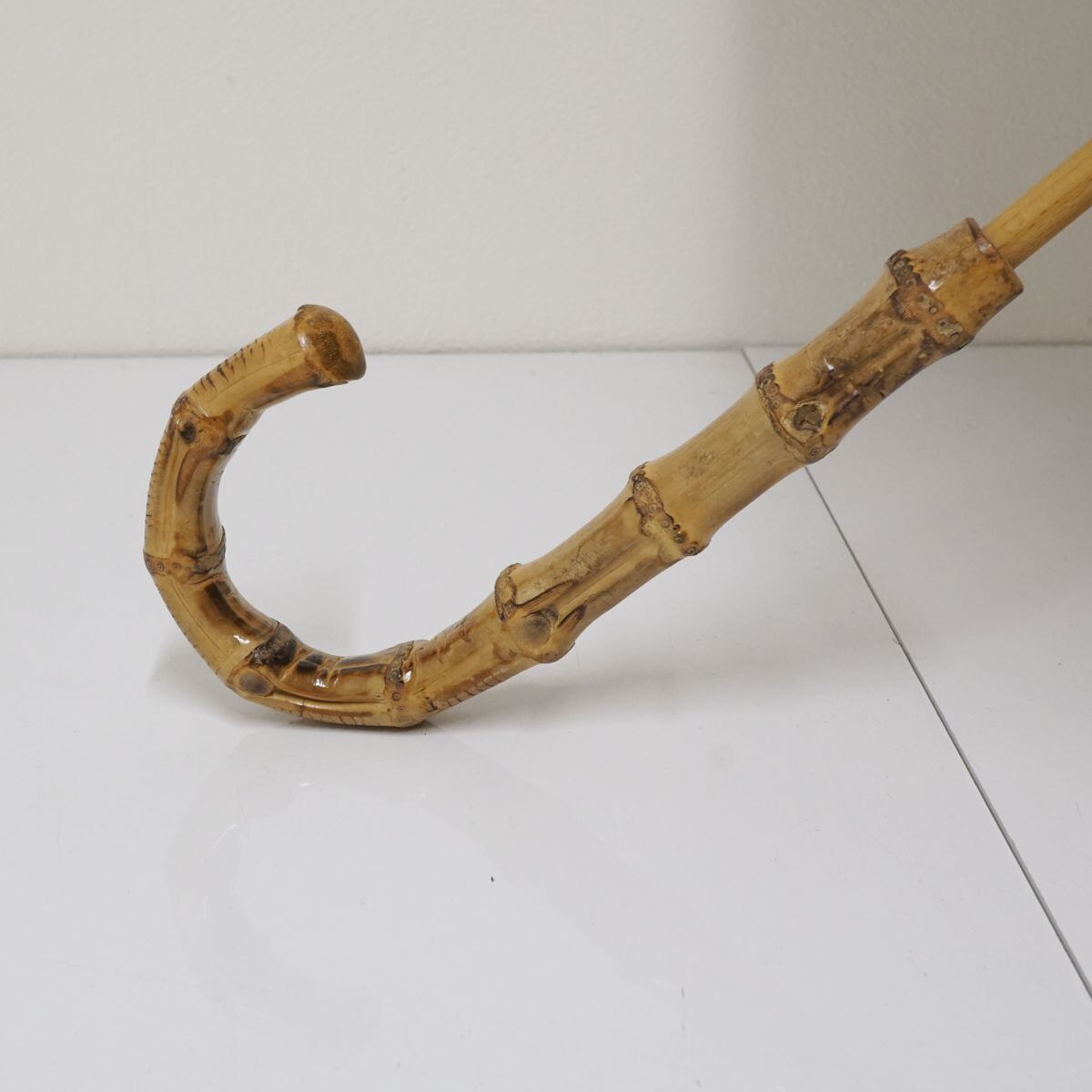 ネイビーとオレンジのカラーが鮮やかで美しいアフリカンバティックと、寒竹の手元と石突との対比が