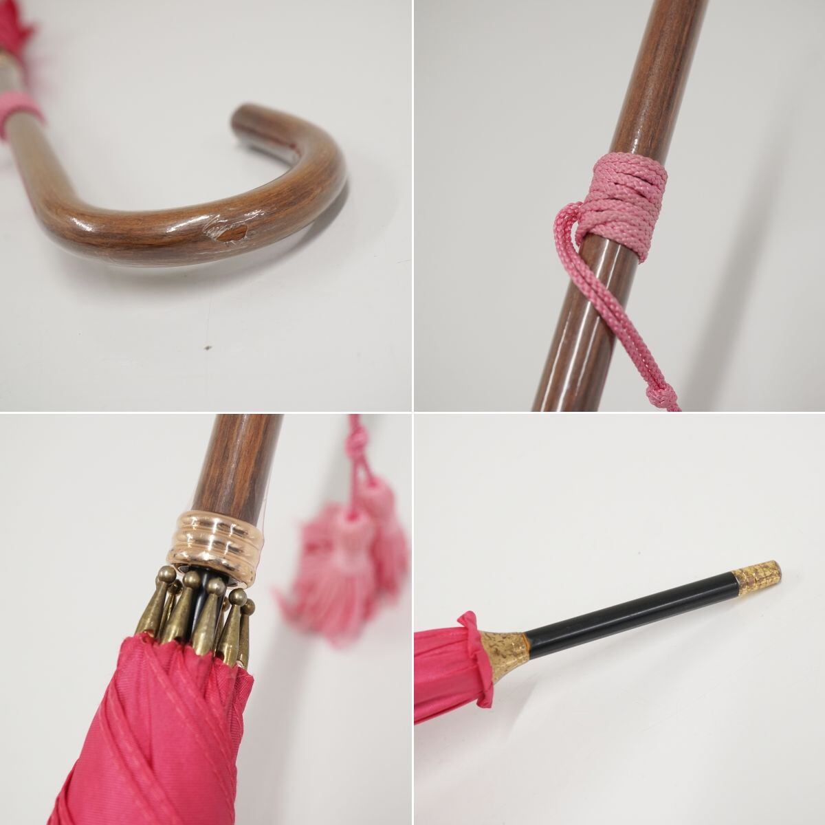 傘 WAKAO ワカオ USED品 シンプル ピンク 無地 高級 日本製 富士絹 55cm S0739