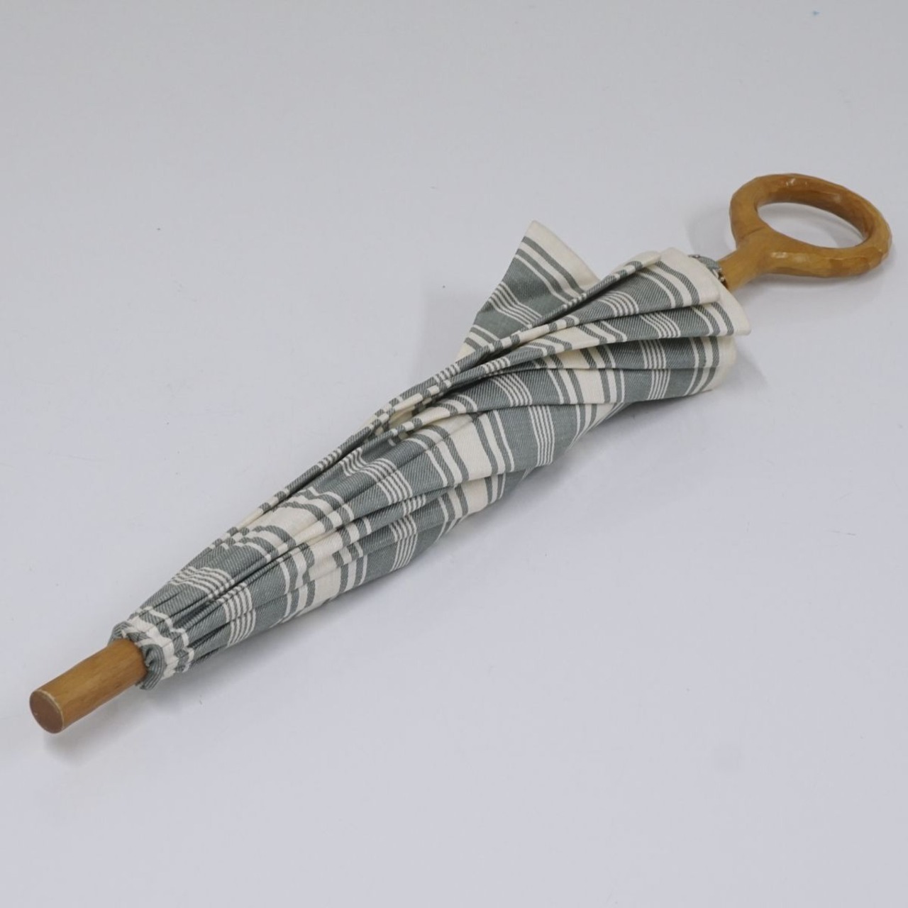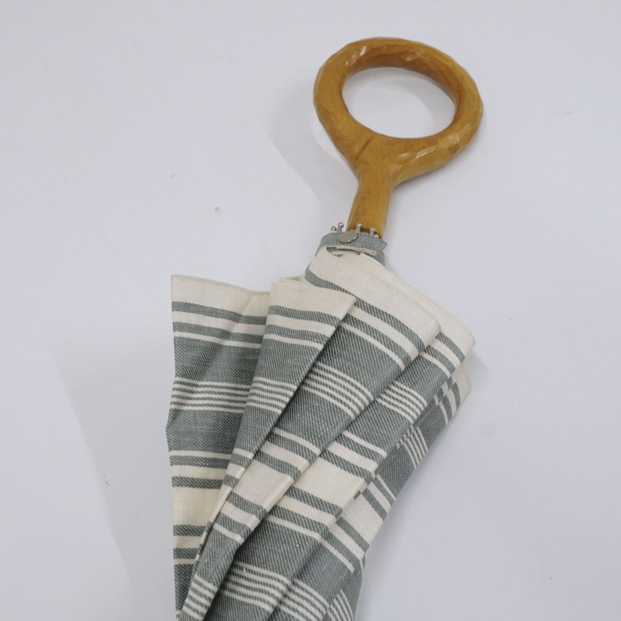 個性的な天然木の丸手元は、傘にアクセントを効かせています。