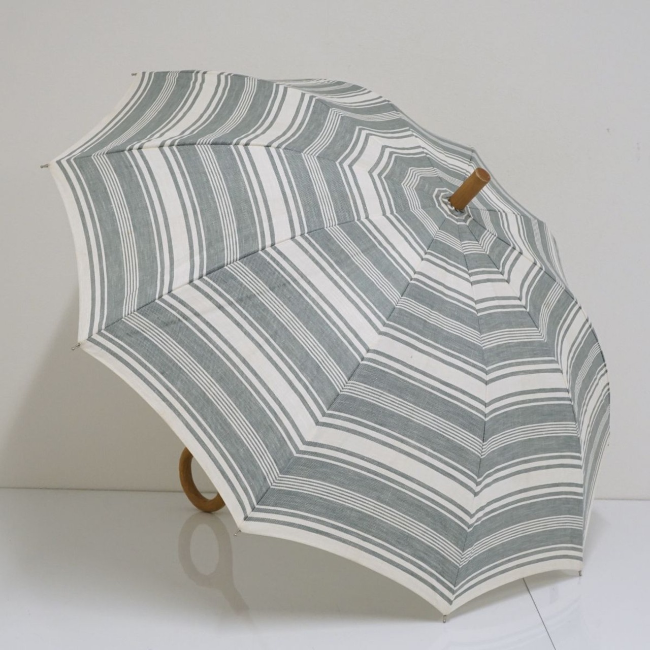 ナチュラルな生地にボーダーのデザインがシンプルながらもおしゃれな日傘です。