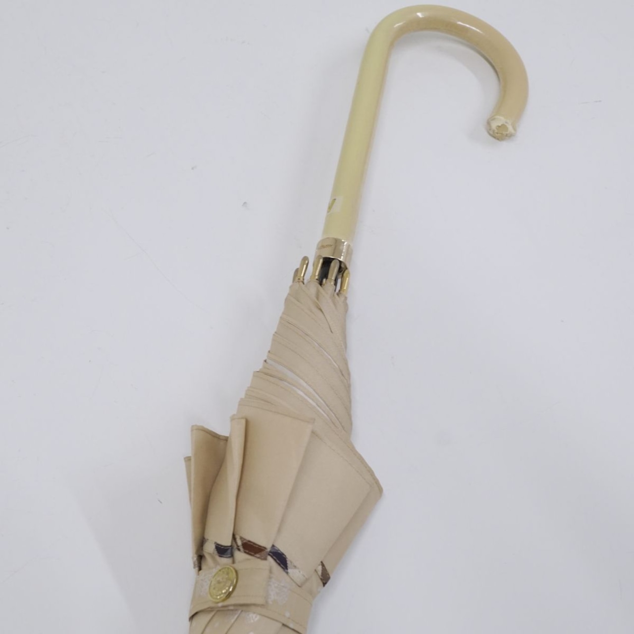 傘 Aquascutum アクアスキュータム USED美品 晴雨兼用 UV ロゴ ベージュ チェック 60cm A0746