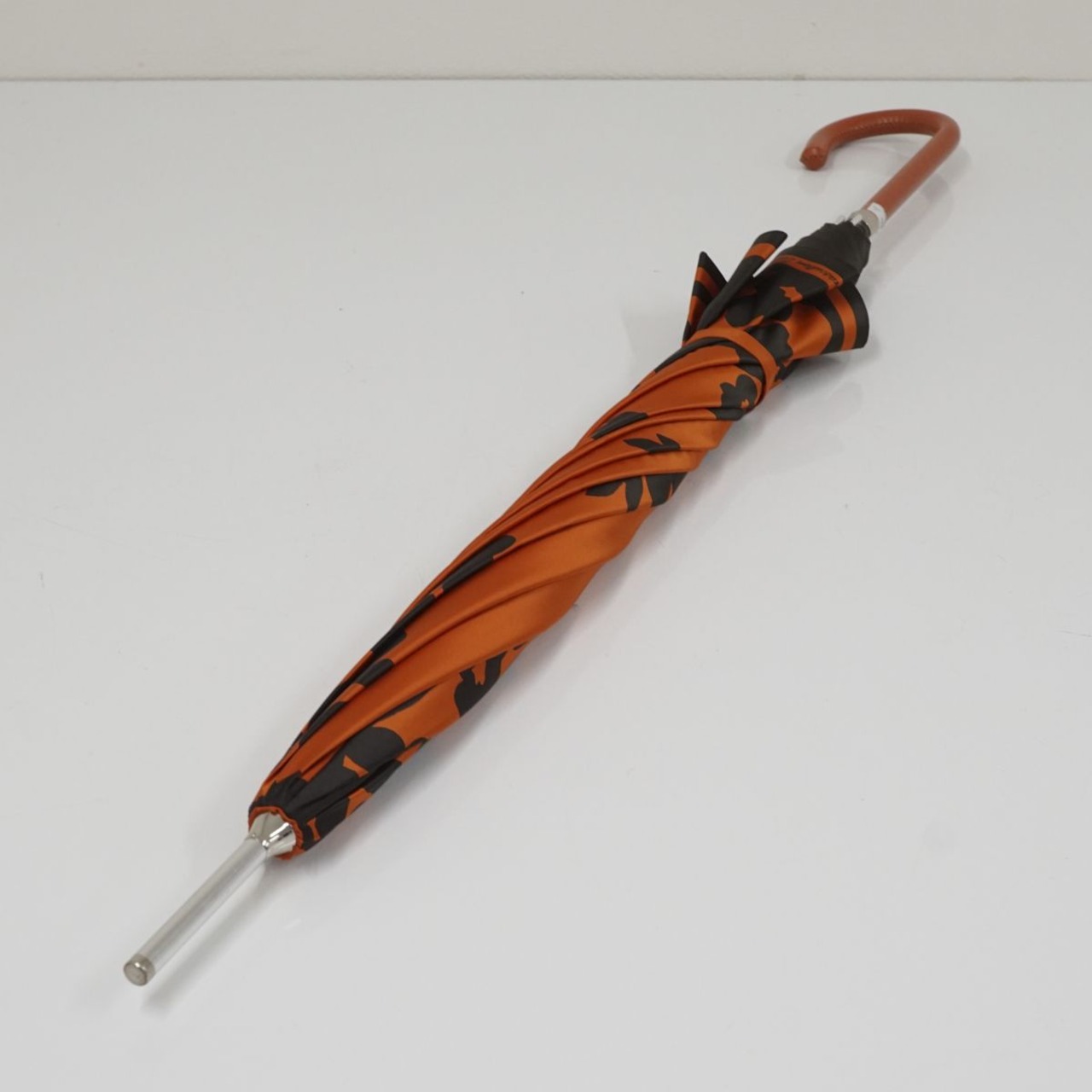 傘 Aquascutum アクアスキュータム USED美品 シルエットフラワー オレンジ グラスファイバーフレーム 60cm S0744