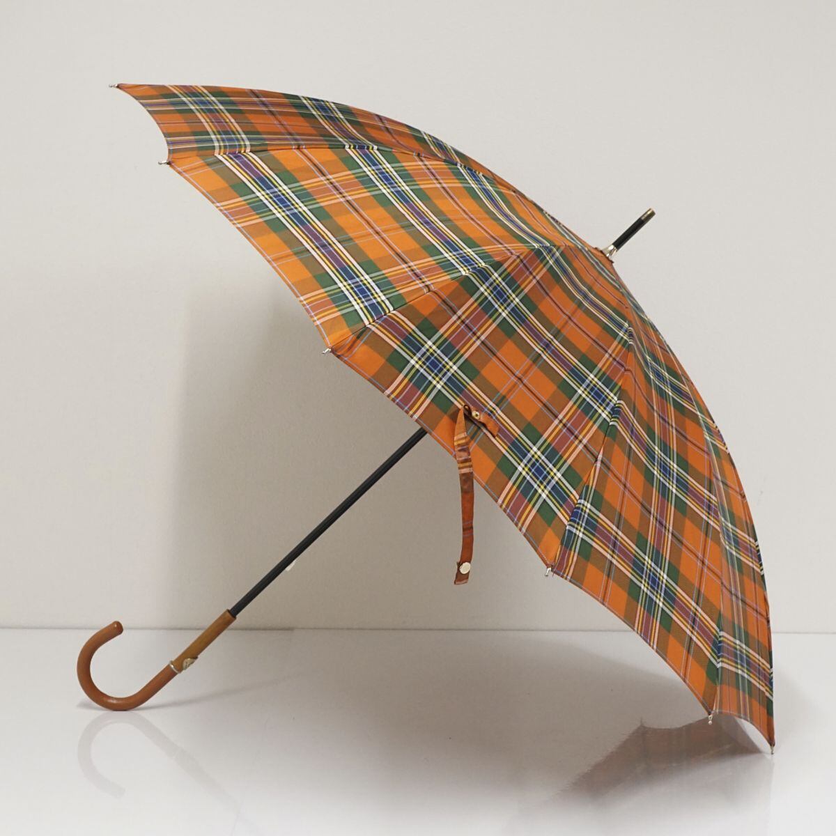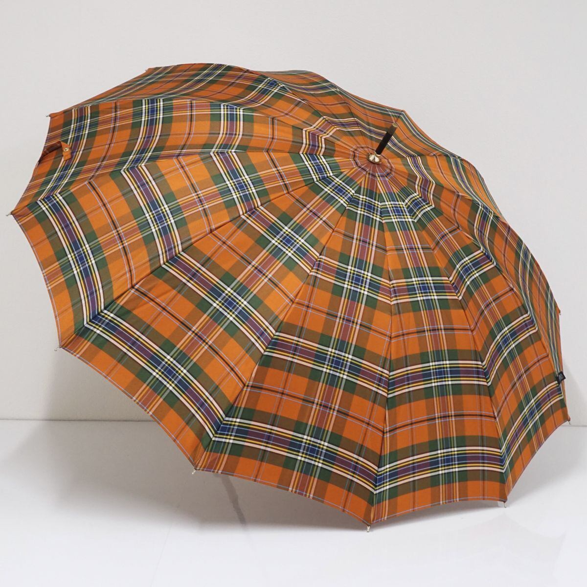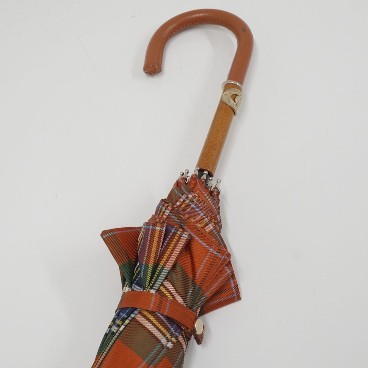 傘 Aquascutum アクアスキュータム USED美品 タータンチェック オレンジ 12本骨 55cm S0755