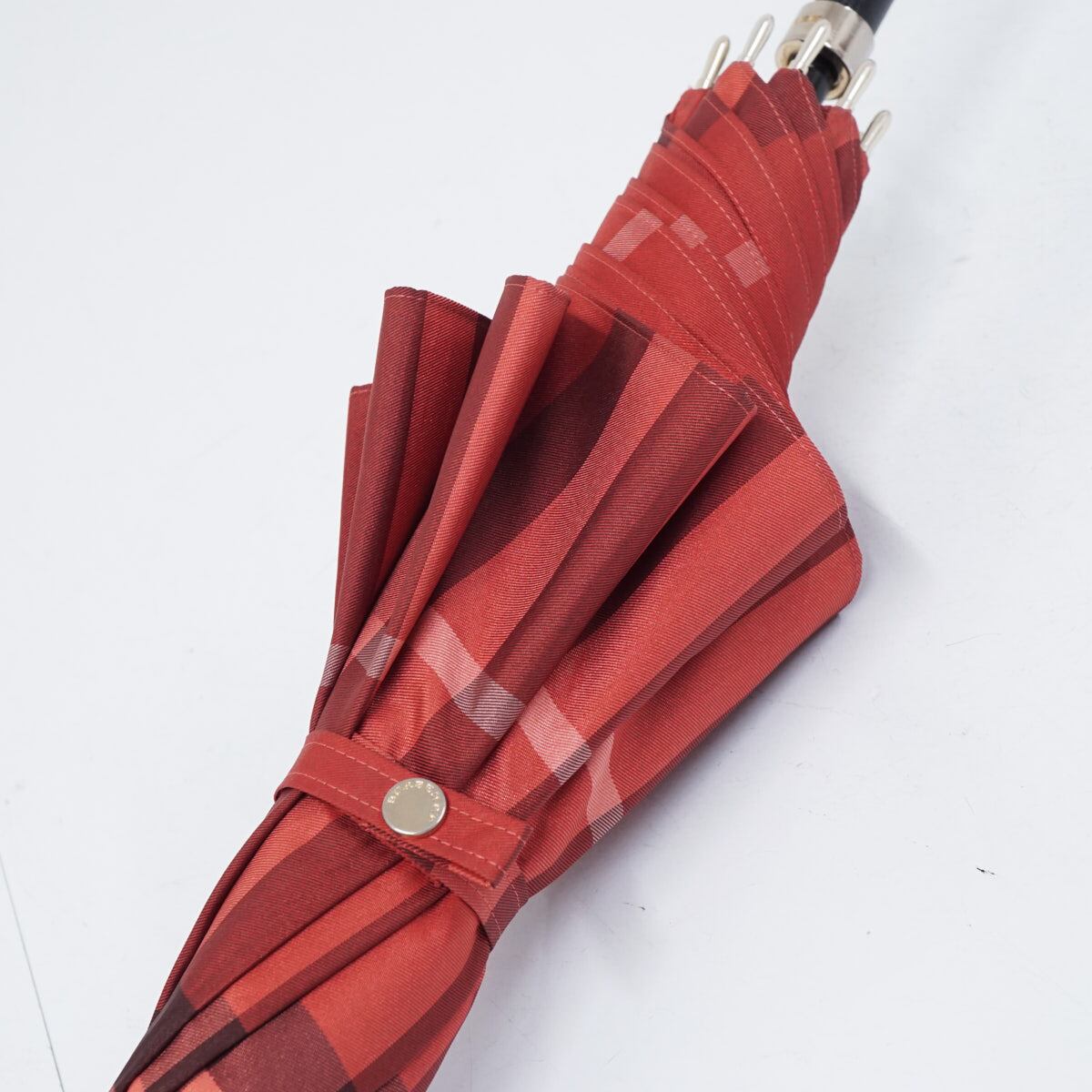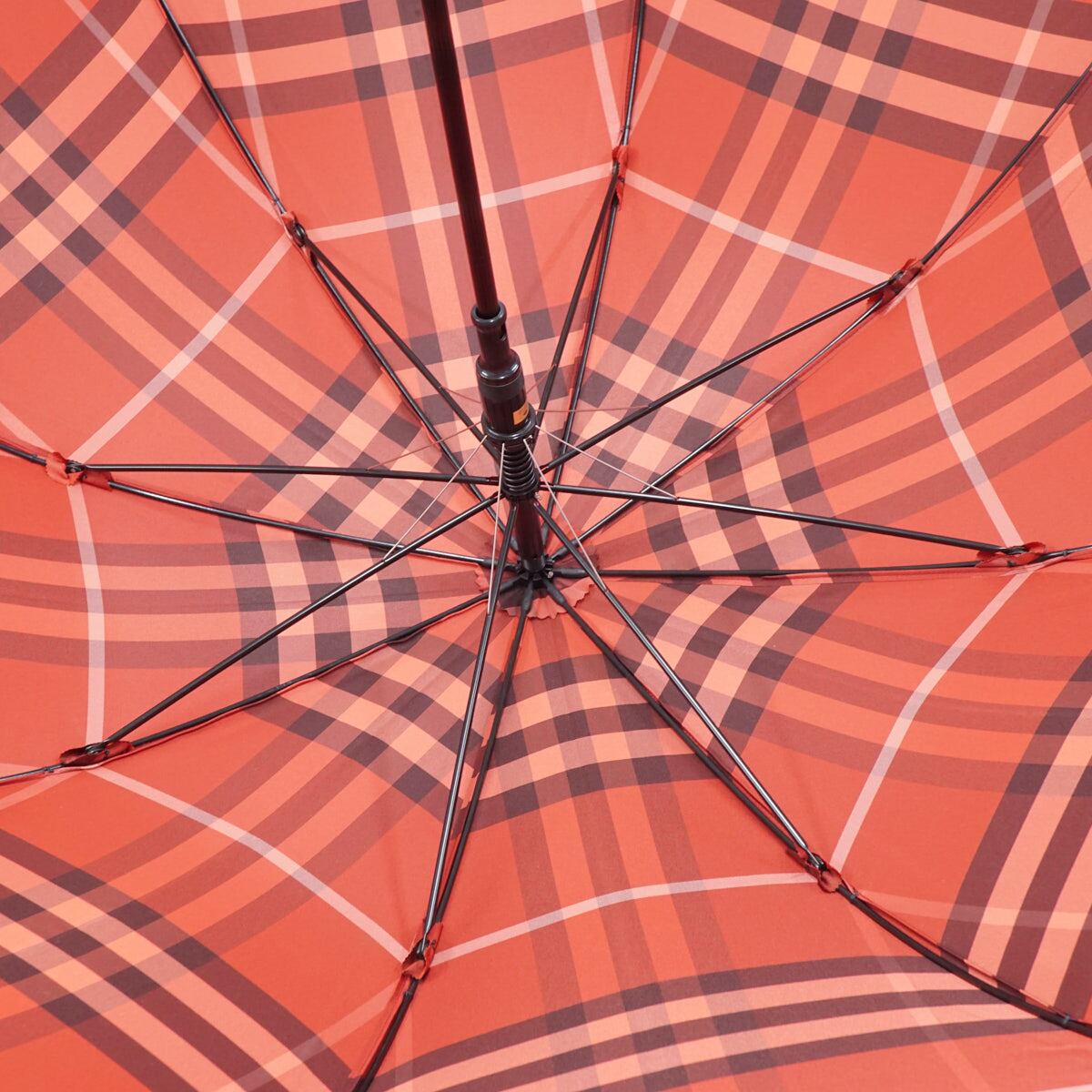傘 BURBERRY バーバリー USED品 チェック レディース レッド ジャガード ジャンプ 高級 60cm S2522