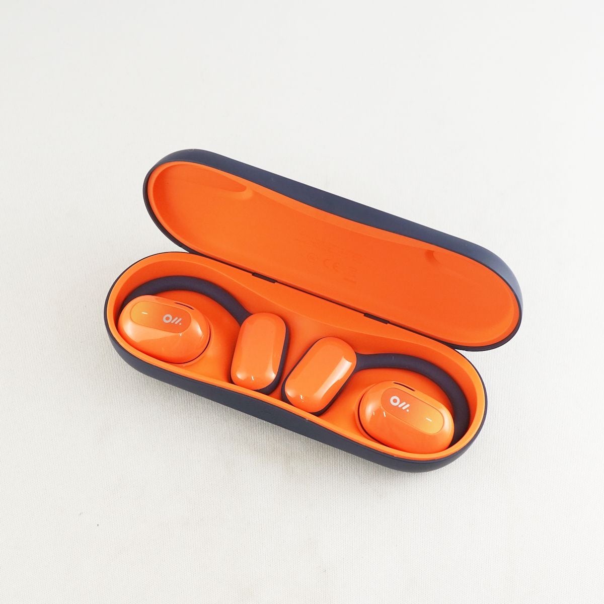 Oladance ウェアラブルステレオ OLA02 ワイヤレスイヤホン USED美品 耳をふさがない フック型 IPX4 防滴 マイク オレンジ 完動品 V0496