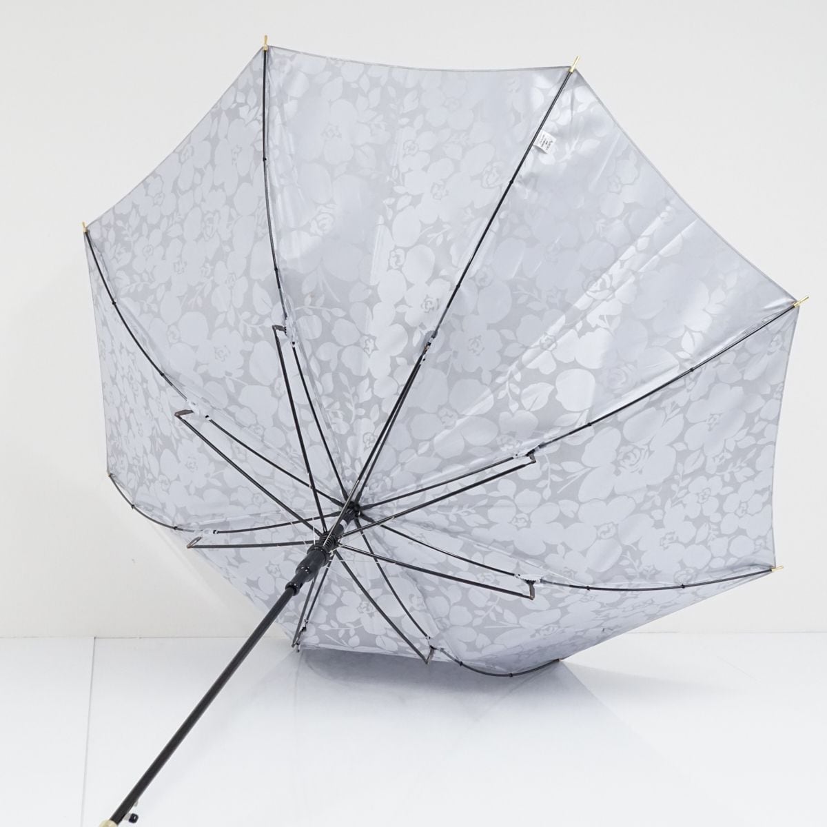 耐風傘 CHARLES JOURDAN シャルルジョルダン USED美品 フラワーシルエット グレー ジャンプ 風に強い エレガント 60cm A0760